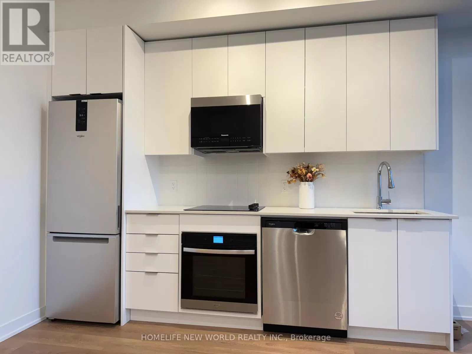 Jane/ Rutherford Welcome to this stunning well designed luxury new studio. This spacious, bright unit offers a modern layout with high-end finishes throughout. Natural light fills the space with large window. Unblocked wonderful view with 55 Sq Feet big balcony. It features combined dining and kitchen area to make living and hosting easy! Luxury kitchen features quartz countertops, stainless steel built-in appliances, and a trendy backsplash, making it as functional as it is beautiful. Walk out to balcony through kitchen with sliding glass doors. Coffered ceiling makes the room cozy and modern. Prime location, easy access to transit, major highways, Vaughan Mills Shopping Centre, Canadas Wonderland, and Cortellucci Vaughan Hospital, Vaughan Metropolitan Centre. and a curated selection of dining and grocery options. Don't miss out on this fantastic opportunity to experience the perfect combination of luxury living and convenience. Inclusions: New Appliances - S/S Fridge, Dishwasher, Stove. Washer & Dryer. Existing Light Fixtures. (id:27476)
