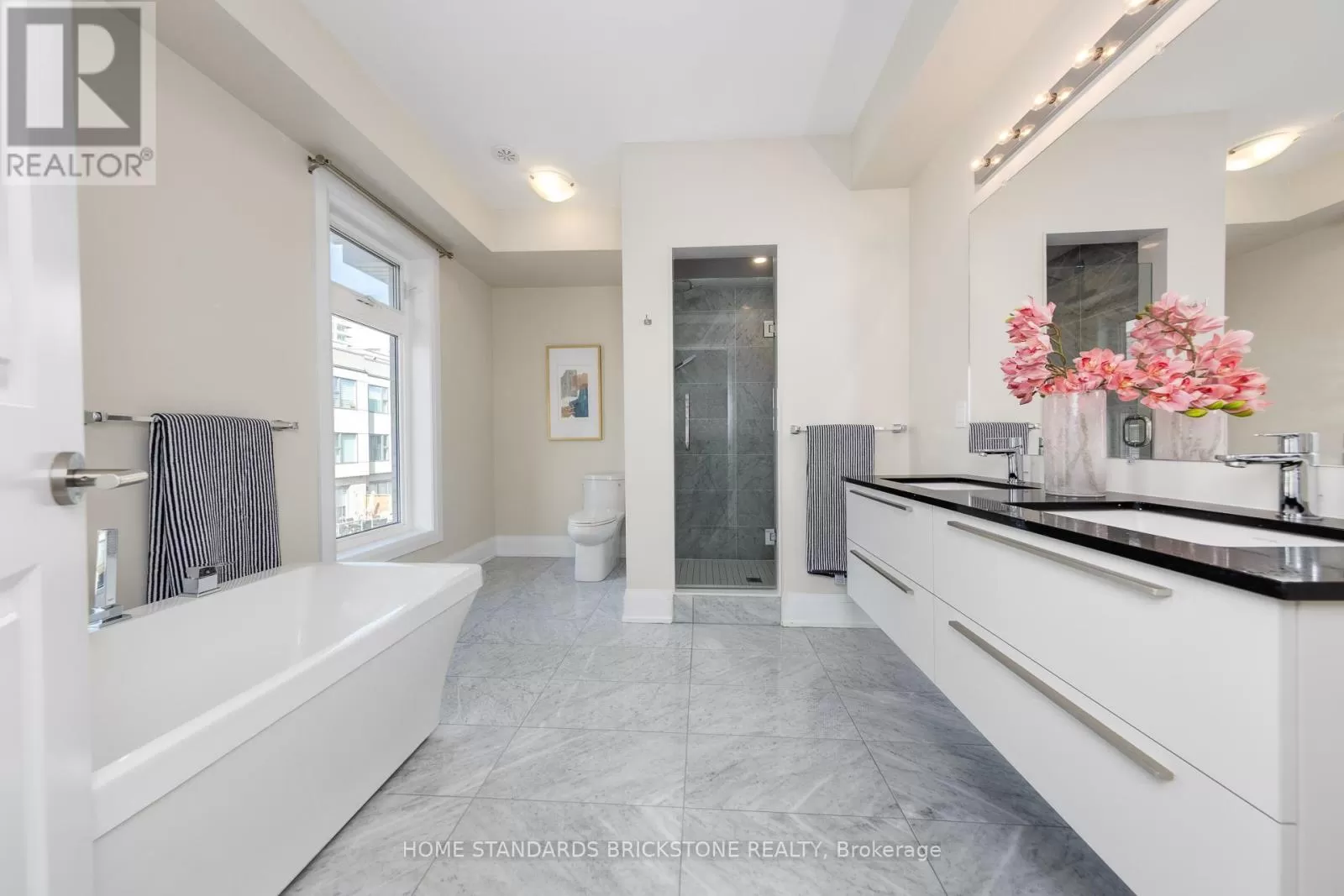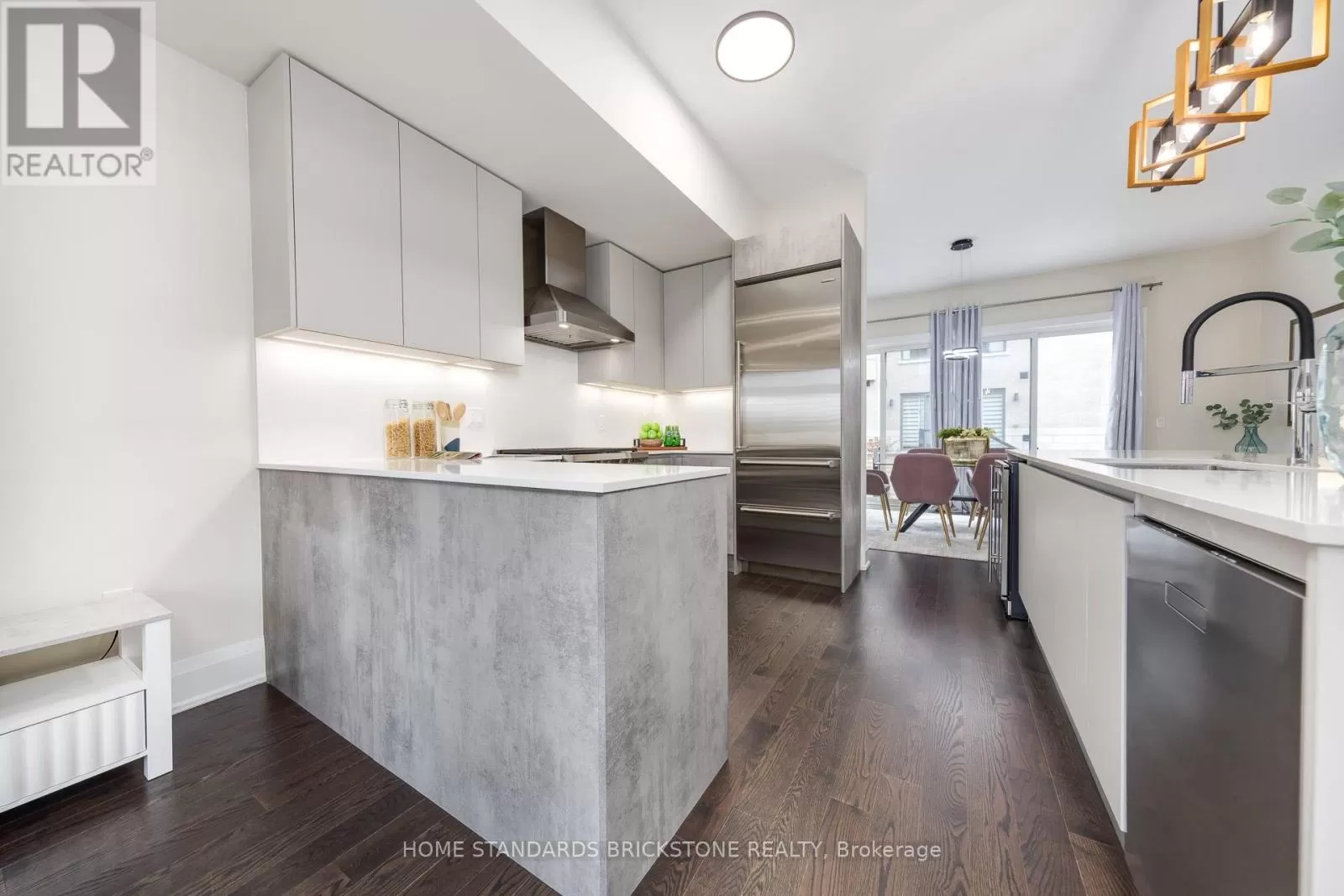 Bathurst & Clark Welcome to this extraordinary luxury townhome offering nearly 3,000 sq. ft. of meticulously designed living space, crafted by the renowned Wycliffe Homes. This move-in ready residence showcases superior finishes, thoughtful upgrades, and a coveted location that blends convenience with elegance. Step inside to an impressive open-concept layout featuring a custom Scavolini kitchen with professional-grade stainless steel appliances, including a Wolf range, bar fridge, and premium fixtures. Sleek quartz countertops, designer cabinetry, and high-end plumbing details create a modern yet timeless cooking and entertaining experience. The spacious living room flows seamlessly into the dining area and eat-in kitchen, with direct walkout access to the backyard perfect for hosting family and friends. Soaring 10-ft ceilings on the main floor and 9-ft ceilings on the second and third levels add volume and light throughout. Hardwood flooring extends across the top levels with no carpet anywhere, ensuring a clean and sophisticated look. The luxurious primary suite offers a spa- inspired 5-piece ensuite and a generous walk-in closet, providing the ultimate retreat. A rare and valuable feature is the private residential elevator, offering effortless access from the third floor down to the finished basement. With an upgraded circuit board sourced from Chicago, this elevator offers unmatched convenience compared to others in the area. Additional highlights include a 2-car garage and a finished lower level, adding flexible living space for work, recreation. Ideally situated just steps from Promenade Mall, places of worship, parks, and the public library, with top-rated schools nearby, this exceptional home offers the perfect blend of lifestyle and location. (id:27476)