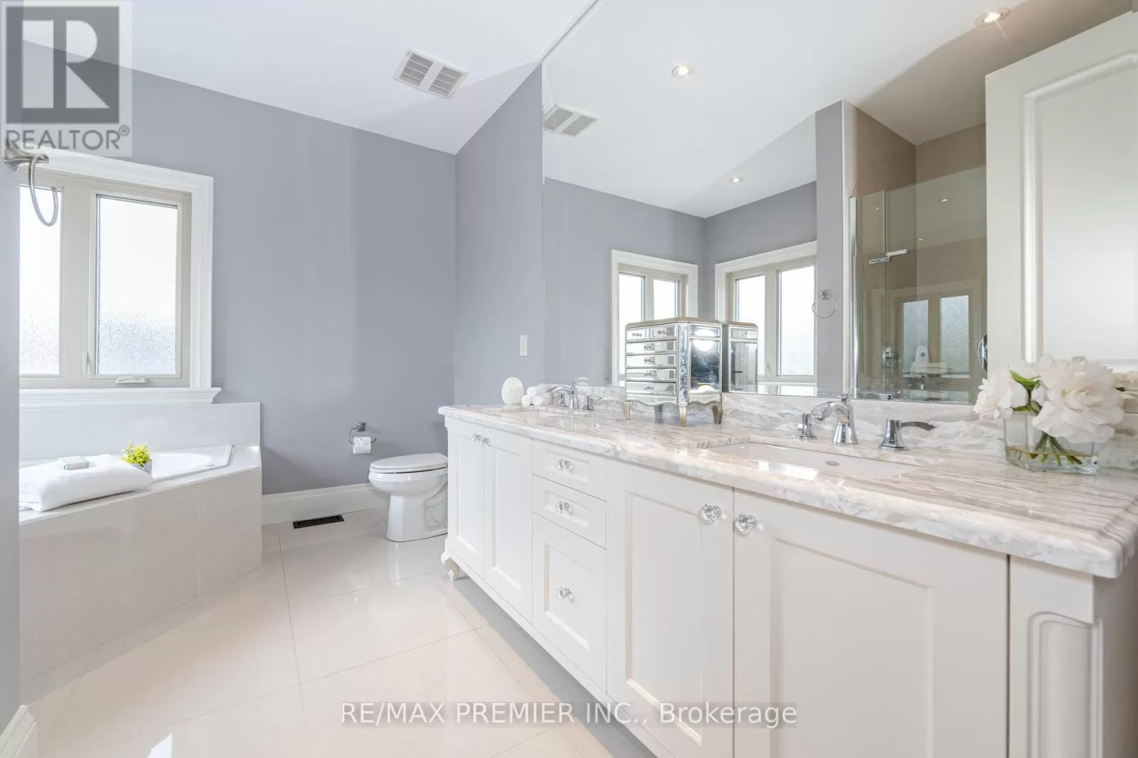 Kipling Ave & Hwy 7 Welcome to 28 Ellerby Sq, a custom-built residence in prestigious Woodbridge, crafted by award-winning builder. This magnificent home blends elegance and superior craftmansship. Inside, discover an expanisve interior with 6" wide plank oak-hardwood flooring, 7 1/2" poplar baseboards, & 4 1/4" poplar casing. The main & upper levels feature soaring 9' ceilings, creating an open, airy atmosphere. The gourmet kitchen is a chef's dream with Caesar stone, custom cabinets & a mother-of-pearl backsplah. This home offers five impeccably designed bathrooms with marble countertops. Attention to detail is evident, 8' high custom doors & commercial-grade hinges. The landscaped exterior features pristine turf, a 3-car driveway, & a 13' high garage with an 8' high door and high roller opener. Oversized basement windows flood the lower level with natural light. Potlights on main & basement create a warm ambiance. Separate side entrance, to finshed basement with bedroom and bathroom. Perfect in law suite or rental potential. (id:27476)