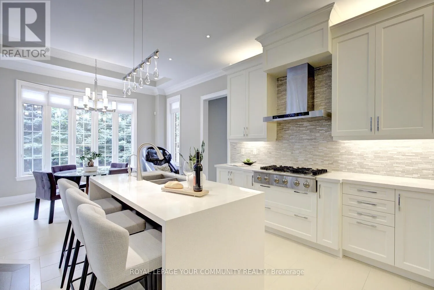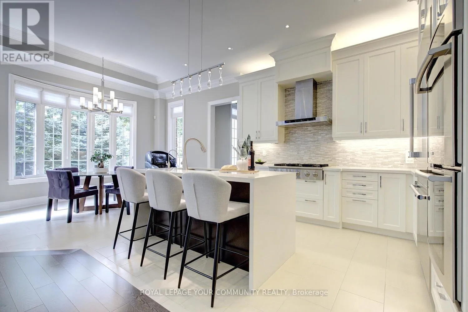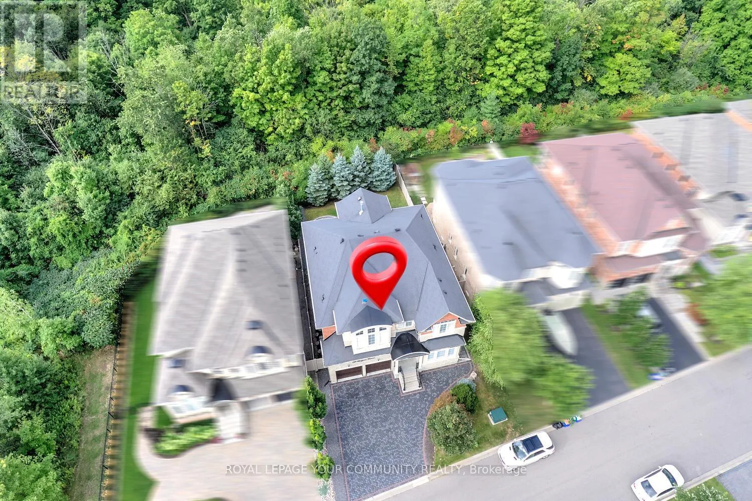 Bathurst & Major Mackenzie Stunning luxury 5+2 bed & 6-bath (4 full baths on 2nd flr) home on a premium 50ft x 120ft lot backing to conservation in E-N-C-L-A-V-E of Upper Thornhill Estates with large windows offering breathtaking private R-A-V-I-N-E views! Nestled on a quiet crescent surrounded by pond & trails - walk to nature trails/schools/parks! Steps to shops, GO train, golf courses & Hwys. Super location zoned for the best top rated schools including St. Therese of Lisieux Catholic H.S. Ranked #1 in Ontario! Offers extensive upgrades including 10 ft ceilings on main w/extended dr & window heights, 9 ft ceilings on 2nd flr w/extended window heights; inviting foyer w/custom 42 woodgrain fiberglass entry door w/wrought iron design; about 5,450+ sq ft luxury living space (3,760 Sf A.G.). Large Chef's dream kitchen with built-in top-of-the-line Thermador & Electrolux appl-s, upgraded cabinets, centre island w/quartz waterfall design, light valance; large main floor front office; smooth ceilings T-Out; NO carpet; hardwood flrs; Hunter Douglas silhouette covers T-Out main & maintenance-free vinyl shutters on 2nd; custom cabinetry in laundry rm&5th bedrm; LED pot lights; elegant lights & Chrystal chandeliers; exterior pot lights; 8 crown moulding & toto one-piece toilets throughout! Primary retreat w/spa like 6-pc ensuite, 3-sided gas fireplace, wellness den overlooking ravine & his&hers walk-in closets! Finished basement (2017) for family enjoyment or entertainment -features home theatre with pro 120 projector screen & integrated sound system, wet bar, open concept games area, large gym (or 7th bedrm) w/glass wall&glass dr, extra bedrm, custom built-in wall-to-wall bookcase & 3-pc bath! Huge mudroom w/garage access, closets, custom built-ins. Pro landscaped- Unilock Courtstone pavers in driveway & Unilock Flagston pavers in backyard, maintenance-free PVC fencing, rain bird wi-fi-enabled irrigation system, pro designed garden w/6 evergreen trees!Many extras! Come & see for yourself! See 3-D! (id:27476)