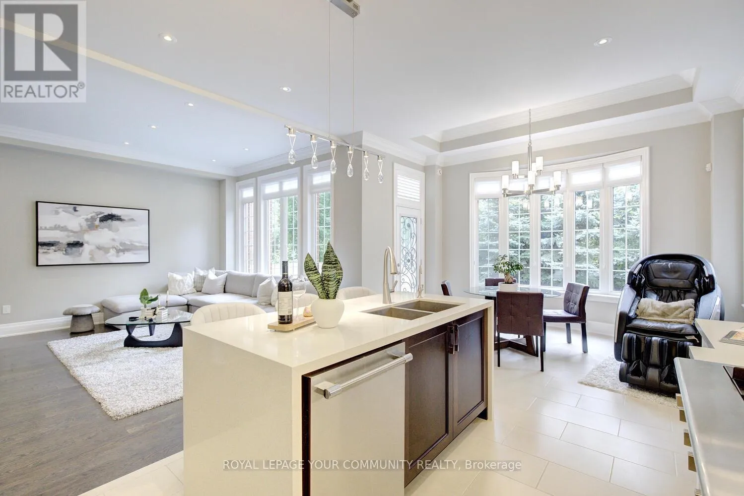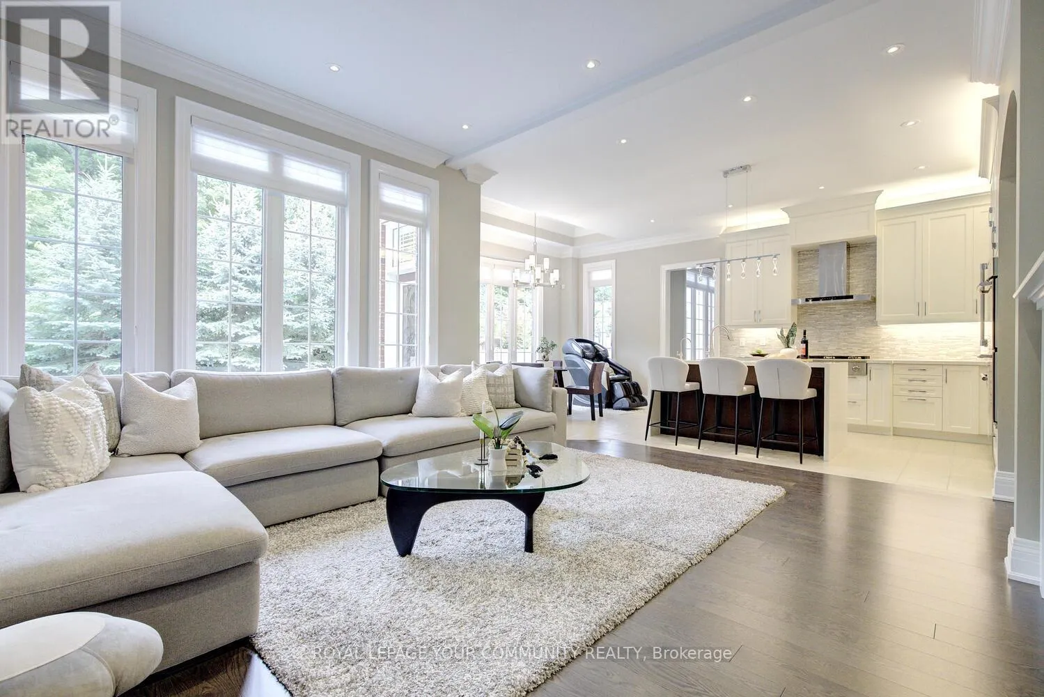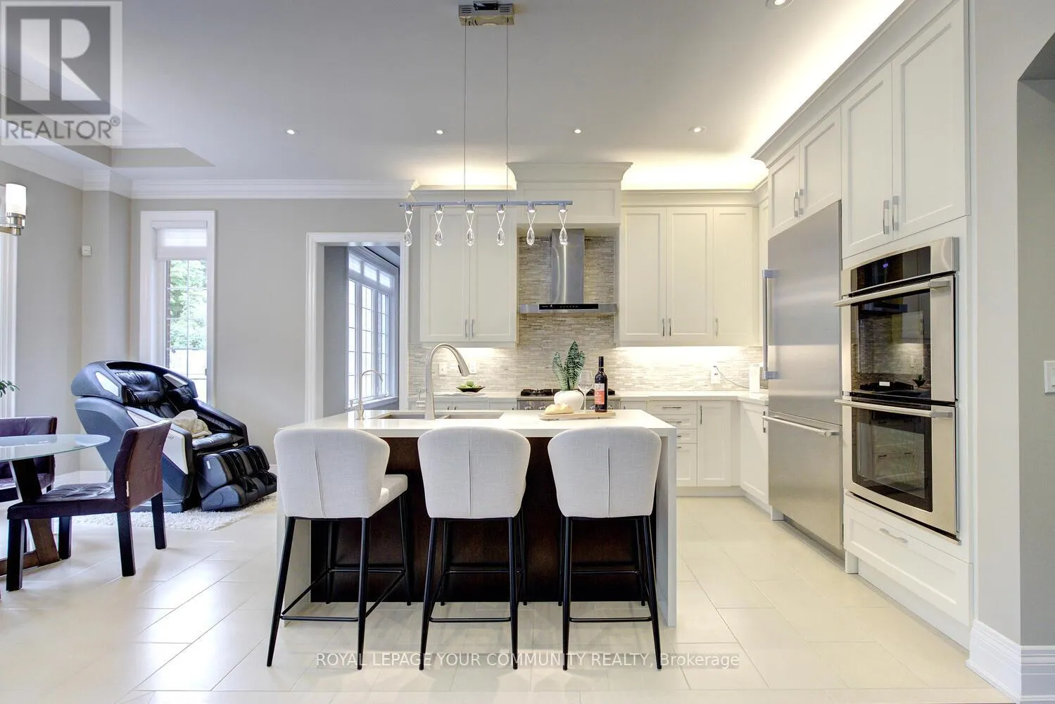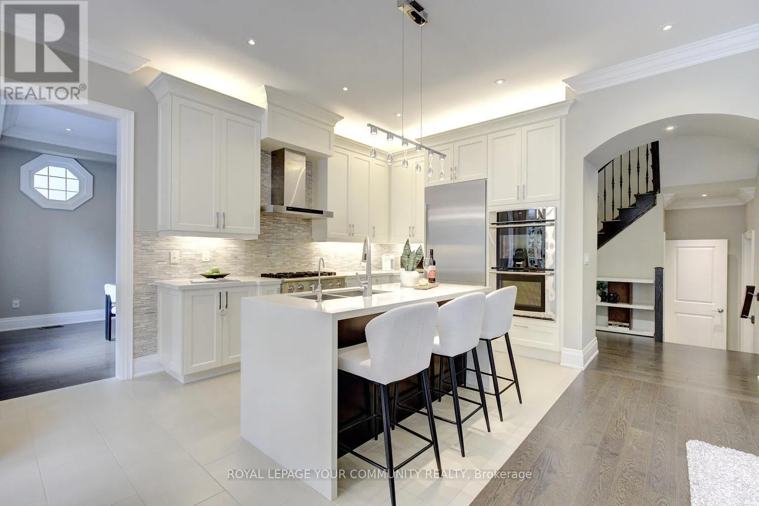 Bathurst & Major Mackenzie Stunning luxury 5+2 bed & 6-bath (4 full baths on 2nd flr) home on a premium 50ft x 120ft lot backing to conservation in E-N-C-L-A-V-E of Upper Thornhill Estates with large windows offering breathtaking private R-A-V-I-N-E views! Nestled on a quiet crescent surrounded by pond & trails - walk to nature trails/schools/parks! Steps to shops, GO train, golf courses & Hwys. Super location zoned for the best top rated schools including St. Therese of Lisieux Catholic H.S. Ranked #1 in Ontario! Offers extensive upgrades including 10 ft ceilings on main w/extended dr & window heights, 9 ft ceilings on 2nd flr w/extended window heights; inviting foyer w/custom 42 woodgrain fiberglass entry door w/wrought iron design; about 5,450+ sq ft luxury living space (3,760 Sf A.G.). Large Chef's dream kitchen with built-in top-of-the-line Thermador & Electrolux appl-s, upgraded cabinets, centre island w/quartz waterfall design, light valance; large main floor front office; smooth ceilings T-Out; NO carpet; hardwood flrs; Hunter Douglas silhouette covers T-Out main & maintenance-free vinyl shutters on 2nd; custom cabinetry in laundry rm&5th bedrm; LED pot lights; elegant lights & Chrystal chandeliers; exterior pot lights; 8 crown moulding & toto one-piece toilets throughout! Primary retreat w/spa like 6-pc ensuite, 3-sided gas fireplace, wellness den overlooking ravine & his&hers walk-in closets! Finished basement (2017) for family enjoyment or entertainment -features home theatre with pro 120 projector screen & integrated sound system, wet bar, open concept games area, large gym (or 7th bedrm) w/glass wall&glass dr, extra bedrm, custom built-in wall-to-wall bookcase & 3-pc bath! Huge mudroom w/garage access, closets, custom built-ins. Pro landscaped- Unilock Courtstone pavers in driveway & Unilock Flagston pavers in backyard, maintenance-free PVC fencing, rain bird wi-fi-enabled irrigation system, pro designed garden w/6 evergreen trees!Many extras! Come & see for yourself! See 3-D! (id:27476)