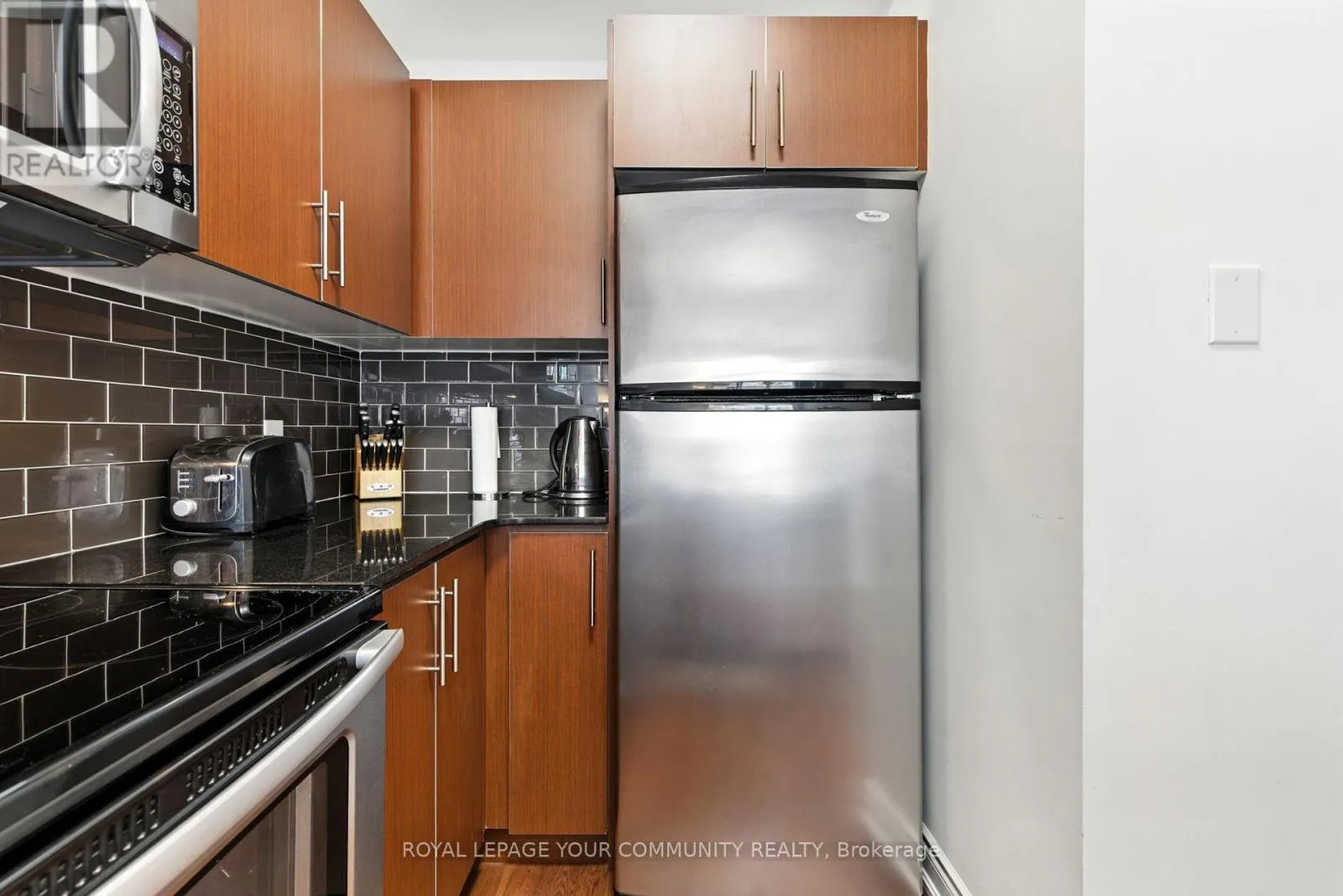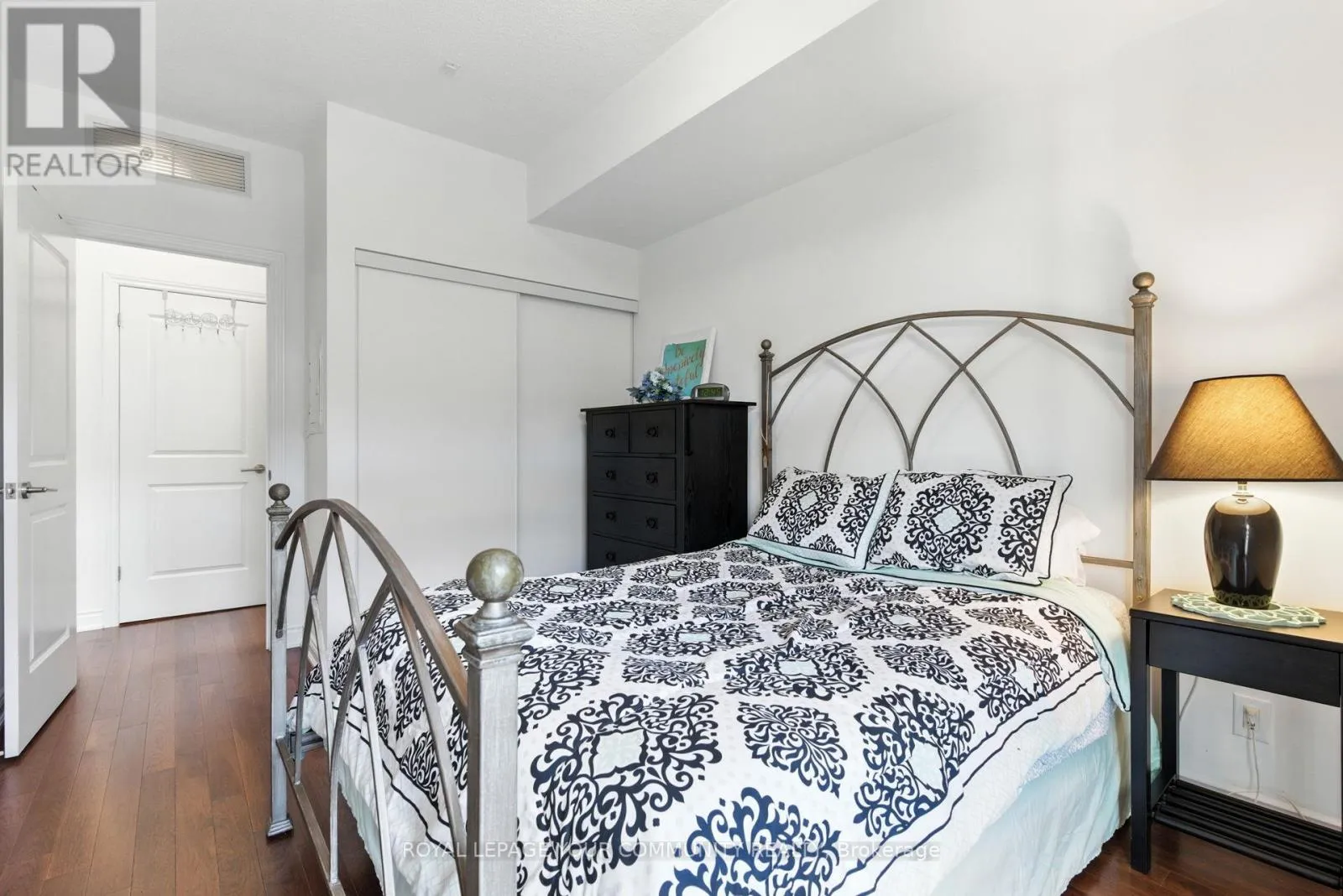 Kipling & Woodbridge Ave Boutique Condo in the heart of Woodbridge. Welcome to this rare 1 bedroom + Den with 1 parking spot & Locker. This unit boasts an open concept layout with soaring 9 foot ceilings, hardwood floors throughout and ceramic tile in bathroom. Upgraded kitchen with granite counters, backsplash and breakfast bar. Walk-out to a large balcony with west view and BBQ gas line for year round barbecuing. Den can be used as a home office or extra living space. Upgraded 4piece bath with marble vanity and upgraded bath tiles. Building amenities include newly renovated gym to stay active with sauna and showers. Host guests in the stylish party room or the well-appointed guest suites. Enjoy piece of mind that comes with onsite 24 concierge and secure bike storage. Just steps from charming shops, bakeries, restaurants, grocery and everyday conveniences in Market Lane. Experience refined living in one of Woodbridge's sought out neighborhood. (id:27476)