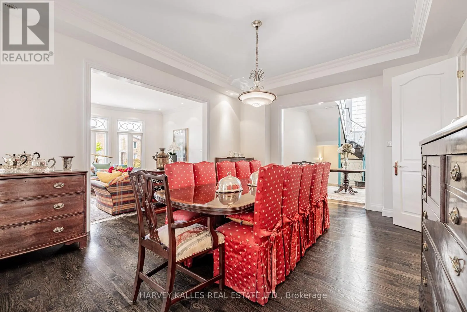 Cross Streets: Bathurst/Clarke/Centre. ** Directions: Atkinson & Arnold Avenues. Nestled on a quiet cul-de-sac in one of Thornhill's most sought-after communities, this grand custom-built residence offers over 5,000 SqFt of refined living space. Showcasing striking curb appeal and timeless architectural detail, the home opens into a dramatic double-height foyer with skylights and a statement staircase. The elegant layout features 10 Ft ceilings, formal living & dining rooms ideal for hosting memorable celebrations and family milestones, as well as a private main floor office/music room. The gourmet kitchen boasts quartz countertops, center island, gas stove, built-in appliances including 2 dishwashers, and service pantry. Adjacent is a breakfast area w/ built-in desk and walk-out to a newly constructed expansive deck, perfect for outdoor entertaining. A warm family room with gas fireplace invites cozy nights in. The updated powder room & tucked-away laundry room complete the main level. Upstairs, the luxurious primary suite offers a sitting area, 2 oversized walk-in closets, and a spa-inspired ensuite bath. A spacious guest room w/ private ensuite and walk-in closet is perfect for in-laws or visitors. Two additional generous bedrooms share a bathroom with double vanity. The fully finished basement adds 2 more bedrooms/offices and a huge rec space ideal for a theatre, gym, or playroom. Direct access to a double garage and mudroom w/sep entrance adds convenience. Recently updated with fresh paint throughout, refinished hardwood on the main level, and new flooring upstairs & in the basement. Interlocked double drive, landscaped and set among heritage and contemporary homes in a diverse, family-focused neighbourhood. A refined suburban lifestyle in close proximity to top-rated schools, synagogues, and an array of grocery and dining options. Conveniently located just minutes from Hwy's 7 and 407, Promenade Shopping Centre, TTC & YRT transit. Enjoy the many nearby parks and wonderful nature, all ideal for leisurely strolls, sports, or family outings. (id:27476)