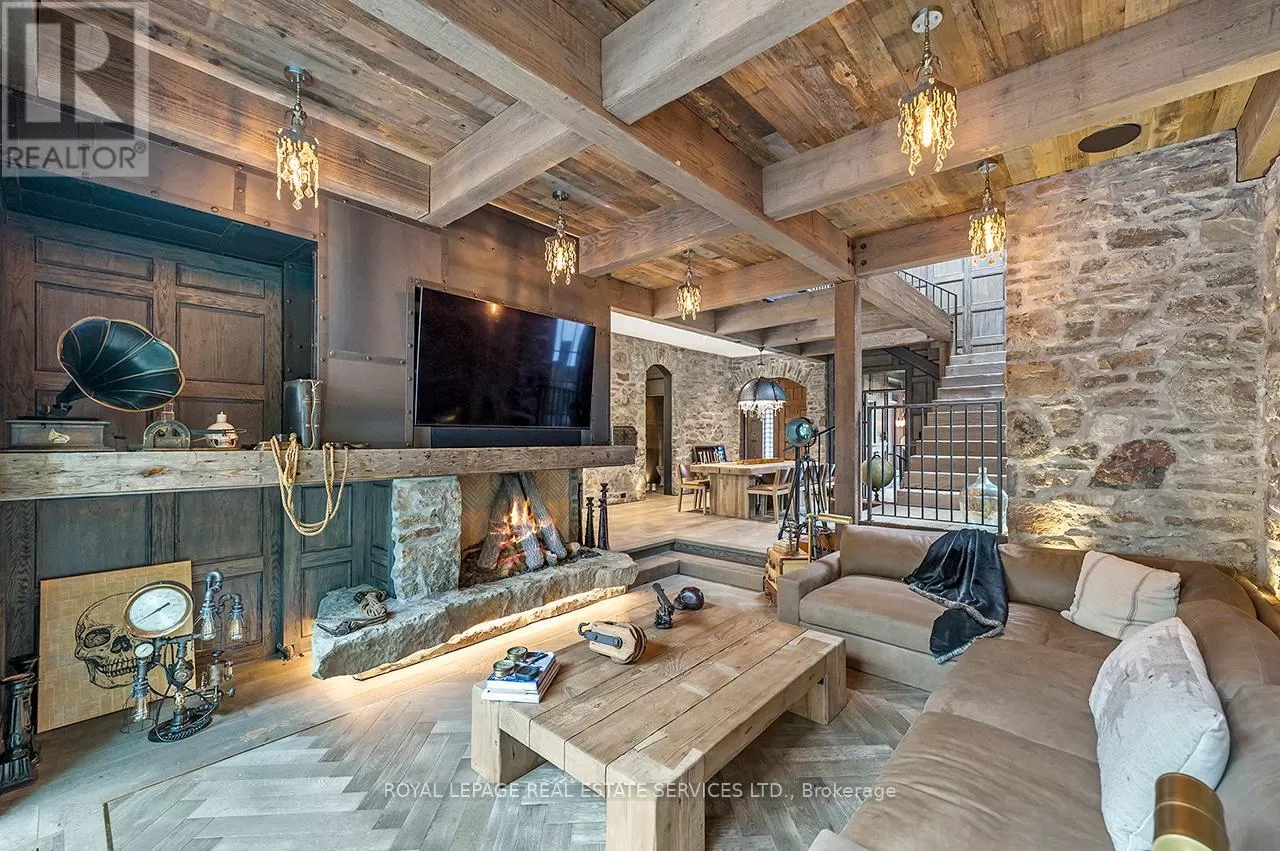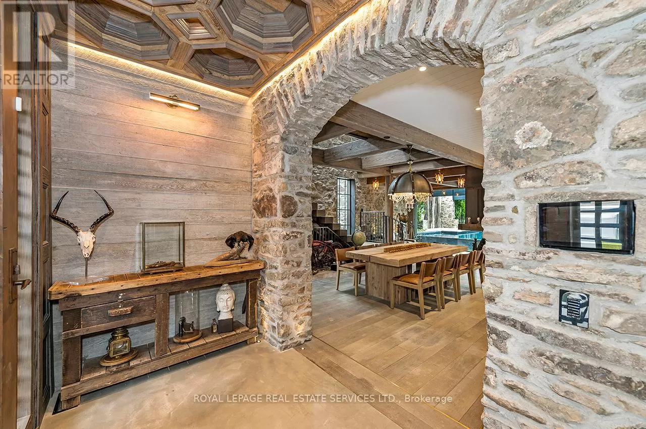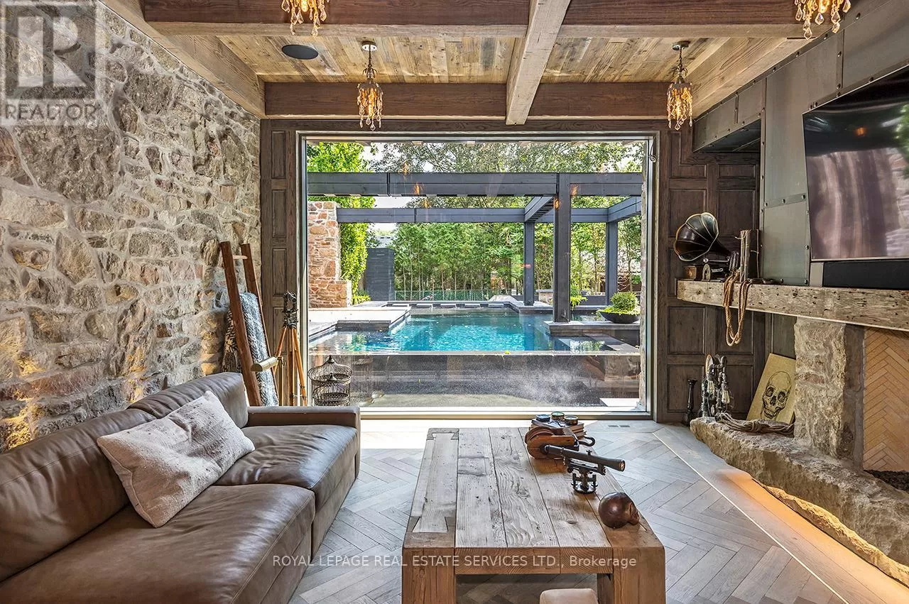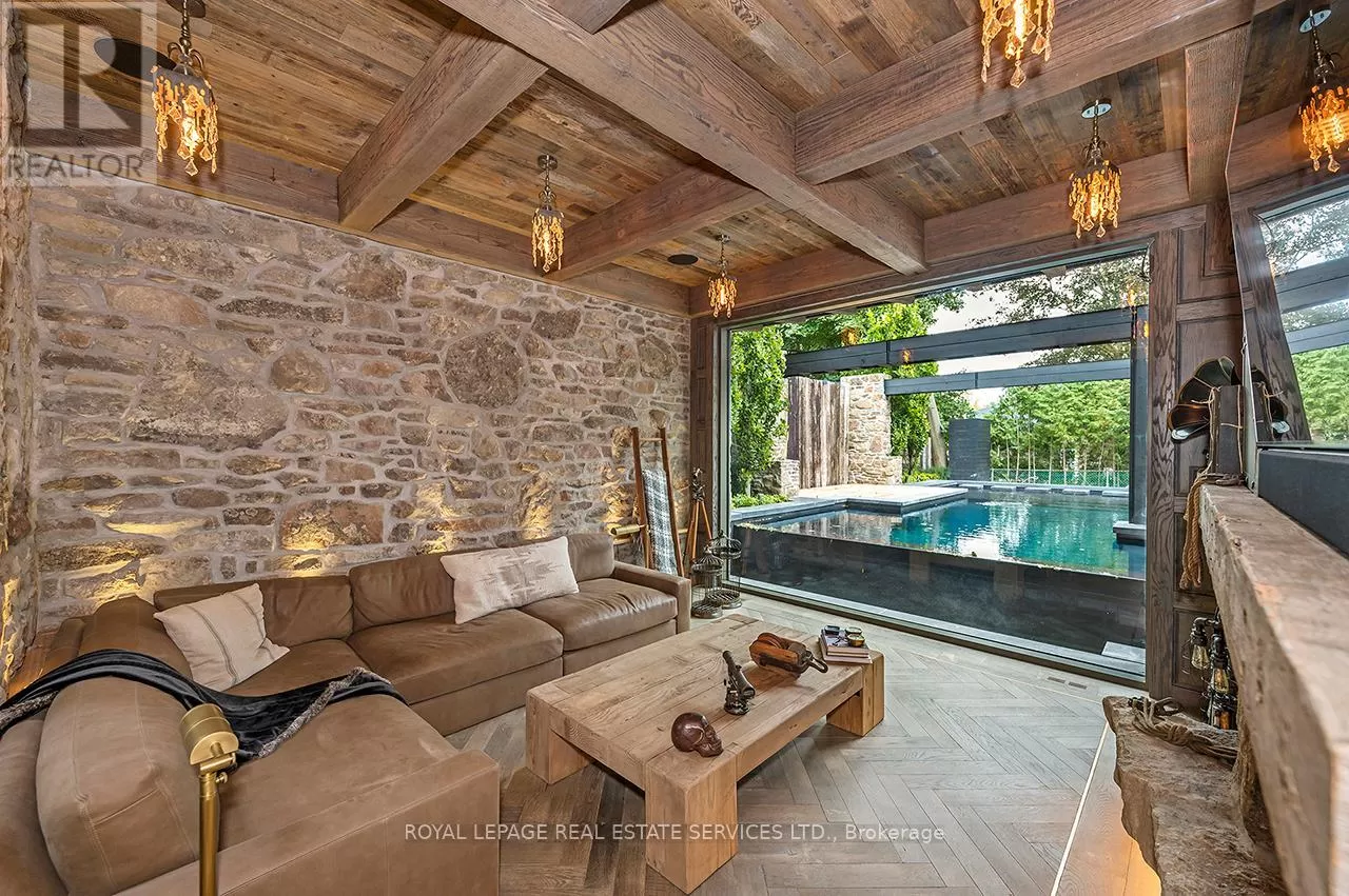 Cross Streets: Major Mackezie Drive W & Keele Street. ** Directions: West on Major Mackenzie Dr W from Keele Street - South on Gram St - East on Goodman Cres - Property on right, South Side. Stunning 4+1 Bdrm, 5 Bath Custom Residence Offering 5000 Sf Living Space + 3849 Sf Garage Space. Exterior Designed By Kelly & Stone Architects w/Extensive Engineering, Standing Seam Metal Roof, Custom Skylights, Heated Concrete Drive, Unilock Herringbone Pattern, Integrated Lighting, & Over $1M In Landscaping. Infinity Edge Pool, Hot Tub, Outdoor Kitchen (Built-In BBQ, Sink, Fridge, Wine Fridge), Custom Fencing, & Concrete. Interior Features Include Douglas Fir Structural Beams, Custom Steel & Oak Details, Board-Formed Concrete Walls, Reclaimed Doors & Wood Ceilings, & Extensive Vanderpump Alain Lighting Installations. The Downsview Kitchen Offers Fluted Custom Island w/Brass Rail, La Cornue 5-Burner Range, Sub-Zero Refrigerator, Miele Dishwasher, Wolf Microwave, Vent-A-Hood, Honed Calcutta Marble Counters, & Custom Cabinetry w/Walnut Inserts. Main Fl Living Rm Features a 12' X 10' Custom Window Overlooking The Backyard Oasis, 11' Ceilings, Montana Moss Rock Natural Stone Wall, Custom Gas Fireplace, & Integrated Lighting. Office w/Custom Ceiling Detail & Oak Paneling. Flooring Includes Ciot Chevron w/Brass Inlay & Heated Floors. Master Suite w/Custom Closets, Vaulted Ceiling, Integrated Lighting, Blackout Curtains, & 6pc Ensuite w/Clawfoot Tub, Steam Shower, 3D Marble Ceiling, Heated Floor, & Vintage Details. Additional Bdrms Include Ensuite/Adjacent Baths, Vaulted Ceilings, & Custom Built-Ins. Basement Includes Bdrm, 3pc Bath, Theatre & Wet Bar Rough-Ins, Wine Cellar Rough-In (12' Ceilings), Radiant Heated Floors, Integrated Hepa Filtration, Pressure Washer, Air Compressor, Led Floor Lighting, And Custom Ceiling Detail. Family Room w/Glass Wall To Underground Garage. Romax Double Scissor Lift Car Elevator, Workshop Cabinets w/Sink, Integrated Speakers, Starlink Security & Cameras, & Extensive Mechanical Upgrades Including 400-Amp Panel & Upgraded Gas Service. A Rarely Offered Architectural Masterpiece, Designed With An Unmatched Level Of Detail & Craftsmanship! (id:27476)