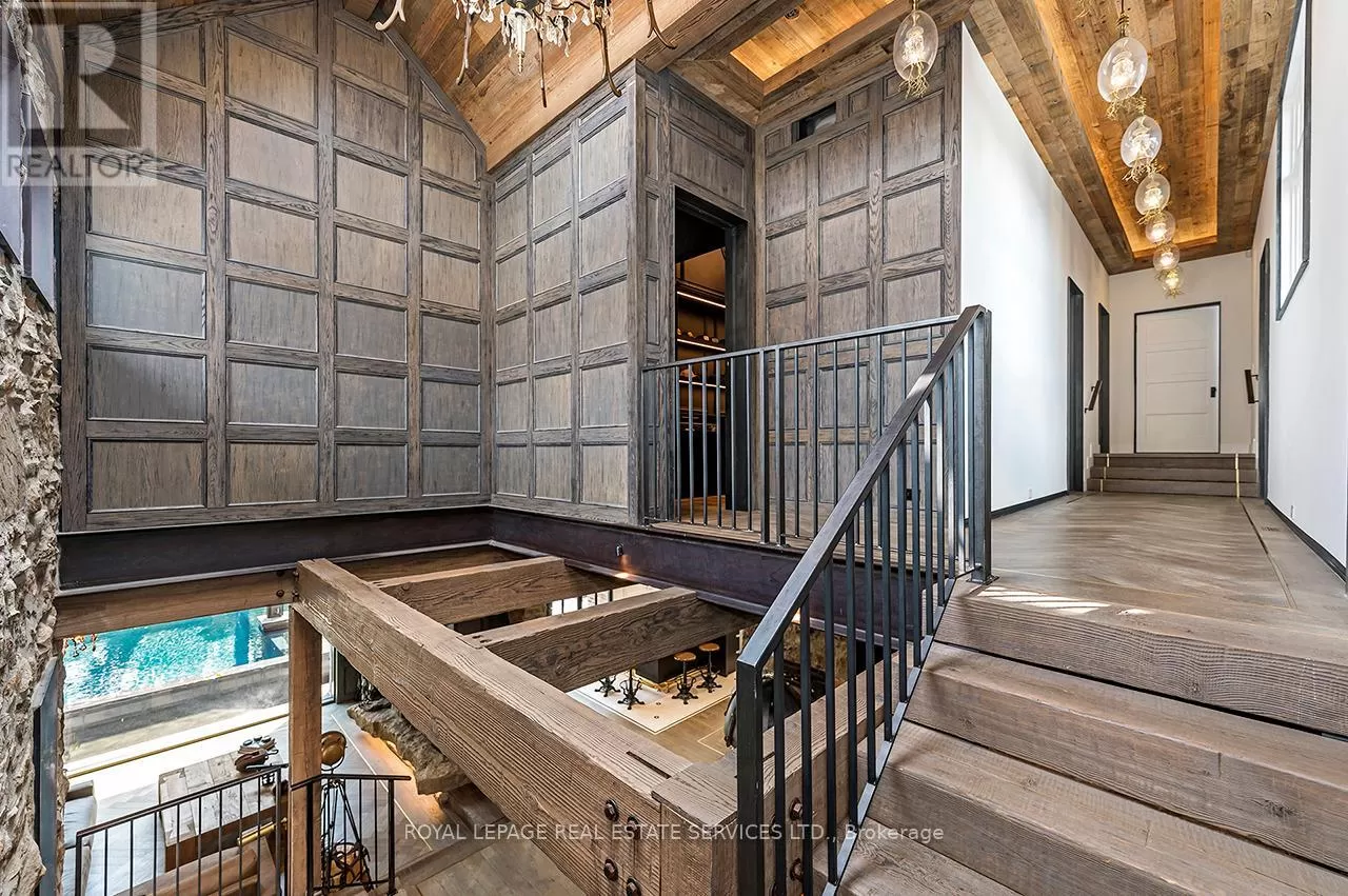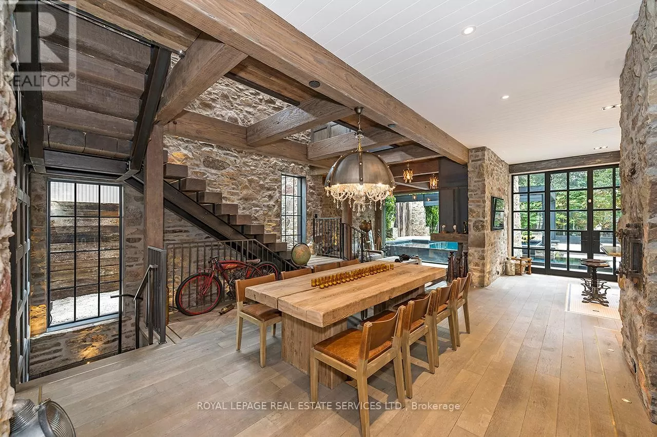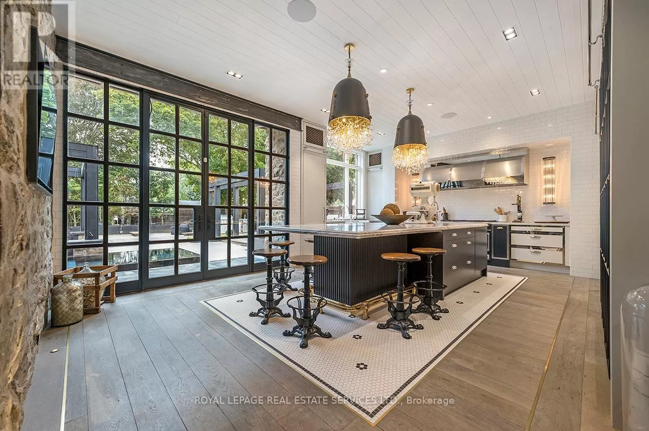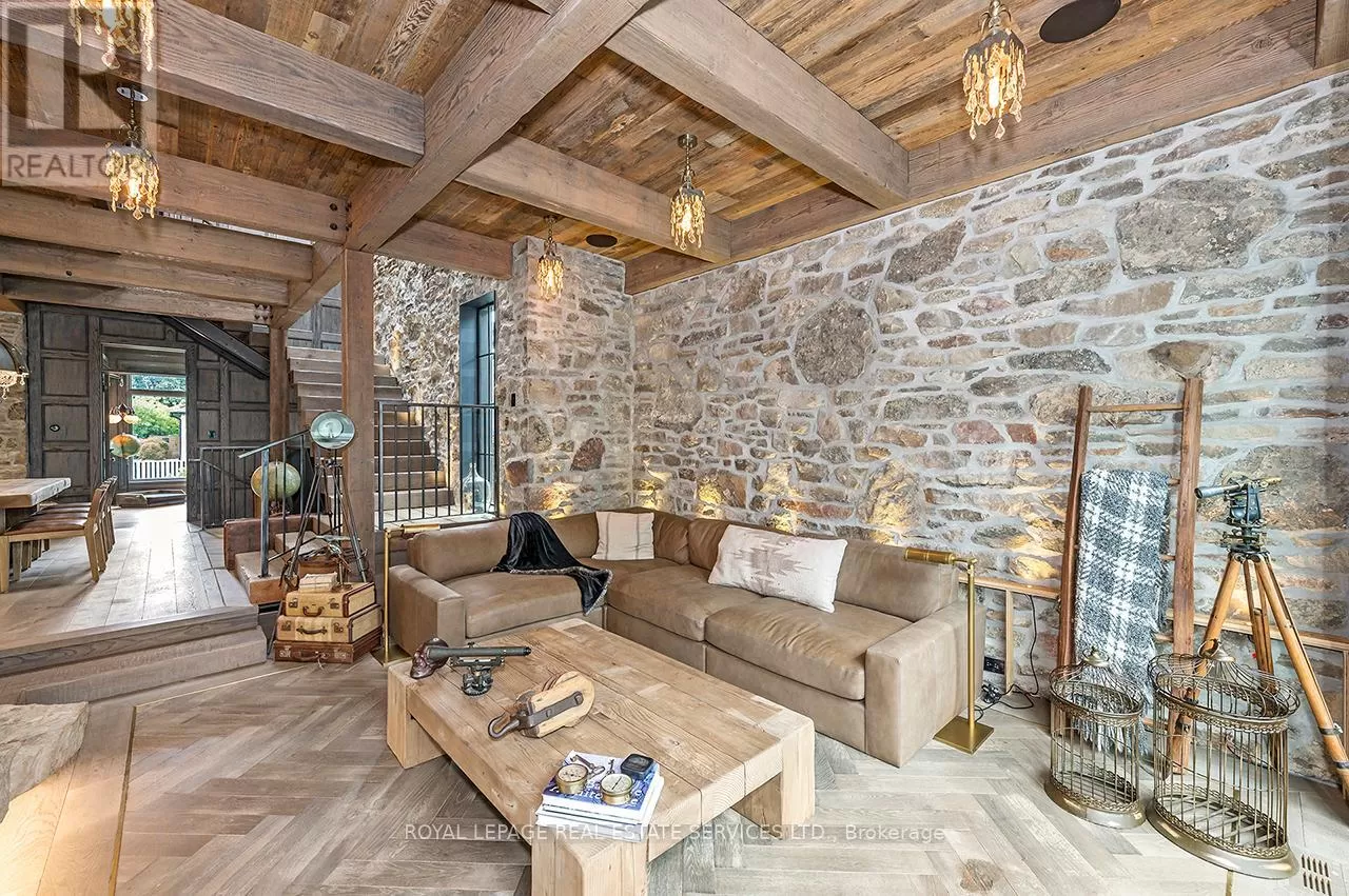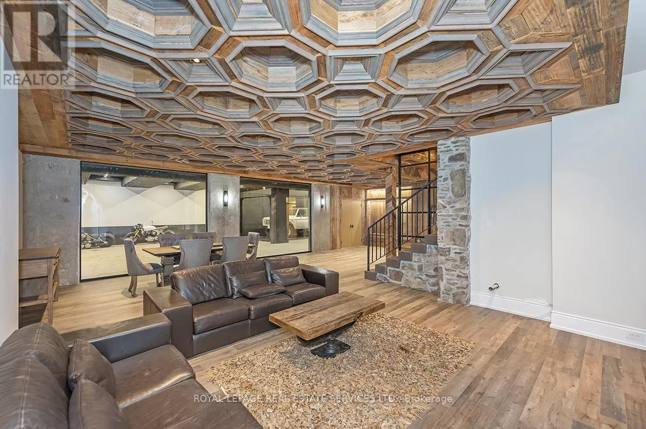 Cross Streets: Major Mackezie Drive W & Keele Street. ** Directions: West on Major Mackenzie Dr W from Keele Street - South on Gram St - East on Goodman Cres - Property on right, South Side. Stunning 4+1 Bdrm, 5 Bath Custom Residence Offering 5000 Sf Living Space + 3849 Sf Garage Space. Exterior Designed By Kelly & Stone Architects w/Extensive Engineering, Standing Seam Metal Roof, Custom Skylights, Heated Concrete Drive, Unilock Herringbone Pattern, Integrated Lighting, & Over $1M In Landscaping. Infinity Edge Pool, Hot Tub, Outdoor Kitchen (Built-In BBQ, Sink, Fridge, Wine Fridge), Custom Fencing, & Concrete. Interior Features Include Douglas Fir Structural Beams, Custom Steel & Oak Details, Board-Formed Concrete Walls, Reclaimed Doors & Wood Ceilings, & Extensive Vanderpump Alain Lighting Installations. The Downsview Kitchen Offers Fluted Custom Island w/Brass Rail, La Cornue 5-Burner Range, Sub-Zero Refrigerator, Miele Dishwasher, Wolf Microwave, Vent-A-Hood, Honed Calcutta Marble Counters, & Custom Cabinetry w/Walnut Inserts. Main Fl Living Rm Features a 12' X 10' Custom Window Overlooking The Backyard Oasis, 11' Ceilings, Montana Moss Rock Natural Stone Wall, Custom Gas Fireplace, & Integrated Lighting. Office w/Custom Ceiling Detail & Oak Paneling. Flooring Includes Ciot Chevron w/Brass Inlay & Heated Floors. Master Suite w/Custom Closets, Vaulted Ceiling, Integrated Lighting, Blackout Curtains, & 6pc Ensuite w/Clawfoot Tub, Steam Shower, 3D Marble Ceiling, Heated Floor, & Vintage Details. Additional Bdrms Include Ensuite/Adjacent Baths, Vaulted Ceilings, & Custom Built-Ins. Basement Includes Bdrm, 3pc Bath, Theatre & Wet Bar Rough-Ins, Wine Cellar Rough-In (12' Ceilings), Radiant Heated Floors, Integrated Hepa Filtration, Pressure Washer, Air Compressor, Led Floor Lighting, And Custom Ceiling Detail. Family Room w/Glass Wall To Underground Garage. Romax Double Scissor Lift Car Elevator, Workshop Cabinets w/Sink, Integrated Speakers, Starlink Security & Cameras, & Extensive Mechanical Upgrades Including 400-Amp Panel & Upgraded Gas Service. A Rarely Offered Architectural Masterpiece, Designed With An Unmatched Level Of Detail & Craftsmanship! (id:27476)