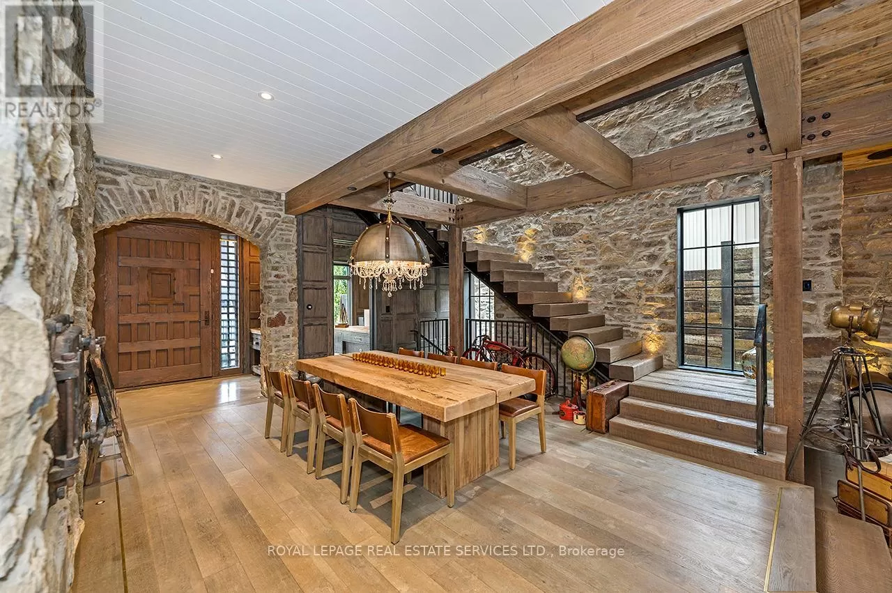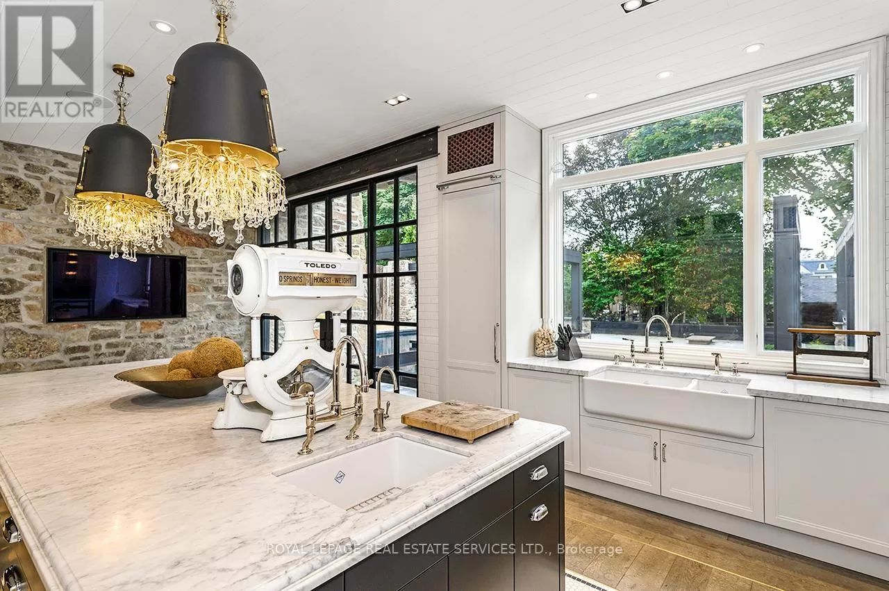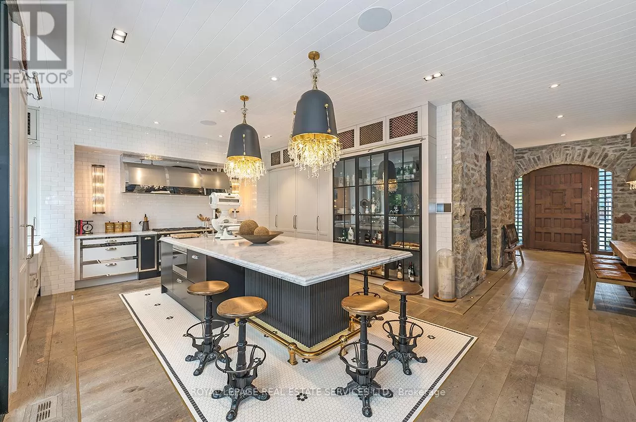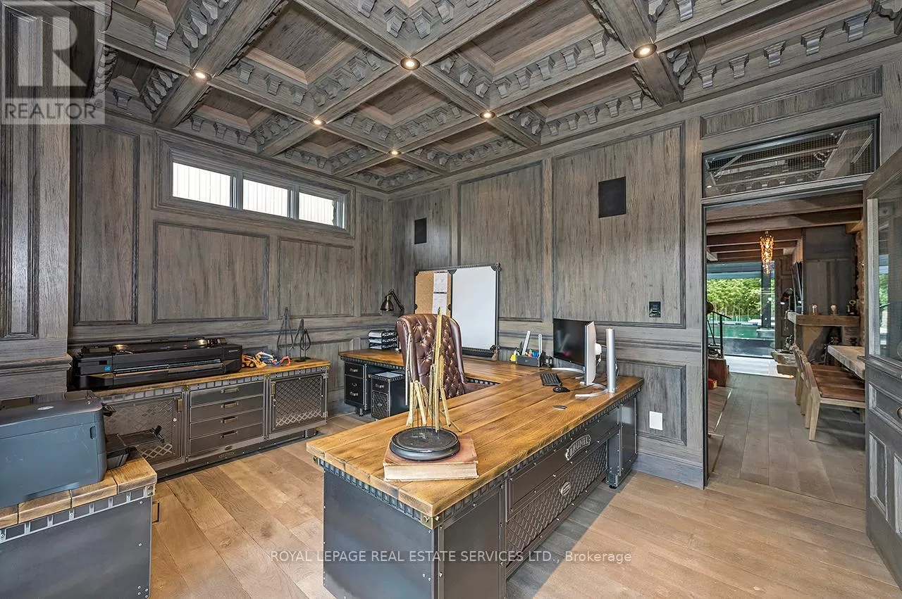 Cross Streets: Major Mackezie Drive W & Keele Street. ** Directions: West on Major Mackenzie Dr W from Keele Street - South on Gram St - East on Goodman Cres - Property on right, South Side. Stunning 4+1 Bdrm, 5 Bath Custom Residence Offering 5000 Sf Living Space + 3849 Sf Garage Space. Exterior Designed By Kelly & Stone Architects w/Extensive Engineering, Standing Seam Metal Roof, Custom Skylights, Heated Concrete Drive, Unilock Herringbone Pattern, Integrated Lighting, & Over $1M In Landscaping. Infinity Edge Pool, Hot Tub, Outdoor Kitchen (Built-In BBQ, Sink, Fridge, Wine Fridge), Custom Fencing, & Concrete. Interior Features Include Douglas Fir Structural Beams, Custom Steel & Oak Details, Board-Formed Concrete Walls, Reclaimed Doors & Wood Ceilings, & Extensive Vanderpump Alain Lighting Installations. The Downsview Kitchen Offers Fluted Custom Island w/Brass Rail, La Cornue 5-Burner Range, Sub-Zero Refrigerator, Miele Dishwasher, Wolf Microwave, Vent-A-Hood, Honed Calcutta Marble Counters, & Custom Cabinetry w/Walnut Inserts. Main Fl Living Rm Features a 12' X 10' Custom Window Overlooking The Backyard Oasis, 11' Ceilings, Montana Moss Rock Natural Stone Wall, Custom Gas Fireplace, & Integrated Lighting. Office w/Custom Ceiling Detail & Oak Paneling. Flooring Includes Ciot Chevron w/Brass Inlay & Heated Floors. Master Suite w/Custom Closets, Vaulted Ceiling, Integrated Lighting, Blackout Curtains, & 6pc Ensuite w/Clawfoot Tub, Steam Shower, 3D Marble Ceiling, Heated Floor, & Vintage Details. Additional Bdrms Include Ensuite/Adjacent Baths, Vaulted Ceilings, & Custom Built-Ins. Basement Includes Bdrm, 3pc Bath, Theatre & Wet Bar Rough-Ins, Wine Cellar Rough-In (12' Ceilings), Radiant Heated Floors, Integrated Hepa Filtration, Pressure Washer, Air Compressor, Led Floor Lighting, And Custom Ceiling Detail. Family Room w/Glass Wall To Underground Garage. Romax Double Scissor Lift Car Elevator, Workshop Cabinets w/Sink, Integrated Speakers, Starlink Security & Cameras, & Extensive Mechanical Upgrades Including 400-Amp Panel & Upgraded Gas Service. A Rarely Offered Architectural Masterpiece, Designed With An Unmatched Level Of Detail & Craftsmanship! (id:27476)