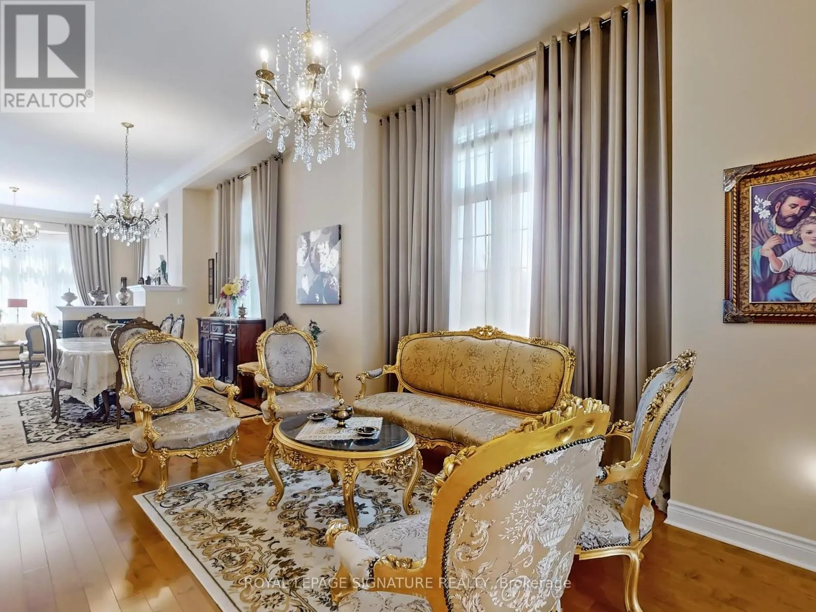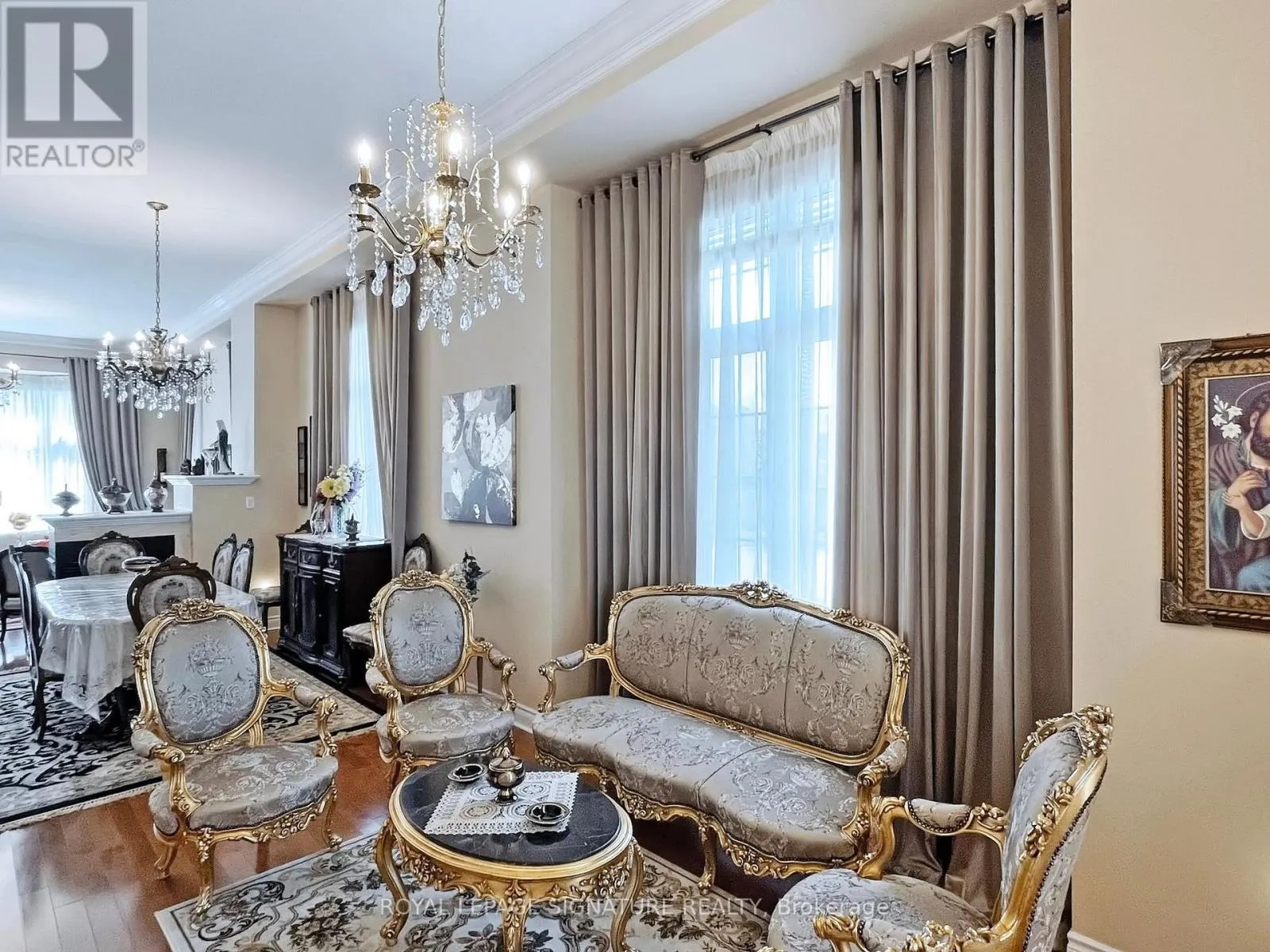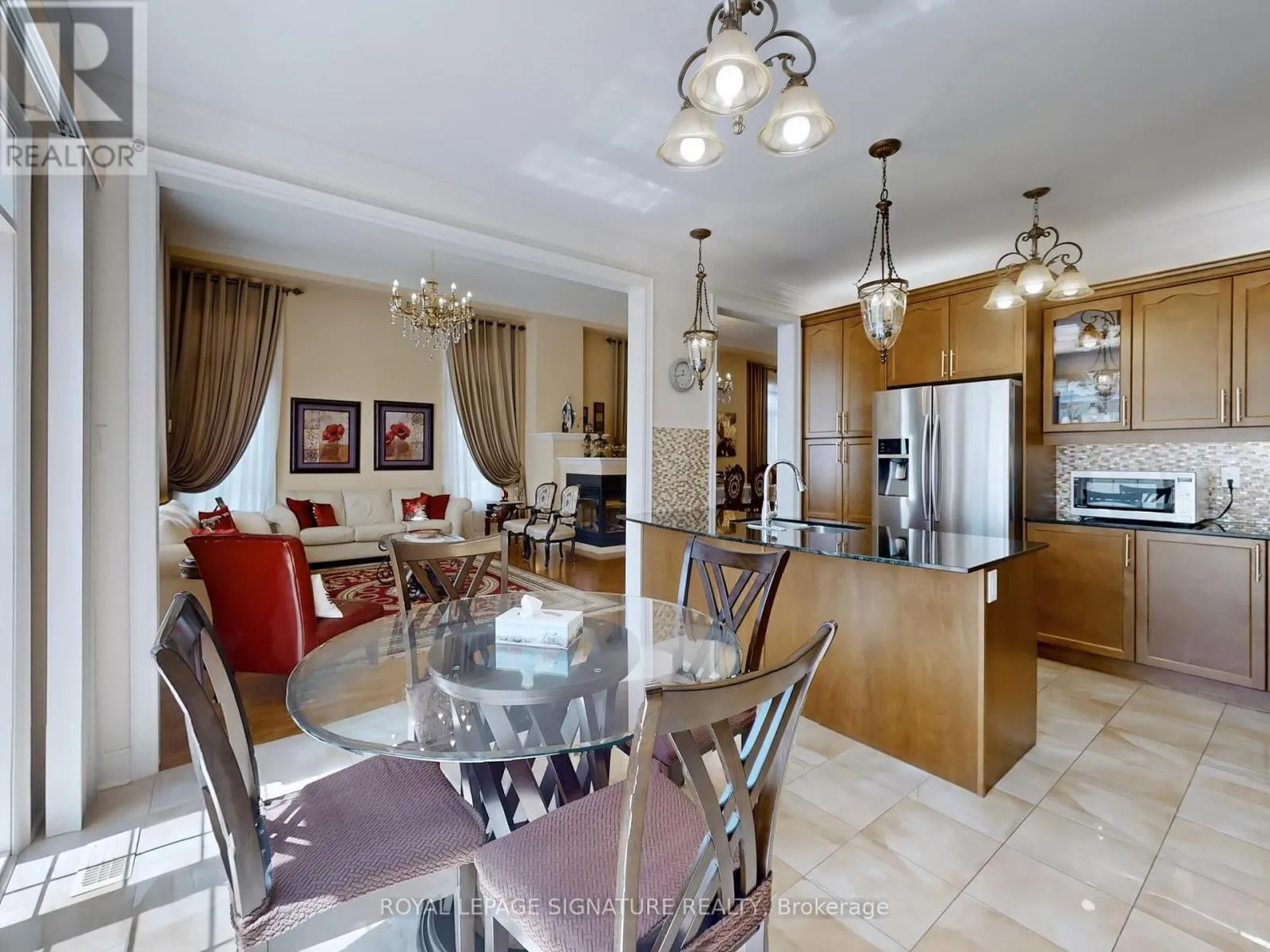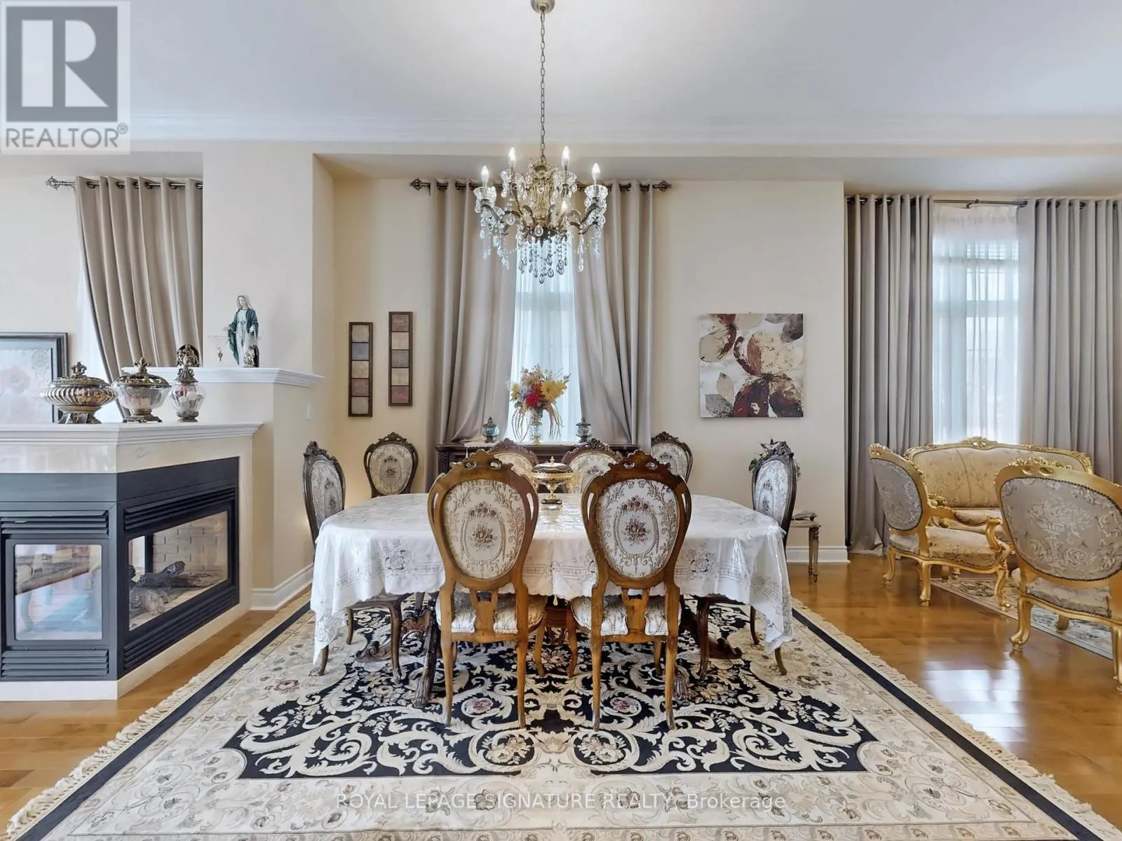 Major Mackenzie & Dufferin Welcome to 45 Jazz Dr A Wide Lot 50 x 100, 5+2 bedrooms plus a main-floor office, soaring 12-foot ceiling in main floor, Convenient side entrance for added flexibility, No sidewalk, Nestled in the prestigious Patterson community, this impressive home sits corner lot and offers, perfect for large or multi-generational families. Step inside and be greeted by and expansive windows that fill the home with natural light, creating a bright and airy atmosphere. The thoughtful layout combines comfort, elegance, and modern functionality. Crown moldings and smooth ceilings throughout, Cozy 3-sided fireplace for warm, inviting evenings, Stylish upgraded chandeliers, Elegant oak staircase with iron pickets, Gourmet Kitchen, Designed for both chefs and entertainers, the family-sized kitchen features, Chef, desk, Central island with built-in electrical outlet, Under-mount lighting for style and functionality, Spacious layout ideal for large or multi-generational families. All room measurement in the main and the 2ed floor as builder plan (id:27476)