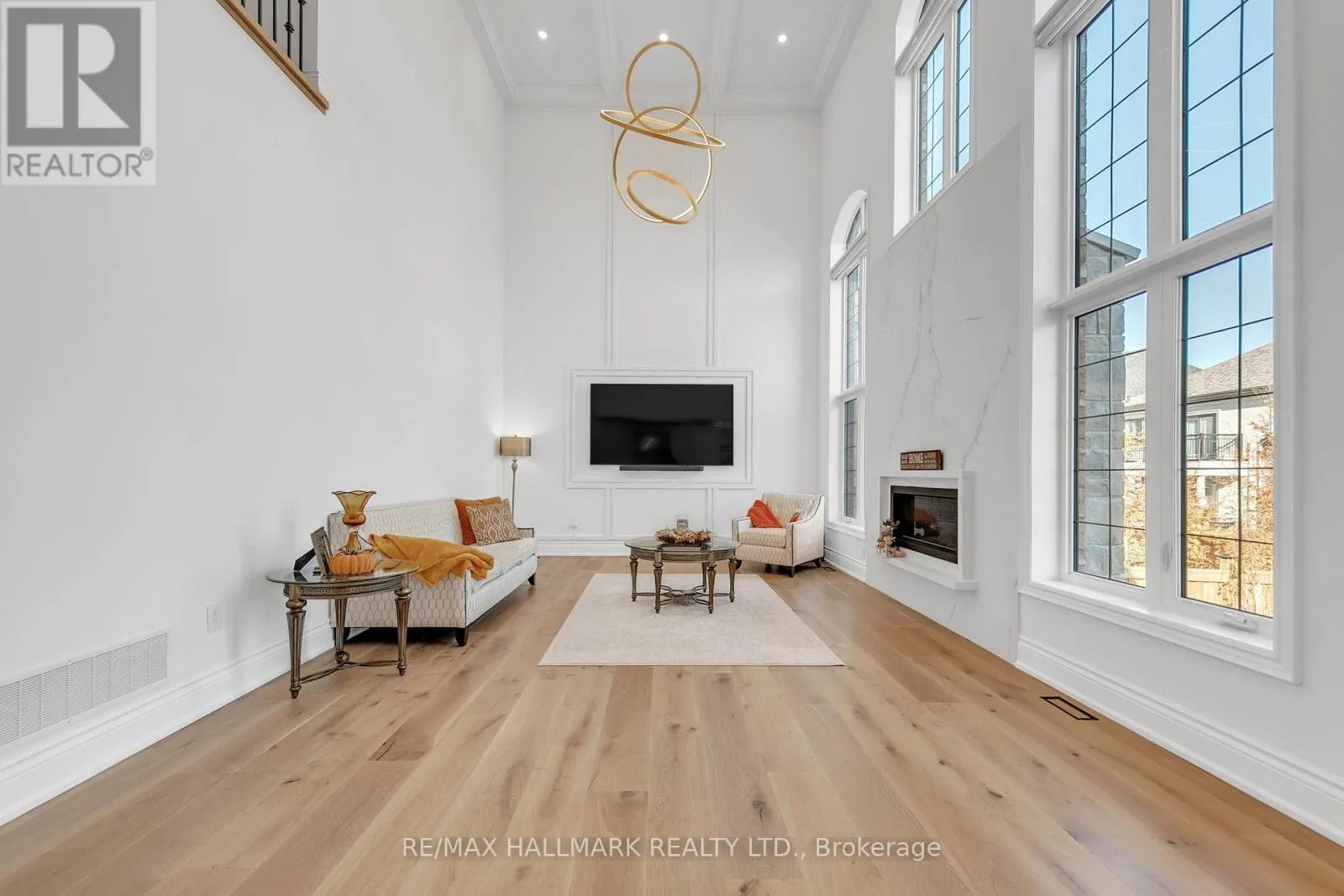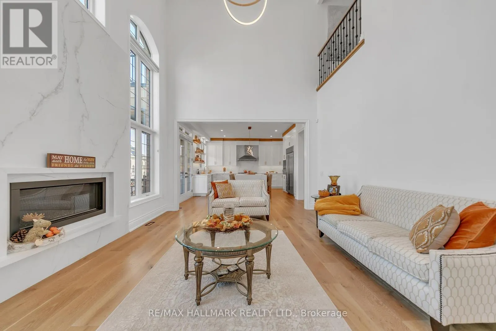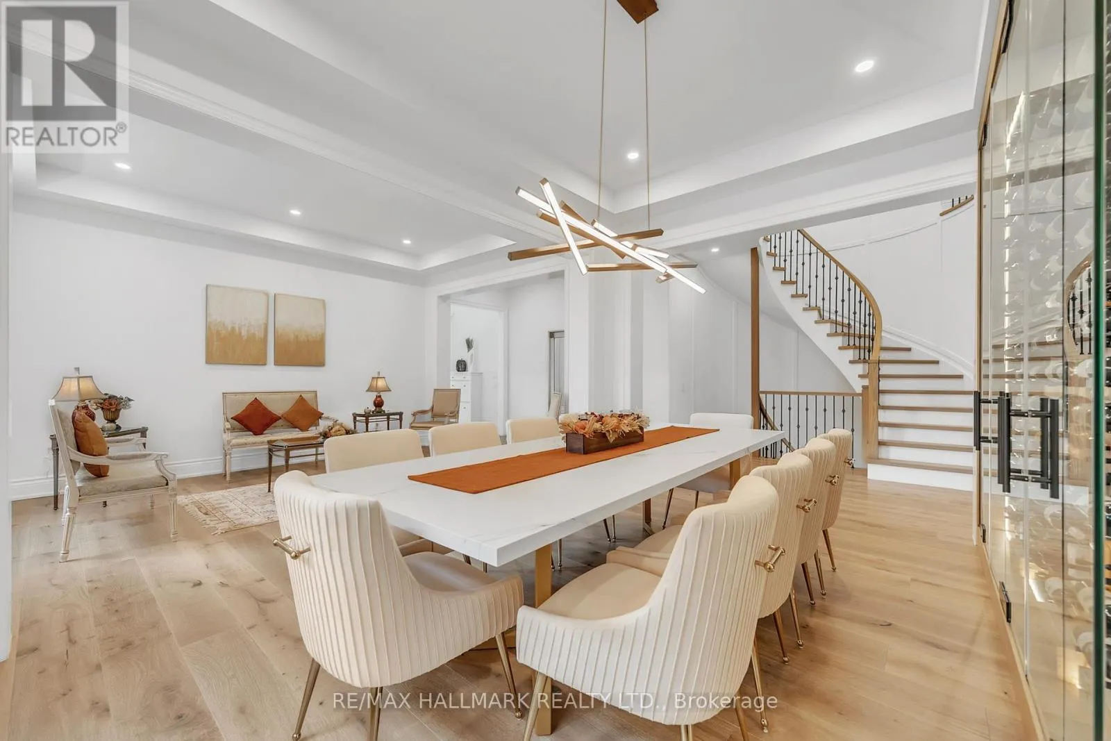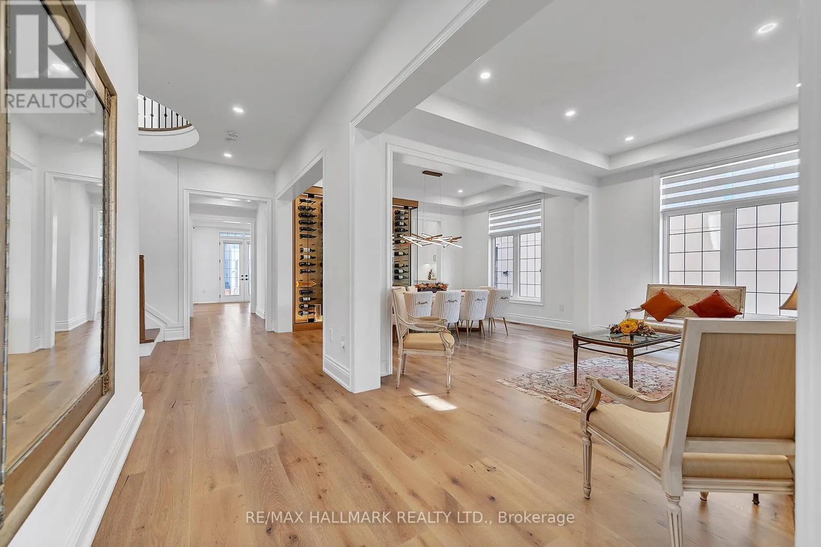 Cross Streets: Dufferin & Teston. ** Directions: Google Map. The legendary estate of 131 Lady Jessica Dr. Four-years old masterpiece nestled in the prestigious Enclave of Upper Thornhill Estates. This stunning residence boasts 4 ensuite bedrooms plus 2 additional bedrooms in the basement, complemented by a 3-car tandem garage. Designed for the discerning buyer, the home features soaring 10ft and 9ft flat ceilings throughout, a breathtaking 20ft coffered ceiling in the family room, and gleaming hardwood floors spanning the first and second levels. The chefs kitchen is a culinary dream, premium Subzero and Wolf appliances, and newly installed cabinetry. The primary retreat offers a spa-like 7-piece ensuite, a walkout balcony, and custom closet organizers. Modern blinds, fresh paint, and pot lights illuminate the entire home, while the finished lookout basement adds versatile living space.Recent enhancements elevate this property to unparalleled sophistication: a fully interlocked backyard with fencing, landscaping (featuring Ice Birch trees, hydrangeas, and landscape lighting), and a sprinkler system; a remodeled main entrance with glass doors; a home office with decorative bookcases and cabinetry; a fully insulated wine cellar with a cooling system; and a striking stone fireplace. Additional upgrades include wainscoting woodwork in the family room and staircase, all-new light fixtures, updated laundry and powder room cabinetry, new appliances (stove and dishwasher), master ensuite vanity stones, and Ethernet cabling throughout. With hardwood stairs and railings, custom walk-in closets, and a complete transformation from grass to interlocked backyard with gates, this home is the epitome of modern elegance. Experience it in 3Dthis is the one youve been waiting for! Turn key with a fully furnished and accessories available. modify this to something (id:27476)