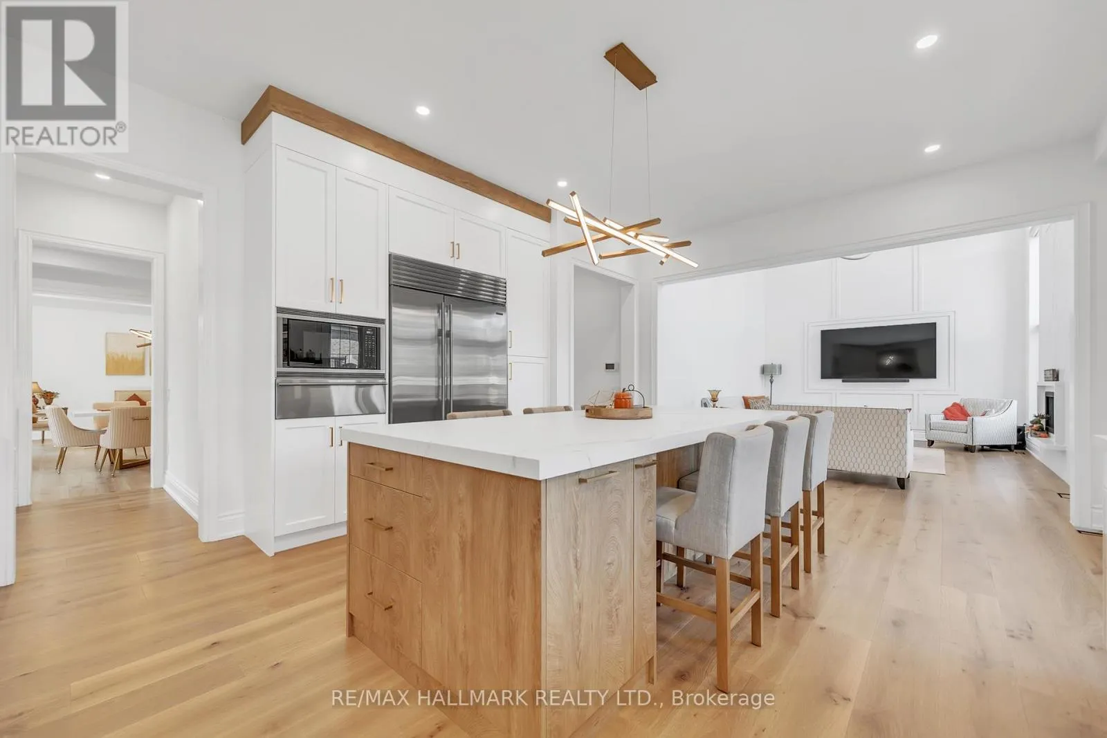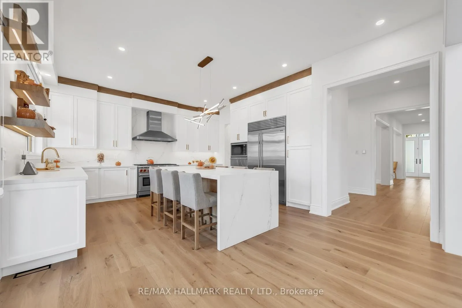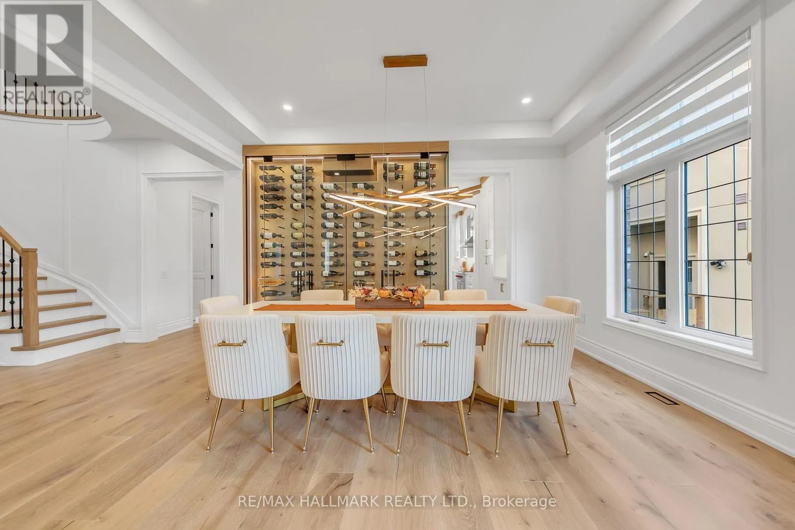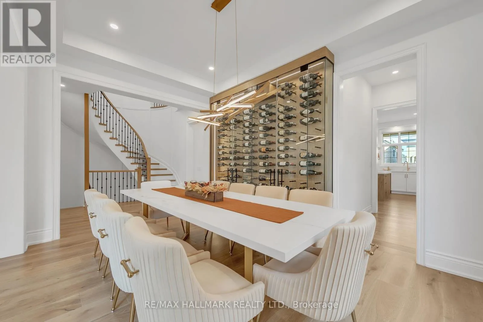 Cross Streets: Dufferin & Teston. ** Directions: Google Map. The legendary estate of 131 Lady Jessica Dr. Four-years old masterpiece nestled in the prestigious Enclave of Upper Thornhill Estates. This stunning residence boasts 4 ensuite bedrooms plus 2 additional bedrooms in the basement, complemented by a 3-car tandem garage. Designed for the discerning buyer, the home features soaring 10ft and 9ft flat ceilings throughout, a breathtaking 20ft coffered ceiling in the family room, and gleaming hardwood floors spanning the first and second levels. The chefs kitchen is a culinary dream, premium Subzero and Wolf appliances, and newly installed cabinetry. The primary retreat offers a spa-like 7-piece ensuite, a walkout balcony, and custom closet organizers. Modern blinds, fresh paint, and pot lights illuminate the entire home, while the finished lookout basement adds versatile living space.Recent enhancements elevate this property to unparalleled sophistication: a fully interlocked backyard with fencing, landscaping (featuring Ice Birch trees, hydrangeas, and landscape lighting), and a sprinkler system; a remodeled main entrance with glass doors; a home office with decorative bookcases and cabinetry; a fully insulated wine cellar with a cooling system; and a striking stone fireplace. Additional upgrades include wainscoting woodwork in the family room and staircase, all-new light fixtures, updated laundry and powder room cabinetry, new appliances (stove and dishwasher), master ensuite vanity stones, and Ethernet cabling throughout. With hardwood stairs and railings, custom walk-in closets, and a complete transformation from grass to interlocked backyard with gates, this home is the epitome of modern elegance. Experience it in 3Dthis is the one youve been waiting for! Turn key with a fully furnished and accessories available. modify this to something (id:27476)