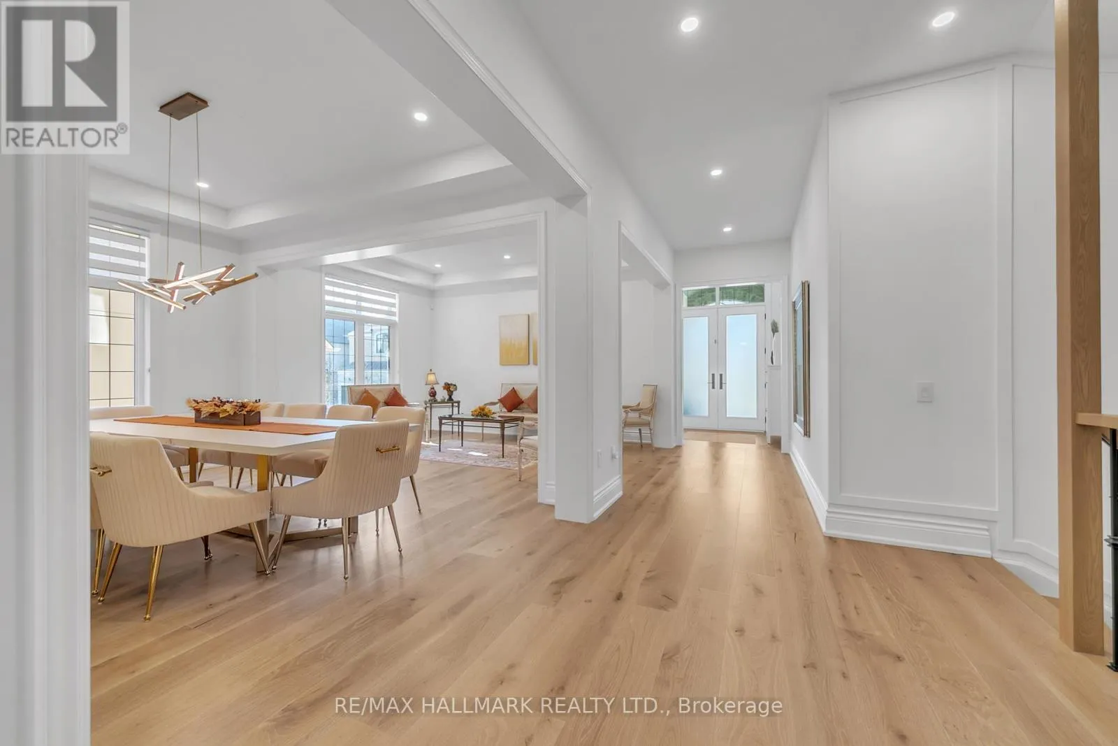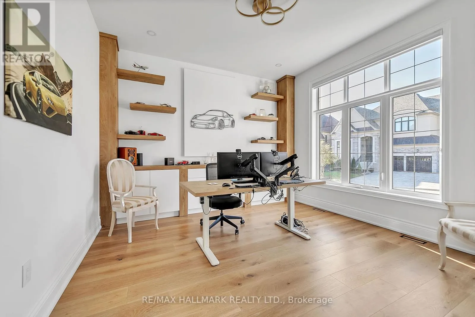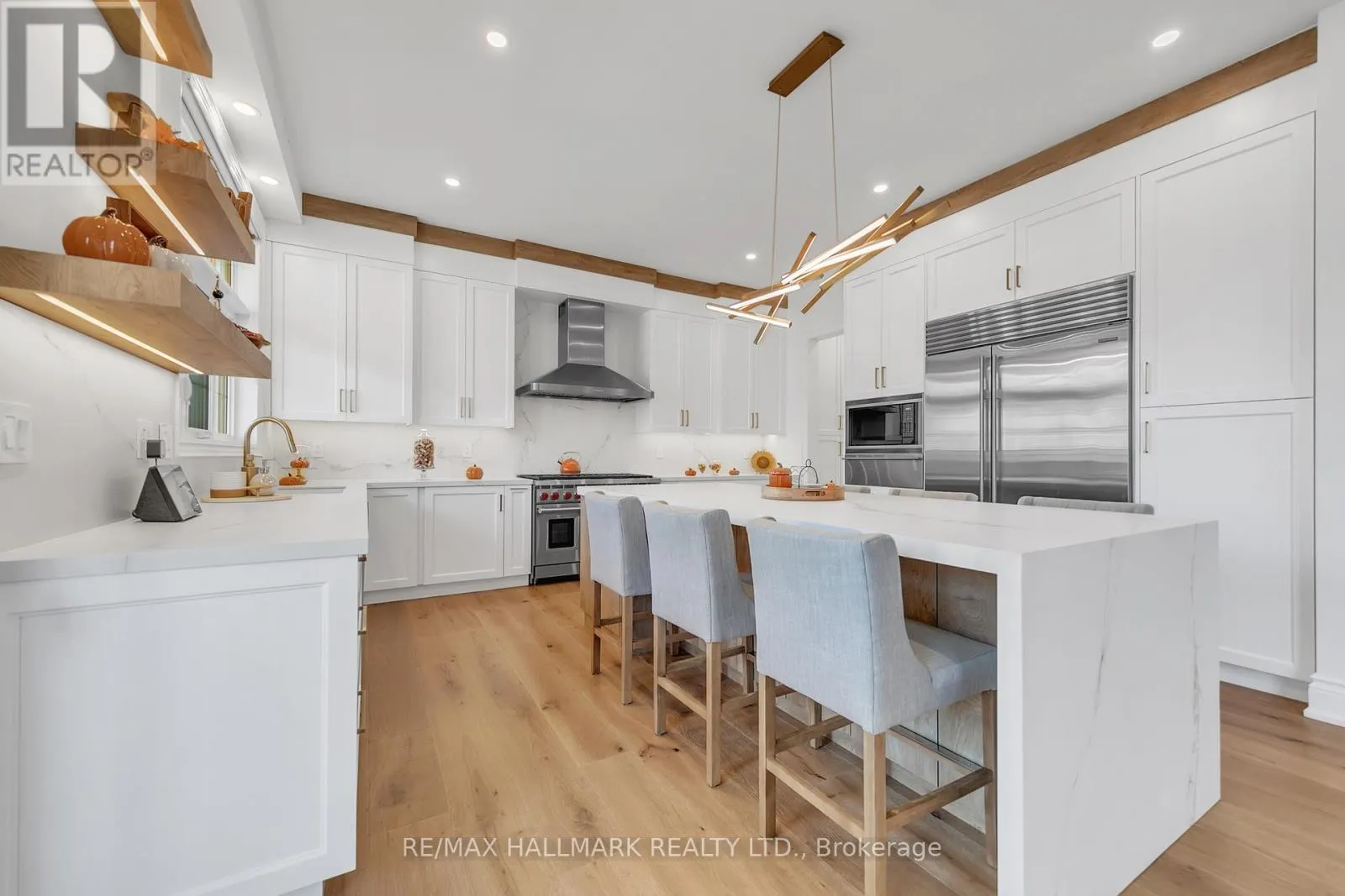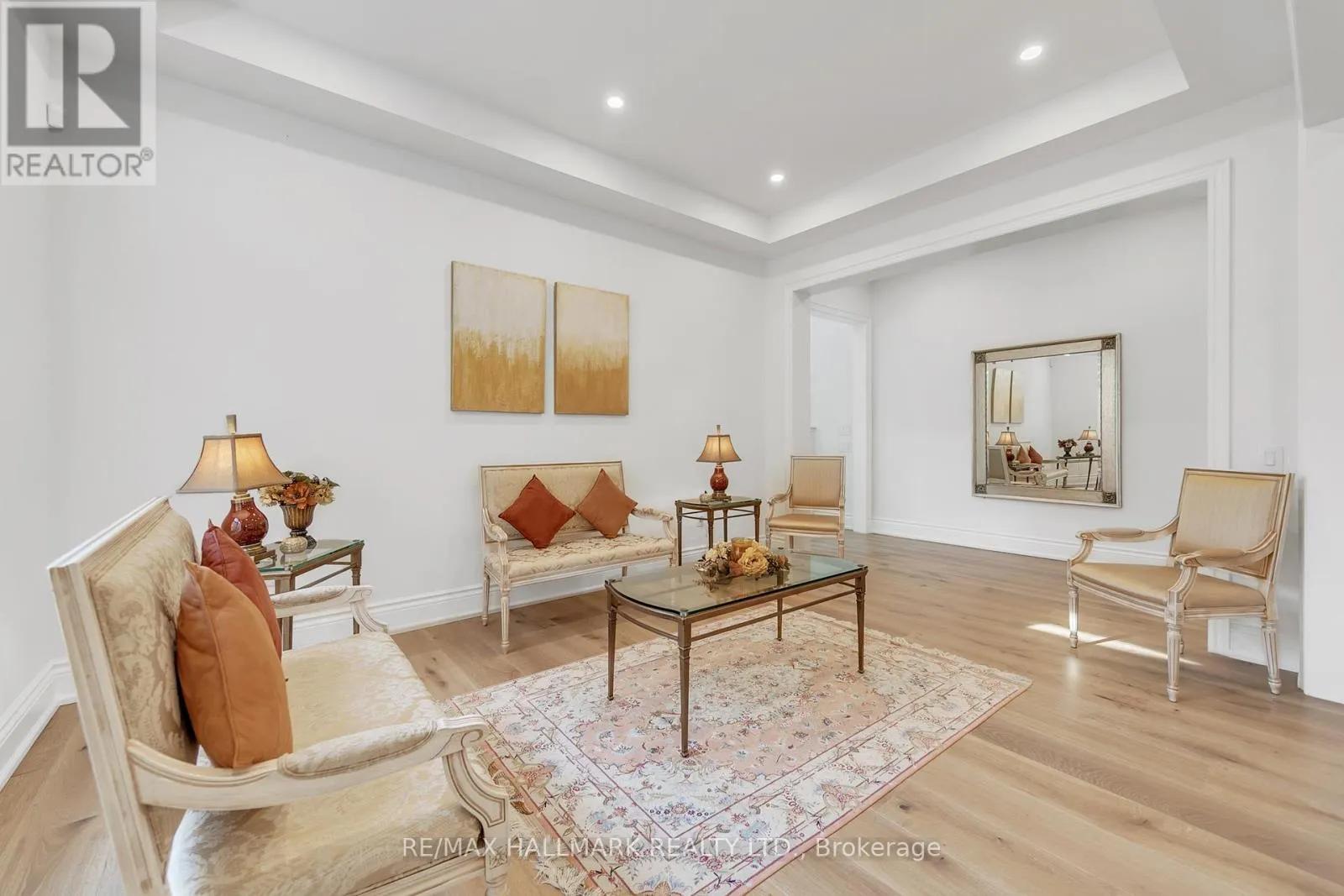 Cross Streets: Dufferin & Teston. ** Directions: Google Map. The legendary estate of 131 Lady Jessica Dr. Four-years old masterpiece nestled in the prestigious Enclave of Upper Thornhill Estates. This stunning residence boasts 4 ensuite bedrooms plus 2 additional bedrooms in the basement, complemented by a 3-car tandem garage. Designed for the discerning buyer, the home features soaring 10ft and 9ft flat ceilings throughout, a breathtaking 20ft coffered ceiling in the family room, and gleaming hardwood floors spanning the first and second levels. The chefs kitchen is a culinary dream, premium Subzero and Wolf appliances, and newly installed cabinetry. The primary retreat offers a spa-like 7-piece ensuite, a walkout balcony, and custom closet organizers. Modern blinds, fresh paint, and pot lights illuminate the entire home, while the finished lookout basement adds versatile living space.Recent enhancements elevate this property to unparalleled sophistication: a fully interlocked backyard with fencing, landscaping (featuring Ice Birch trees, hydrangeas, and landscape lighting), and a sprinkler system; a remodeled main entrance with glass doors; a home office with decorative bookcases and cabinetry; a fully insulated wine cellar with a cooling system; and a striking stone fireplace. Additional upgrades include wainscoting woodwork in the family room and staircase, all-new light fixtures, updated laundry and powder room cabinetry, new appliances (stove and dishwasher), master ensuite vanity stones, and Ethernet cabling throughout. With hardwood stairs and railings, custom walk-in closets, and a complete transformation from grass to interlocked backyard with gates, this home is the epitome of modern elegance. Experience it in 3Dthis is the one youve been waiting for! Turn key with a fully furnished and accessories available. modify this to something (id:27476)
