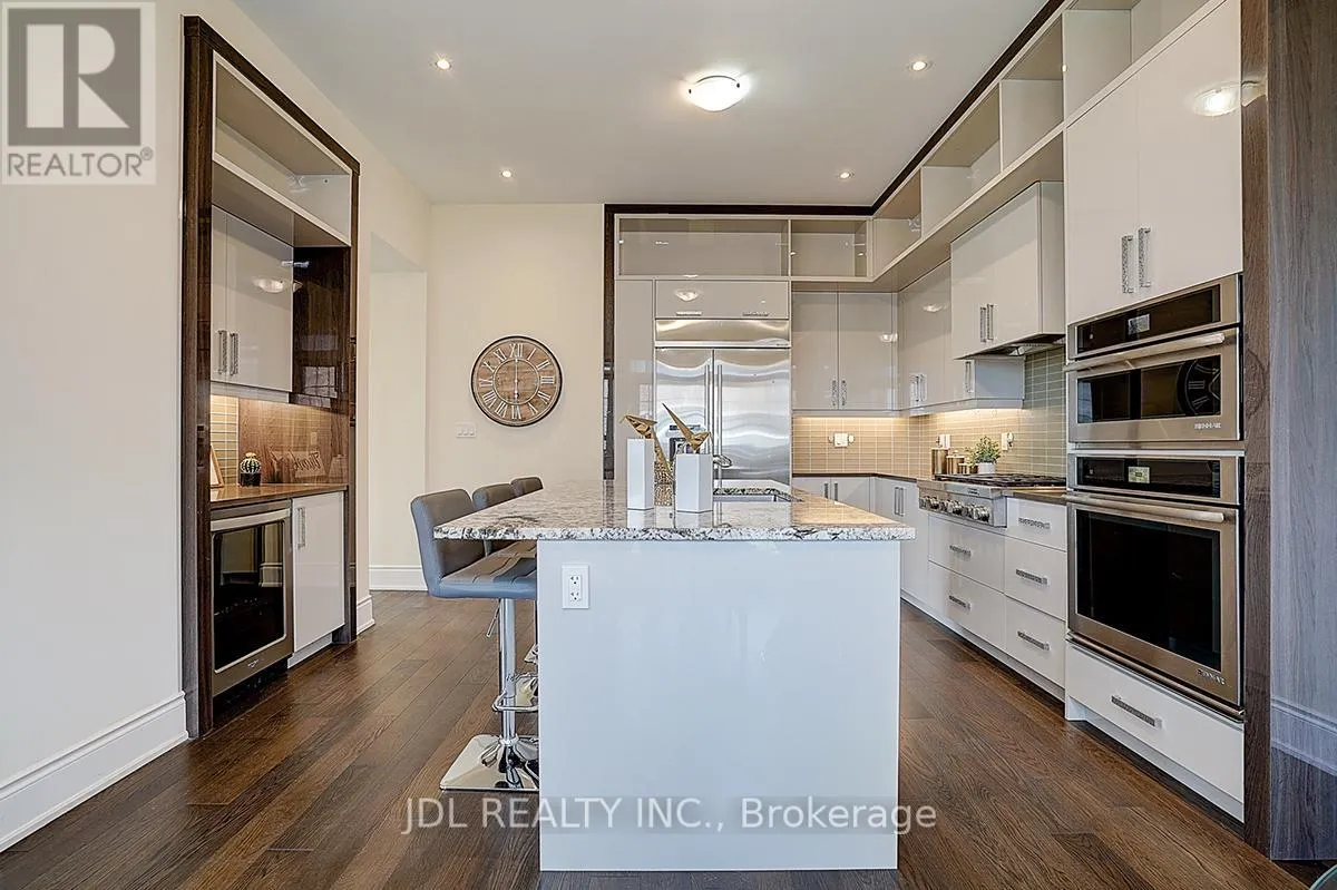 Cross Streets: Dufferin St & Major MacKenzie Dr. ** Directions: See map. Welcome to this spectacular 6-year new detached home, perfectly situated on a premium corner lot in one of Pattersons most coveted neighborhoods. Designed with modern upgrades and timeless elegance, this residence offers a harmonious blend of comfort, style, and functionality. Step into a grand foyer with double-entry doors and sleek porcelain floors that set the tone for the homes sophisticated design. Boasting 10-ft ceilings on the main floor, 9-ft ceilings upstairs and in the basement, and an airy open-concept layout, the home is filled with natural light throughout. The main floor office impresses with soaring 11-ft ceilings, while the elegant living and dining room features a double-sided gas fireplace, creating a warm and inviting atmosphere. The heart of the home is the modern custom kitchen, all upgraded to built-in JennAir appliances, stone countertops, a center island with breakfast bar, and a spacious eat-in area that opens to the backyard. An adjoining family room with a coffered ceiling and southeast exposure provides the perfect space for gatherings, enhanced by pot lights and rich 5" Eng hardwood floors throughout. Upstairs, this family-friendly home offers 4 spacious bedrooms and 3 full bathrooms, including a primary retreat with a 5-piece spa-inspired ensuite featuring an oversized seamless glass shower, double vanities, and sleek porcelain finishes. Convenient 2nd floor laundry adds modern practicality. The finished basement extends the living space with a large recreation room, an additional bedroom, and a sound-proofed Karaoke room, ideal for family fun and entertainment. Located steps from parks, scenic trails, boutique plazas, and directly across from Eagles Nest Golf Club. Just 5 minutes to Maple GO (ideal for commuters), Mackenzie Health Hospital, St. Theresa of Lisieux Catholic HS, Alexander Mackenzie HS, and major highways. (id:27476)