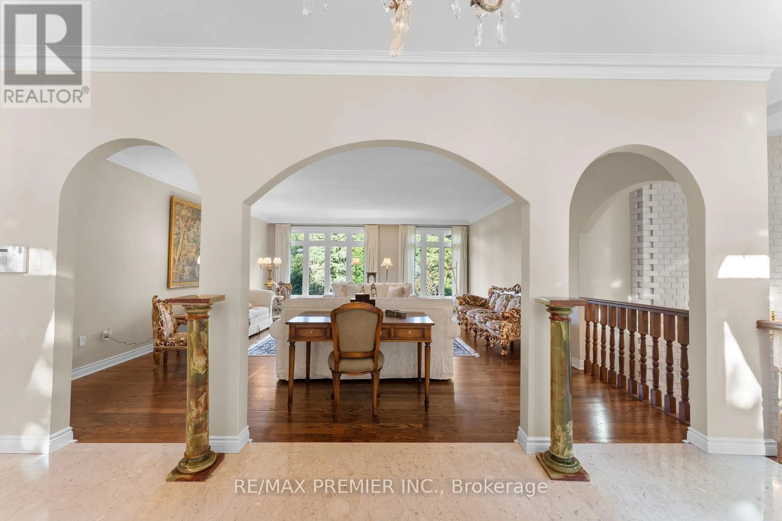 PINE VALLEY DR & VILLA PARK Welcome to 261 Sylvadene Parkway, an impressive executive residence over 6200 sq ft of finished living space set on a generous 1-acre lot in one of Vaughan's most exclusive estate communities. This distinguished property offers a rare opportunity to customize and modernize a well-built, original-owner home with exceptional bones and timeless design. Upon arrival, a grand foyer with marble tile flooring and a soaring skylight creates an elegant first impression. The spacious main level features hardwood floors throughout the principal rooms and afunctional layout ideal for family living and entertaining. The kitchen, outfitted with granite countertops, built-in appliances, and custom cabinetry, offers excellent space and flow, ready to be tailored to your vision. The primary suite is a true retreat, featuring a large walk-in closet and a 6-piece ensuite bath. Two additional bathrooms on the main floor a full 6-piece and a 2-piece powder room accommodate family and guests with ease. Multiple walkouts from the main level open to a peaceful, private backyard, inviting seamless indoor-outdoor living. The expansive lower level offers remarkable versatility, complete with a second kitchen, family room with fireplace, solarium, wet bar, hot tub room, sauna, and a 3-piece bath perfect for multigenerational living or future renovation into a luxurious entertainment space. A detached guest house Garden Suiter provides flexible options for extended family, a private office, nanny suite, or potential rental income. The landscaped yard includes a workshop, ample storage areas, mature trees, and a vegetable garden. Additional features include a three-car garage and a premium location close to top-ranked schools, shopping, dining, and major highways. This is a unique opportunity to own a classic estate in a highly sought-after location. Move in and enjoy as-is or bring your designer and reimagine this grand residence into your forever home. Floor Plans Attached. (id:27476)
