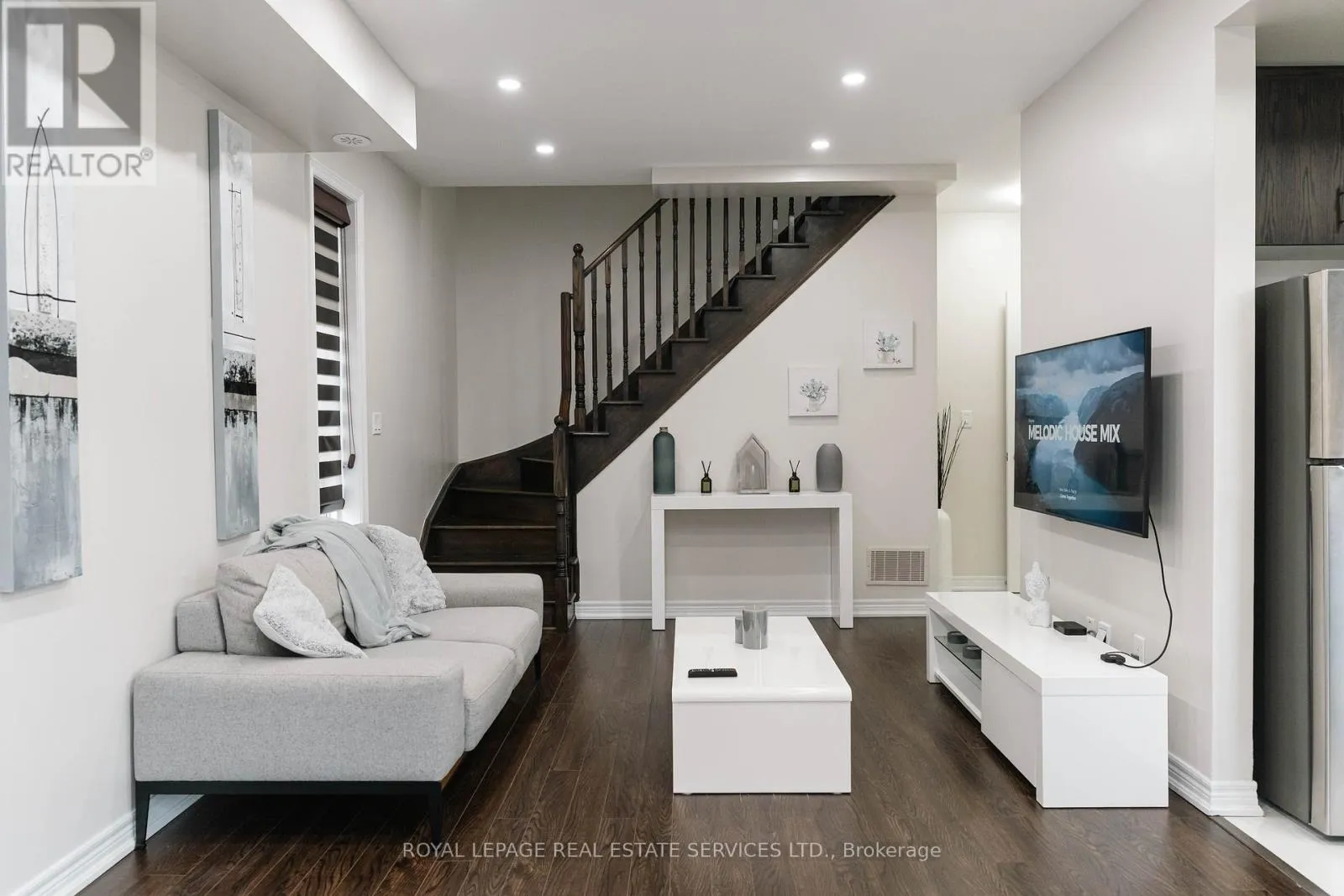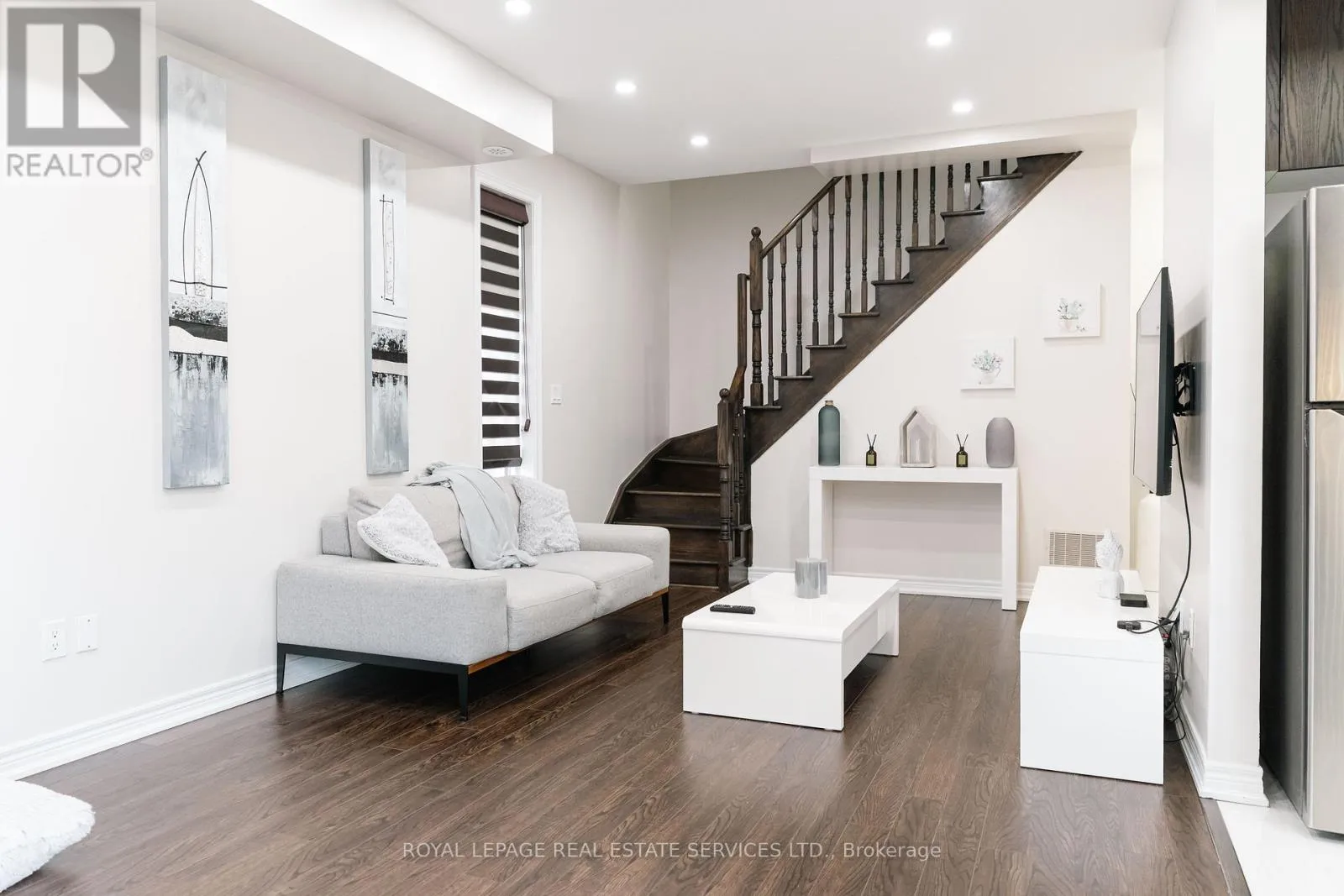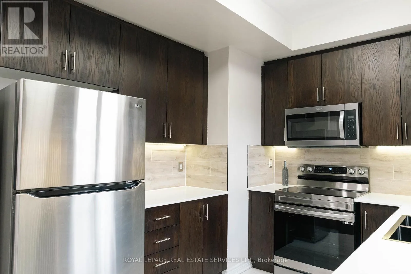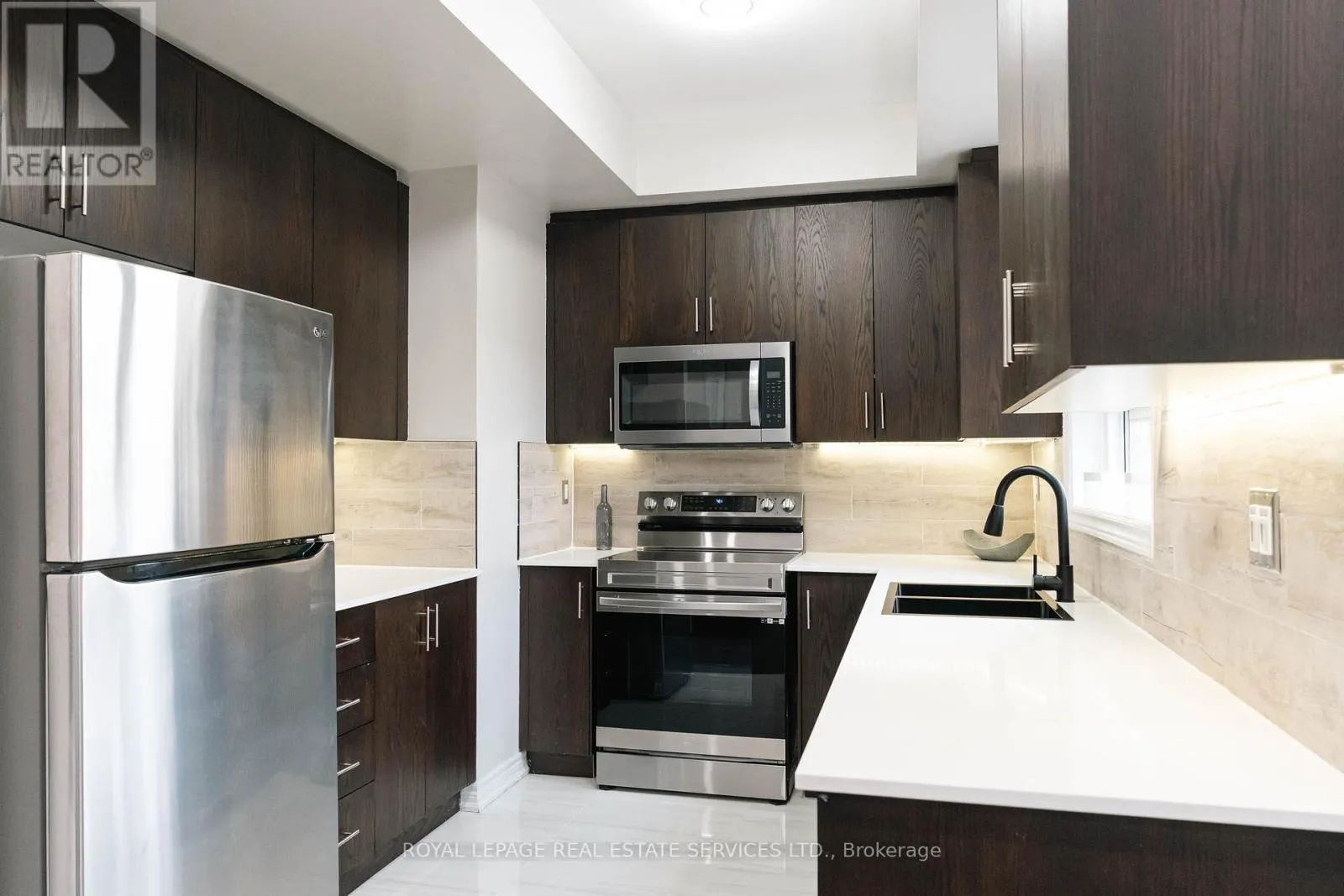 Major Mackenzie Dr & Jane St Welcome to this modern and stunning end unit condo townhome located at 9621 Jane St, Unit 13. This unit offers upscale living in one of Vaughans most desirable communities. This home is bathed in natural lightand showcases elegant dark tones, designer finishes, and new laminate flooring throughout. Featuring two spacious bedrooms and two fully upgraded bathrooms. The home is designed for comfort and style with oversized windows and custom zebra blinds. The gourmet kitchen is a chefs dream, complete with new stainless-steel appliances, quartz countertops, a double in-mount sink, stone backsplash, and ample cabinetry.The open-concept living and dining area boasts soaring ceilings and a walkout to your own private balcony, perfect for entertaining or relaxing. A beautifully stained oak staircase leads to the upper level, where the oversized primary bedroom impresses with 10 ceilings, a second balcony and a full walk-in closet. Additional features include ensuite laundry and generous storage throughout. This is refined townhouse living at its finest. (id:27476)