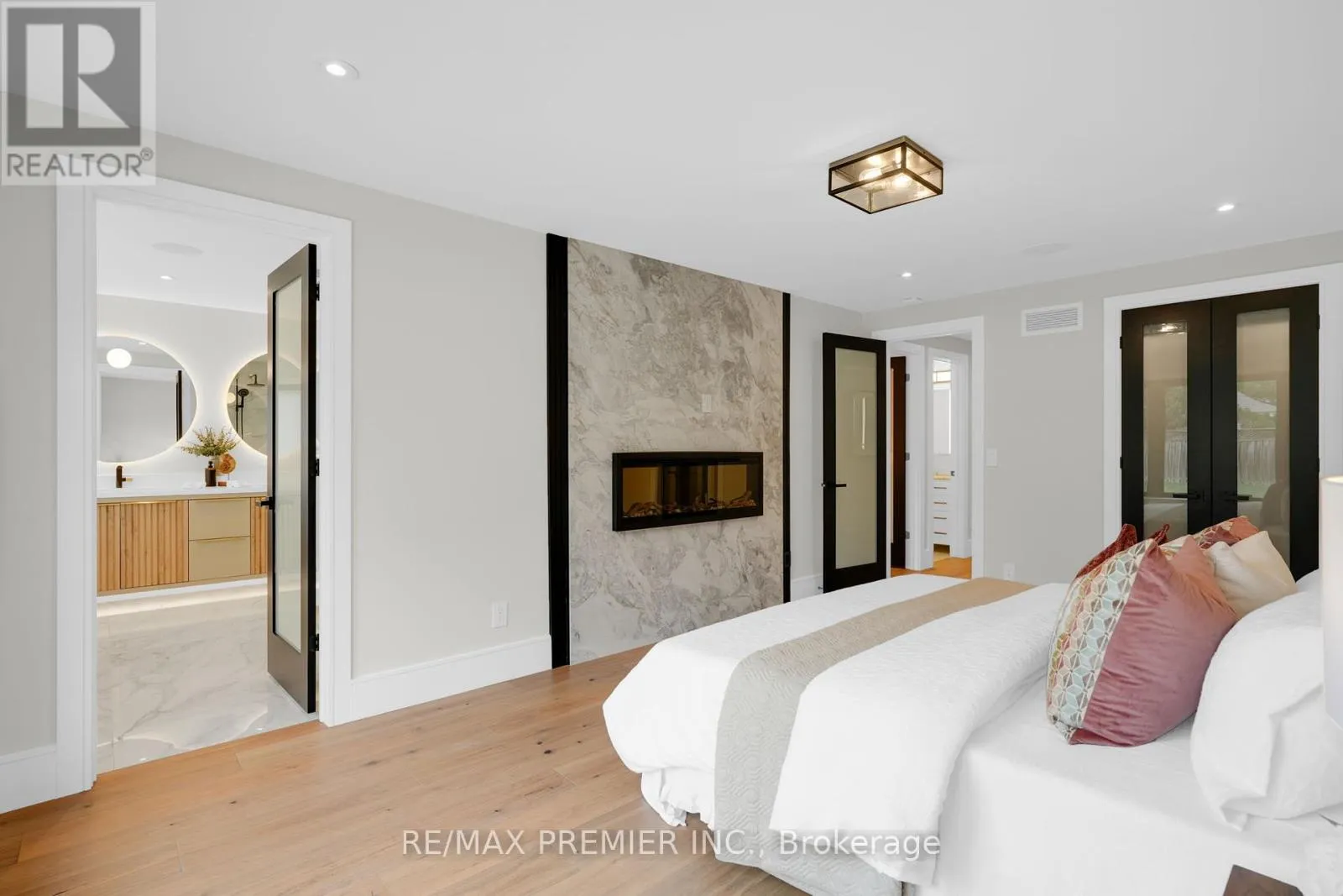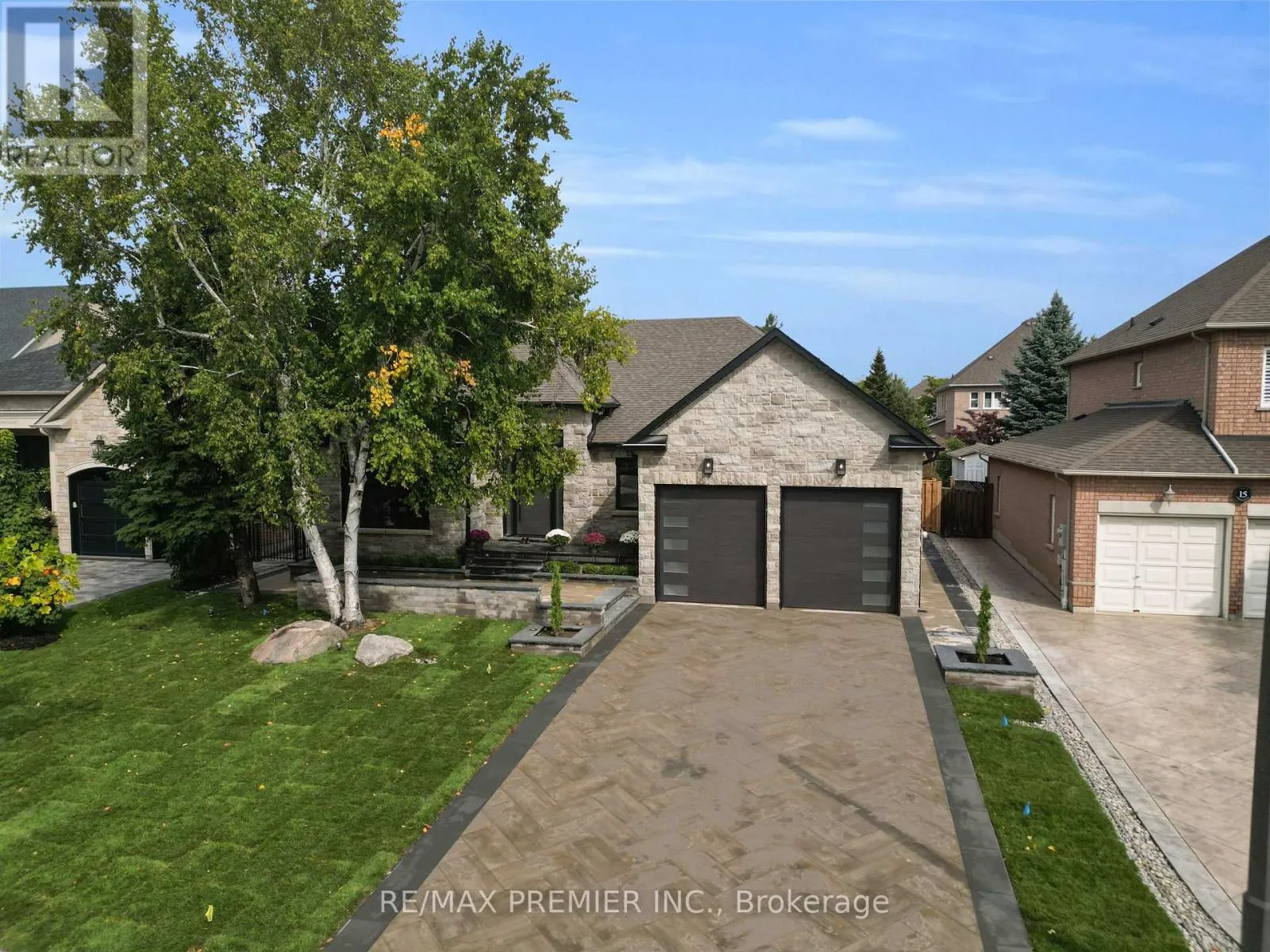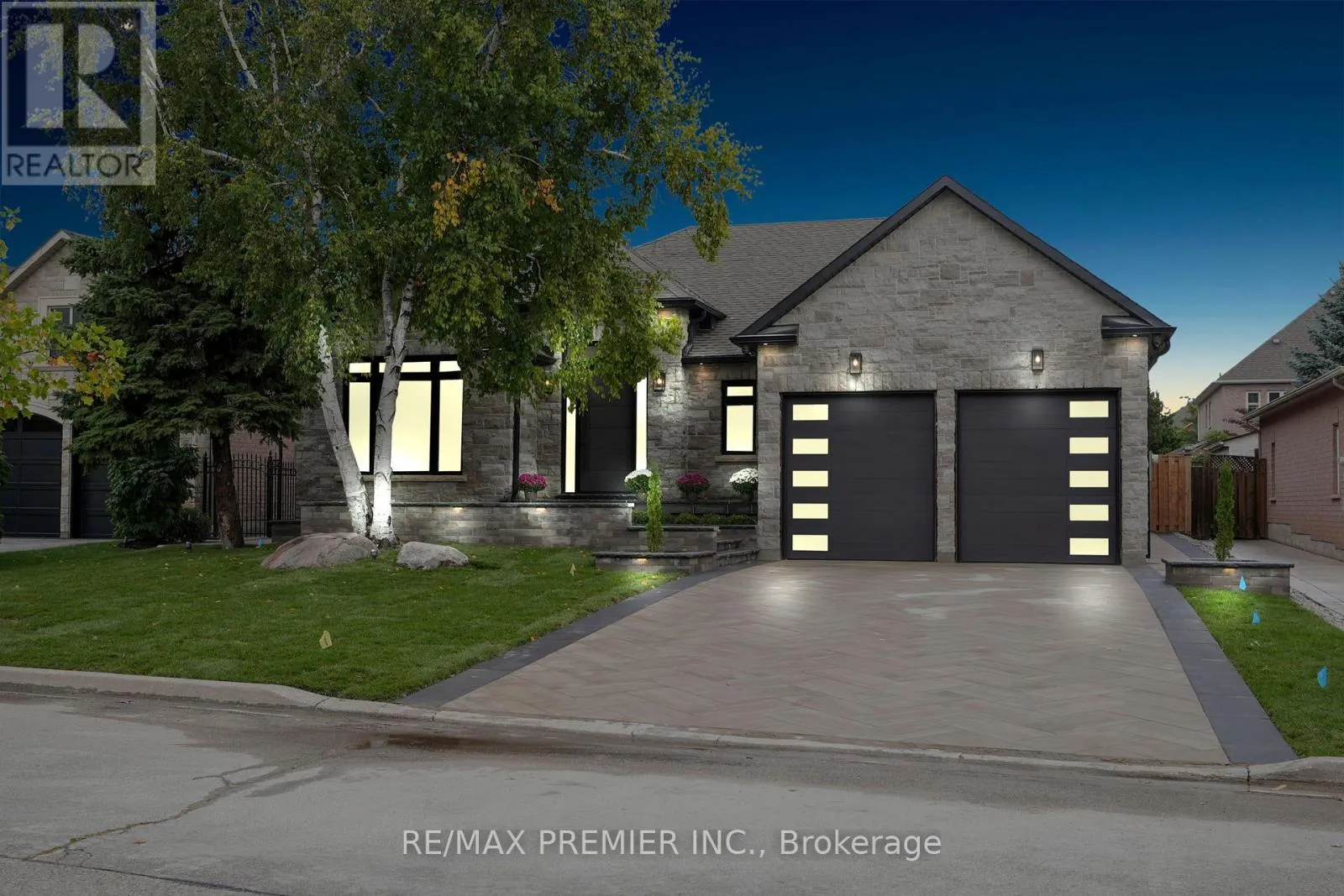Cross Streets: Weston Road & Rutherford Road. ** Directions: Weston to Rutherford left on Velmar left on Village Green, left on Polo. Completely reimagined luxury bungalow offering over 4,800 sq ft of refined living space on a premium landscaped lot in one of Woodbridges most desirable enclaves. No detail has been overlooked in this top-to-bottom transformation. The exterior showcases a natural stone façade with tiger stripe accents, 9 custom insulated garage doors, upgraded black gutters and fascia with LED pot lights, a new roof (2017), and oversized high-efficiency windows (2020). The grounds have been professionally landscaped w herringbone stone walkways, granite coping steps, mature trees, front and rear sprinkler system w Wi-Fi controls, night vision security cameras, uplighting, and a massive rear patio with matching stone design, speaker rough-ins, and EV-ready garage with secondary panel. Step inside to soaring ceilings, oversized porcelain foyer tile, a custom white oak staircase with glass railing, Astoria walnut engineered hardwood, solid wood/glass interior doors, oversized baseboards, and over 100 LED pot lights. Savant smart automation connects lighting, blinds, and speakers throughout. The brand new Italian-imported Scavolini kitchen features quartz counters, waterfall island, fluted glass-panel cabinetry, JenAir built-in appliances, LED undercabinet lighting, dining room with custom built-in buffet and 65 smart TV. The family room boasts a 72 three-sided porcelain fireplace, home theatre wiring, and oak detailing, while the office offers 11 vaulted ceilings, built-ins, and power blinds. The primary suite includes expanded windows, stone fireplace, automated blinds, integrated speakers, and a spa-inspired ensuite with custom vanity, fluted tub, oversized tile, and LED accents. The fully finished lower level offers an entertainers dream with a projector, Dolby 7.1 surround sound, modern dry bar, real brick feature walls, new powder room, storage, and a 2-bedroom in-law suite with separate entrance, brand new kitchen, bath, and laundry central vac, Nest system, 200AMP service (id:27476)