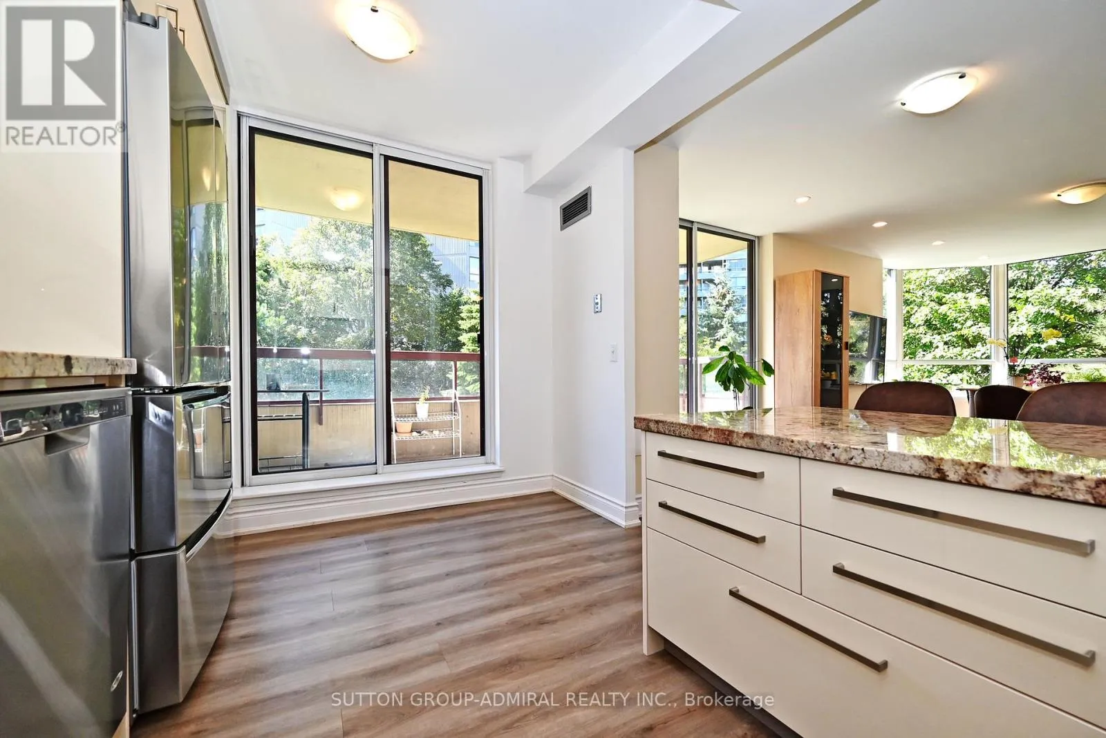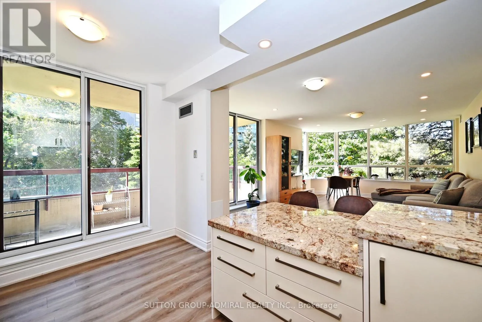 Steeles Ave., W. & Bathurst St. Welcome to a stunning, fully renovated 2-bed, 2-bath condo in a prime Thornhill location! This modern unit boasts a sleek open-concept layout with high-end finishes, including a new kitchen with stainless steel appliances, granite countertops, and a spacious living/dining area that opens to a private balcony. Enjoy fantastic building amenities such as a gym, whirlpool, outdoor pool, tennis court, and visitor parking. Ideally located near public transit, Promenade Mall, parks, and shopping. Includes 1 underground parking space and 1 locker. (id:27476)