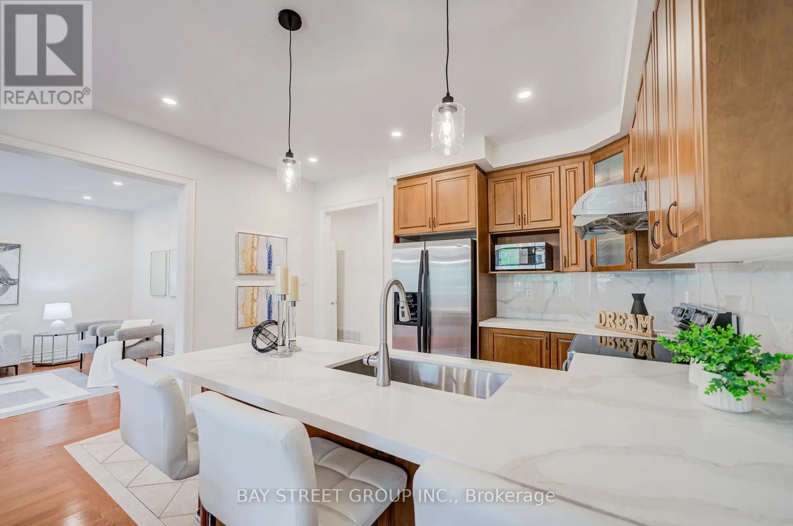 Dufferin St & Hwy 7 Welcome to premium living in this meticulously maintained, 36 ft wide detached home nestled on one of the most private and quiet cul-de-sacs in highly sought-after Thornhill Woods. Zoned in top-ranked schools (Thornhill Woods P.S., Stephen Lewis S.S., St. Theresa of Lisieux Catholic H.S.), this residence boasts over 3,200 sq ft of finished space featuring the largest, rare 4-bedroom layout (2,288 sq ft above grade) plus a professionally finished basement with an extra bedroom, bathroom, and recreation room. Designed for modern life, the main floor showcases 9 ft ceilings, hardwood flooring throughout, and a bright, open concept; the generous kitchen is updated with brand new quartz countertops and backsplash, overlooking a walkout to a private backyard with a 2-level deck perfect for entertaining. Upstairs, enjoy four large bedrooms, including a primary retreat with a newly renovated spa-like ensuite. Modern conveniences include an installed EV charger, upgraded lighting, great curb appeal with no sidewalk, and parking for 4 cars. Conveniently located close to Hwy 407/7, GO stations, and all amenities, this truly move-in ready home is in one of Vaughan's most desirable family-friendly neighborhoods. (id:27476)
