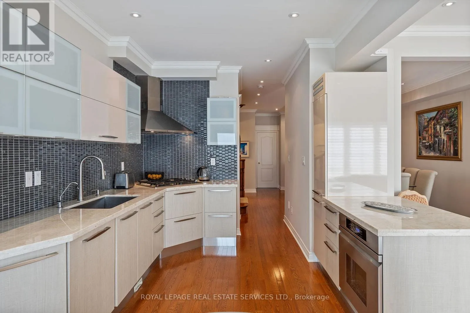 Bathurst/Centre Welcome To 140 Kingsbridge Circle. A Luxurious Custom Designed Freehold Townhouse (1885 Sq Ft Plus Finished Basement) A Great Condo Alternative. Situated On A Premium Lot. This Meridian 3 Bedroom Model By Acorn Home Was Redesigned By The Builder Combining The Primary Bedroom With The 2nd Bedroom. Can Be Converted Back To 3 Bedrooms. Walk Out From Kitchen To Large Deck And Back Garden Surrounded By Mature Trees. Custom Gourmet Eat-in Kitchen With Granite Countertops And Stone Glass Back Splash. Spacious Family Room With Vaulted Ceiling And Gas Fireplace. Main Floor Laundry With Direct Garage Entry. 9ft Ceilings On Main Level And Smooth Ceilings Throughout. Oak Staircase Open To Finished Basement Featuring A Bedroom/office, 3 Piece Bathroom, Rec Room, Custom Built-ins., Cold Room & Lots Of Storage. Close To Schools, Public Transit. Parks And Shopping. (id:27476)