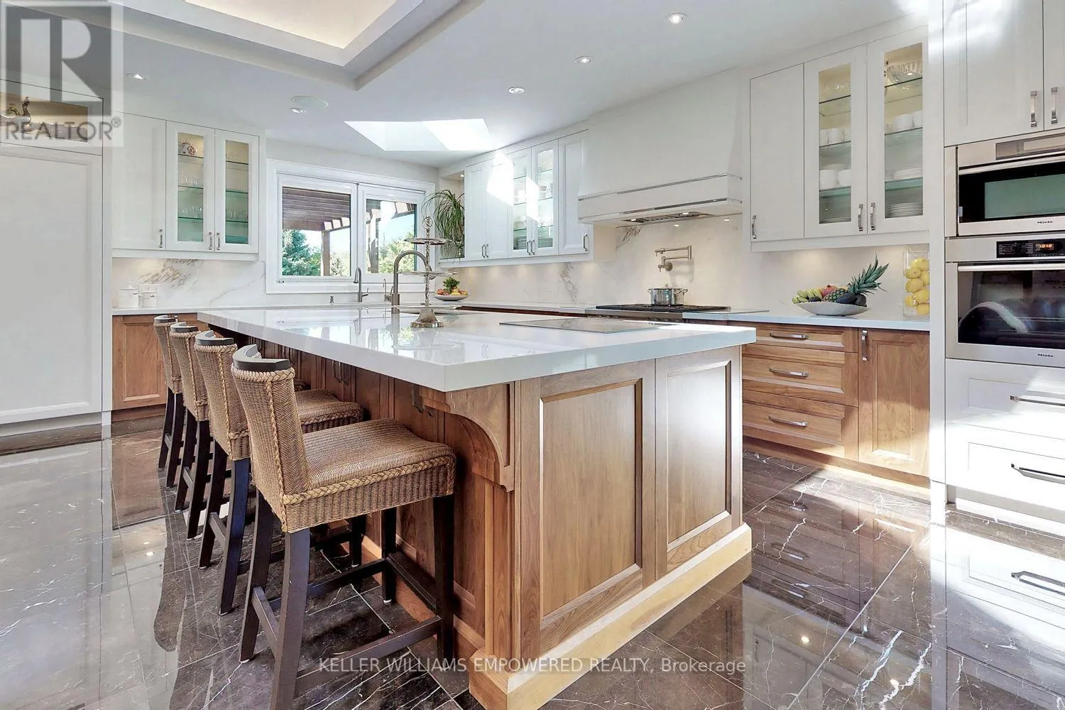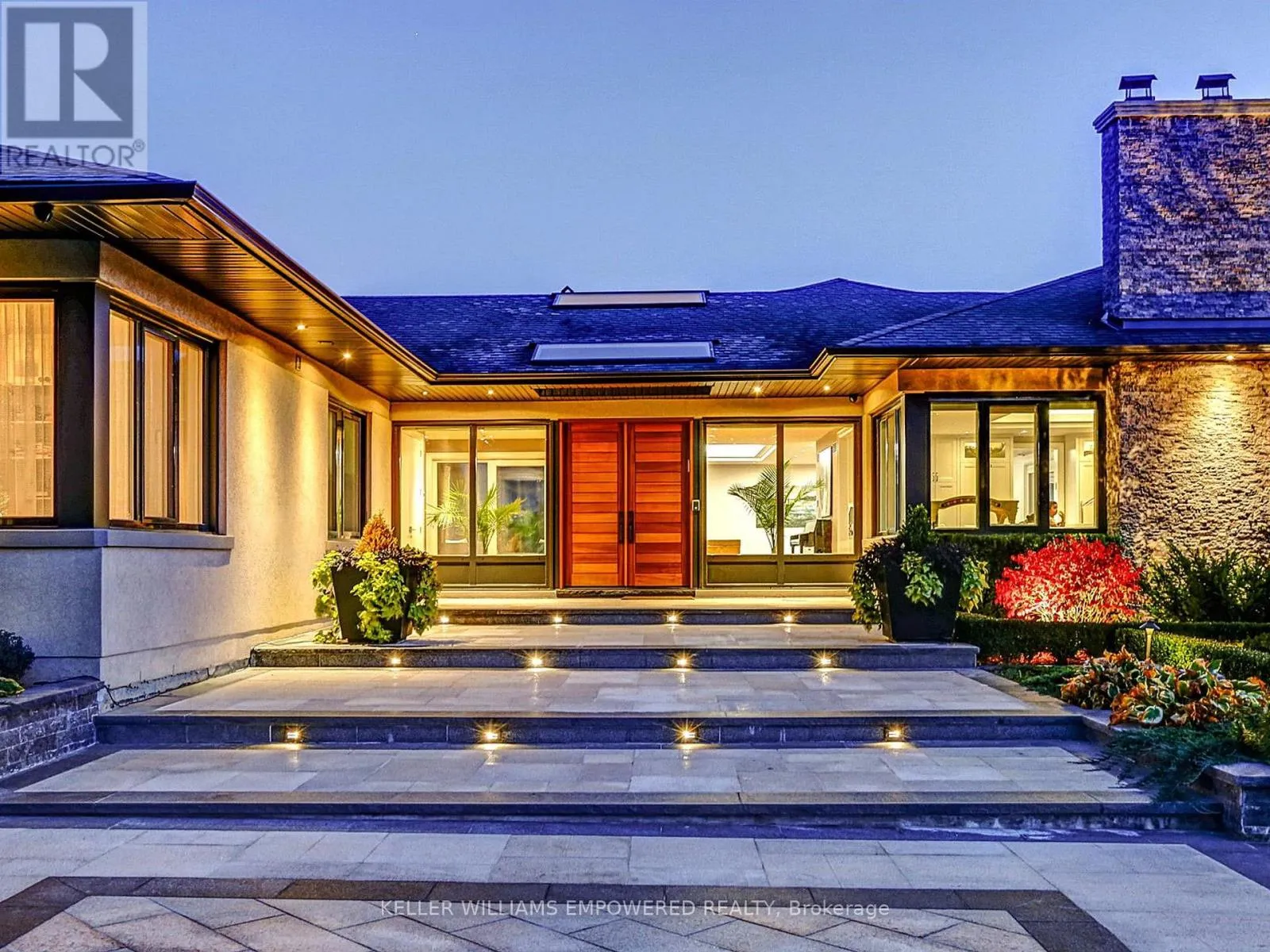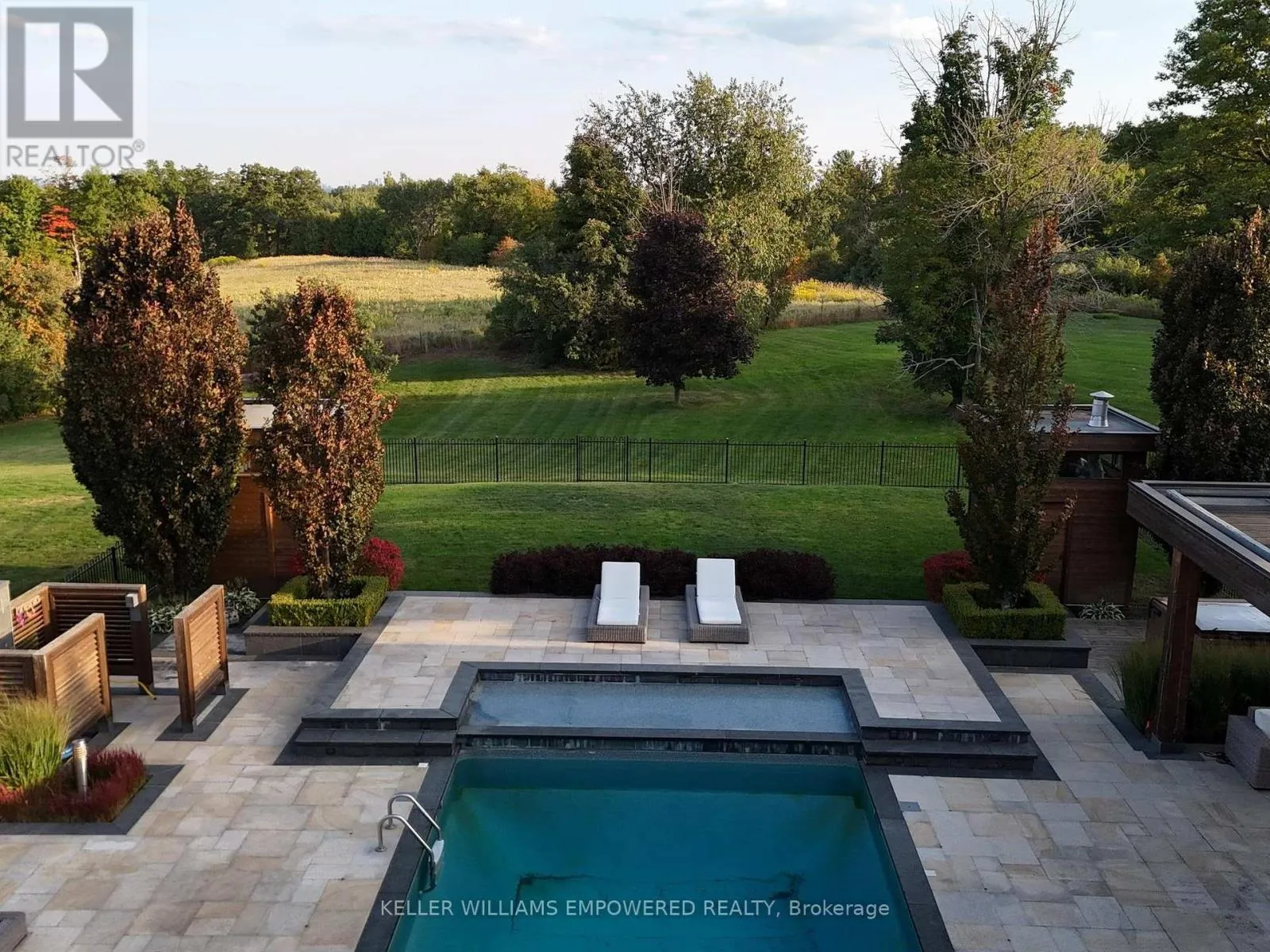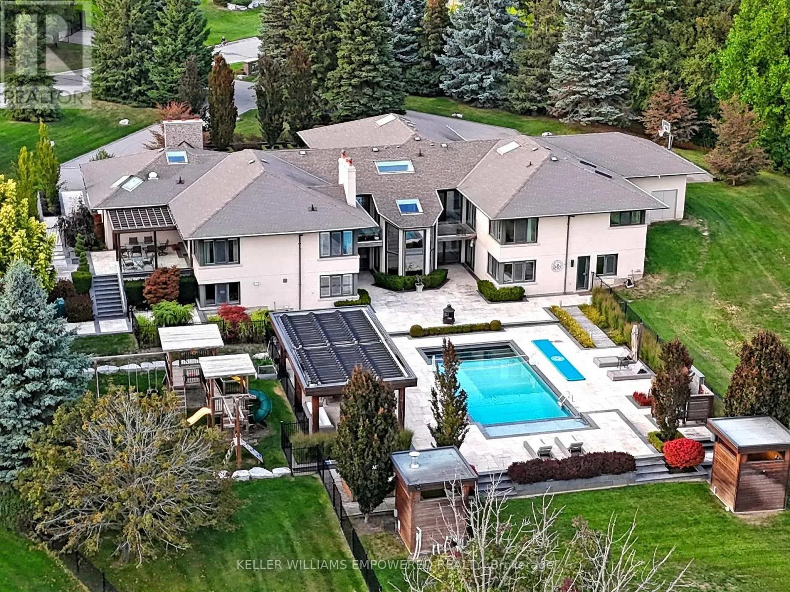 Cross Streets: Bathurst St & Elgin Mills Rd. ** Directions: West of Bathurst St & North of Elgin Mills Rd. A true resort-style estate that blends luxury living with year-round entertaining. Set on beautifully landscaped grounds with mature trees, granite walkways, and dramatic night lighting, this property offers complete privacy and sophistication from the moment you arrive. The outdoor oasis is a dream for both relaxation and entertaining, featuring an 18 x 38 foot saltwater pool with smart controls, waterfalls, a Baja ledge, and cabanas. A hot tub, outdoor shower, children's' play area, and multiple lounge spaces provide endless enjoyment. The cedar pavilion and fully equipped outdoor kitchen, complete with pizza oven, BBQ, refrigeration, freezer, and bar seating, make hosting effortless. Inside, cathedral ceilings, skylights, and expansive windows flood the home with natural light. The main living areas include a dramatic living and dining room with gas fireplace and custom built-ins, a chefs kitchen with heated floors, walnut cabinetry, marble countertops and Wolf/Miele appliances, opens to a comfortable family room with white rift cut oak floors. Five bedrooms on the upper level include a primary suite with spa bathroom, walk-in closet, and private balcony overlooking the pool. The walk-out lower level is designed for both leisure and extended living. It offers a recreation room, games room, second kitchen, full theatre with reclining seating, exercise or guest suite with salt sauna and spa area, plus ample storage. Additional highlights include a heated four-car garage with mezzanine, smart home systems, Sonos-integrated sound, triple-glazed windows, and extensive security features. This one-of-a-kind property offers the ultimate lifestyle, a private retreat that feels like a luxury resort yet provides all the comforts of home. (id:27476)
