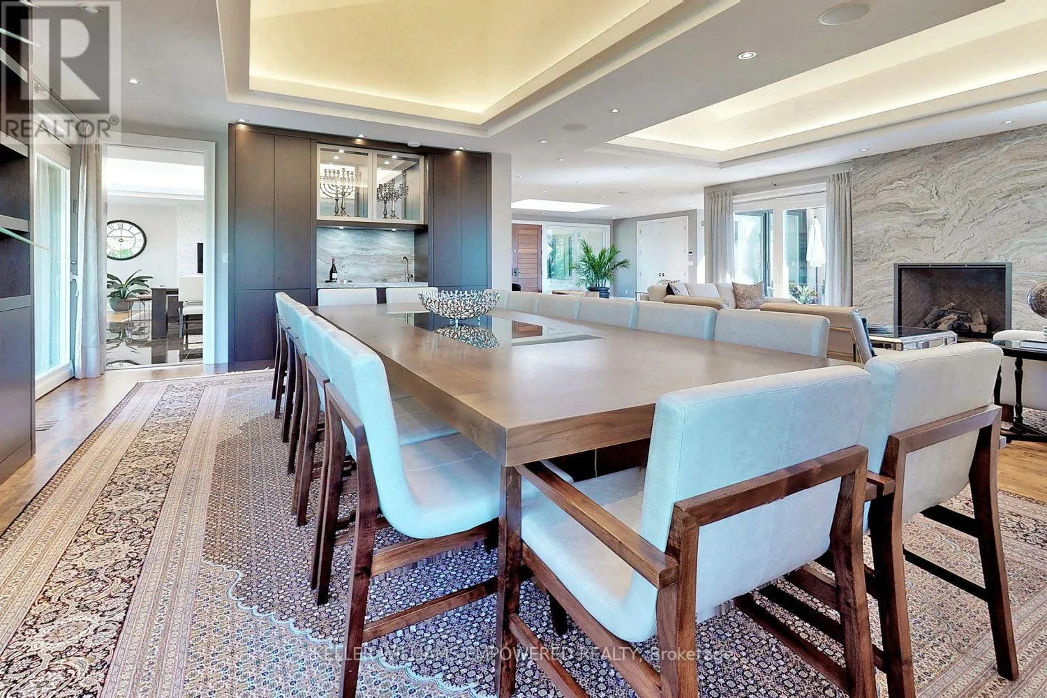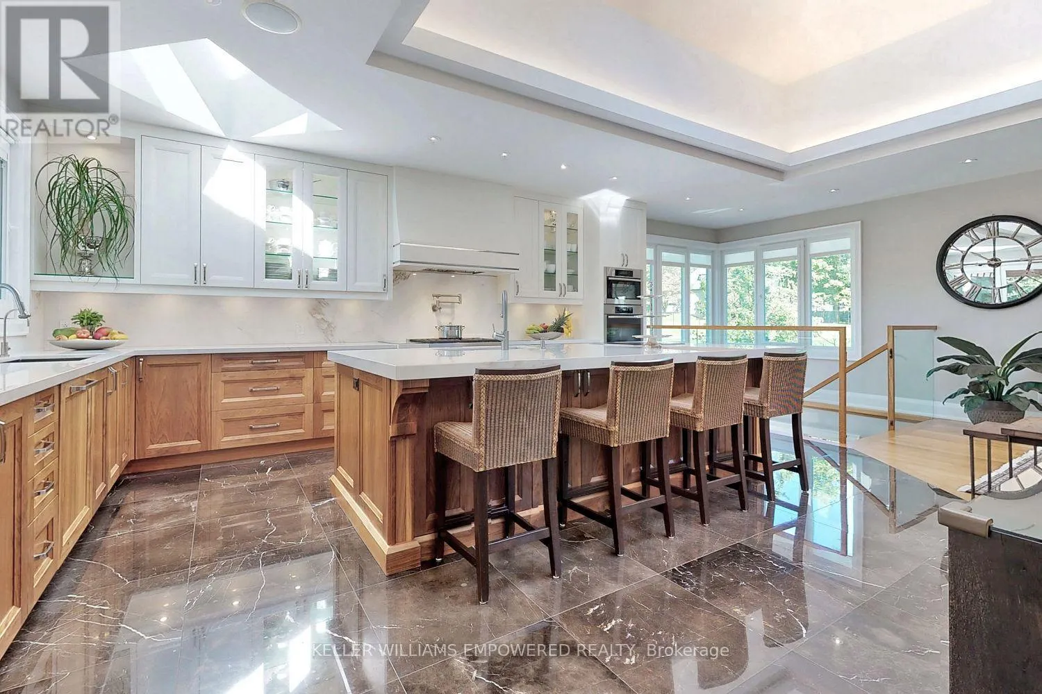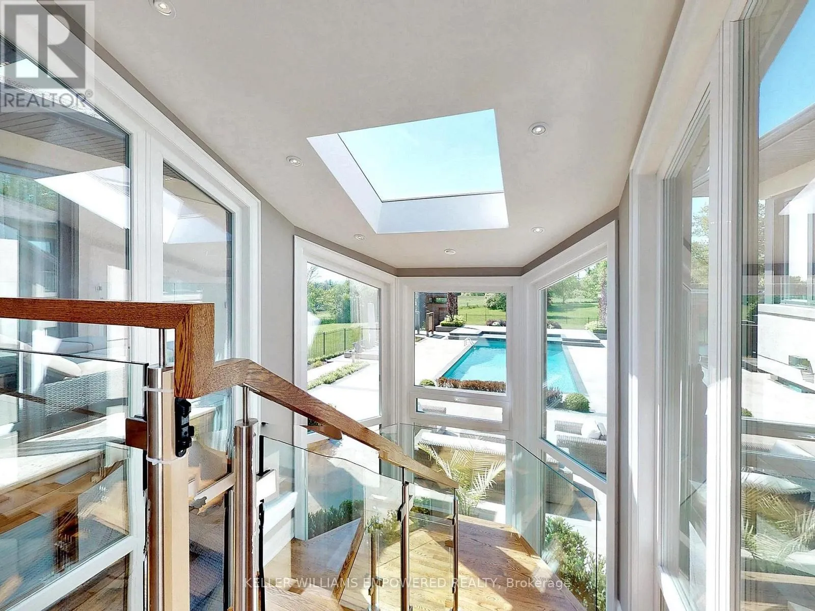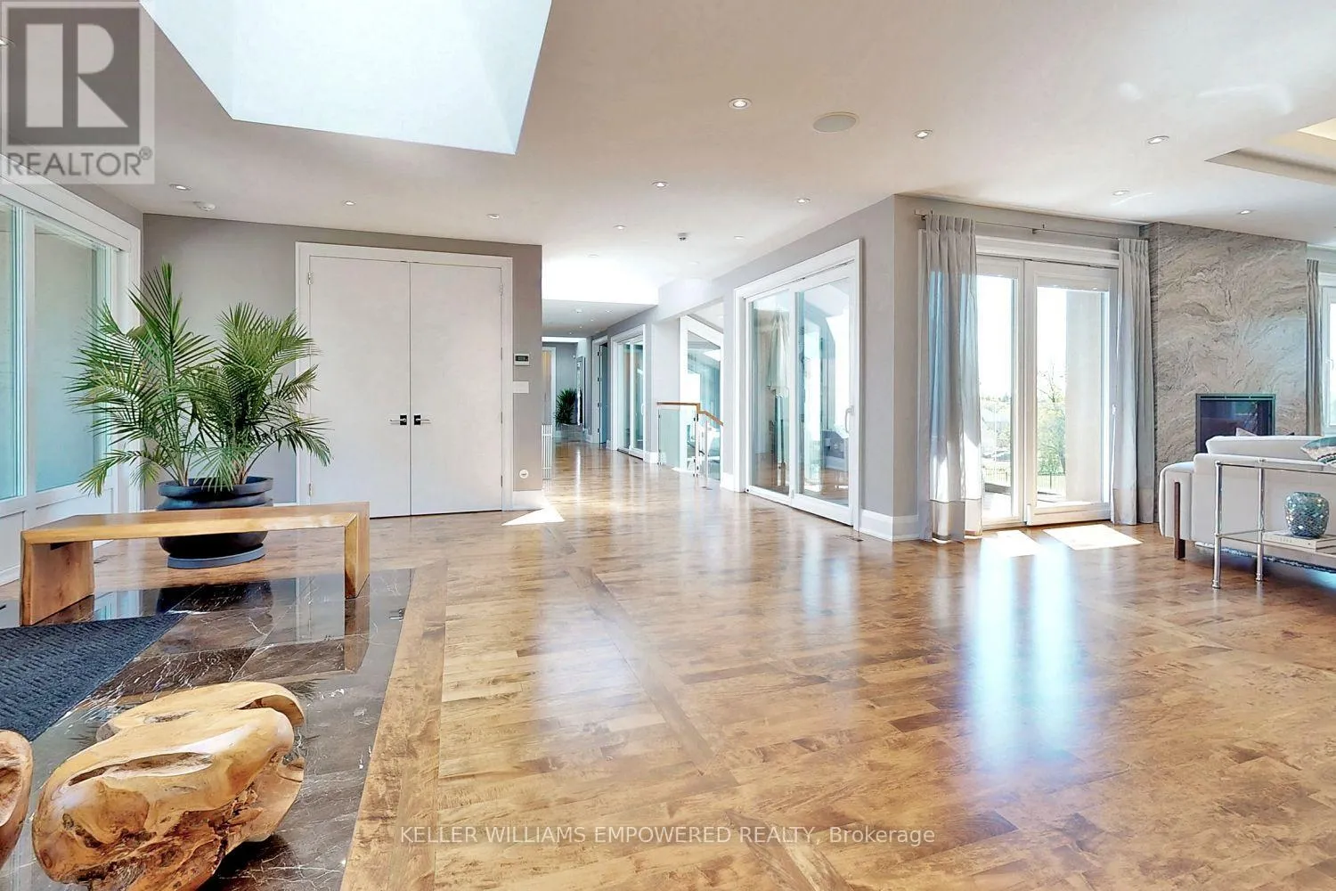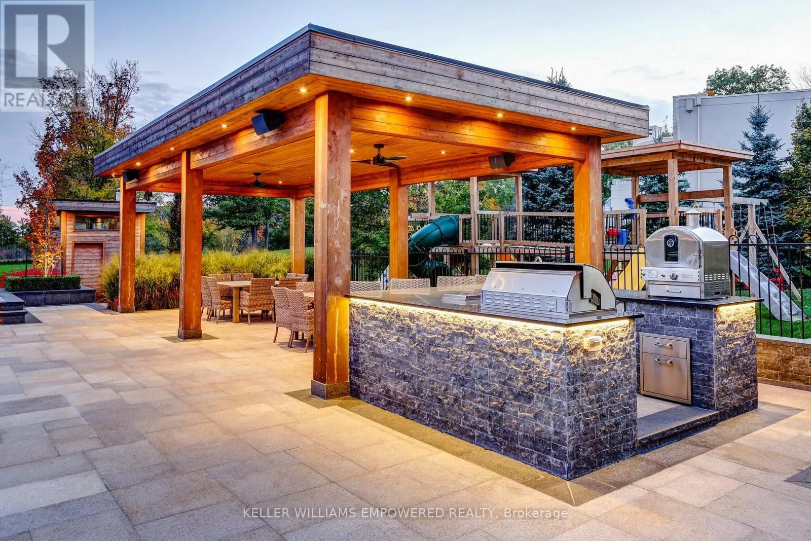 Cross Streets: Bathurst St & Elgin Mills Rd. ** Directions: West of Bathurst St & North of Elgin Mills Rd. A true resort-style estate that blends luxury living with year-round entertaining. Set on beautifully landscaped grounds with mature trees, granite walkways, and dramatic night lighting, this property offers complete privacy and sophistication from the moment you arrive. The outdoor oasis is a dream for both relaxation and entertaining, featuring an 18 x 38 foot saltwater pool with smart controls, waterfalls, a Baja ledge, and cabanas. A hot tub, outdoor shower, children's' play area, and multiple lounge spaces provide endless enjoyment. The cedar pavilion and fully equipped outdoor kitchen, complete with pizza oven, BBQ, refrigeration, freezer, and bar seating, make hosting effortless. Inside, cathedral ceilings, skylights, and expansive windows flood the home with natural light. The main living areas include a dramatic living and dining room with gas fireplace and custom built-ins, a chefs kitchen with heated floors, walnut cabinetry, marble countertops and Wolf/Miele appliances, opens to a comfortable family room with white rift cut oak floors. Five bedrooms on the upper level include a primary suite with spa bathroom, walk-in closet, and private balcony overlooking the pool. The walk-out lower level is designed for both leisure and extended living. It offers a recreation room, games room, second kitchen, full theatre with reclining seating, exercise or guest suite with salt sauna and spa area, plus ample storage. Additional highlights include a heated four-car garage with mezzanine, smart home systems, Sonos-integrated sound, triple-glazed windows, and extensive security features. This one-of-a-kind property offers the ultimate lifestyle, a private retreat that feels like a luxury resort yet provides all the comforts of home. (id:27476)