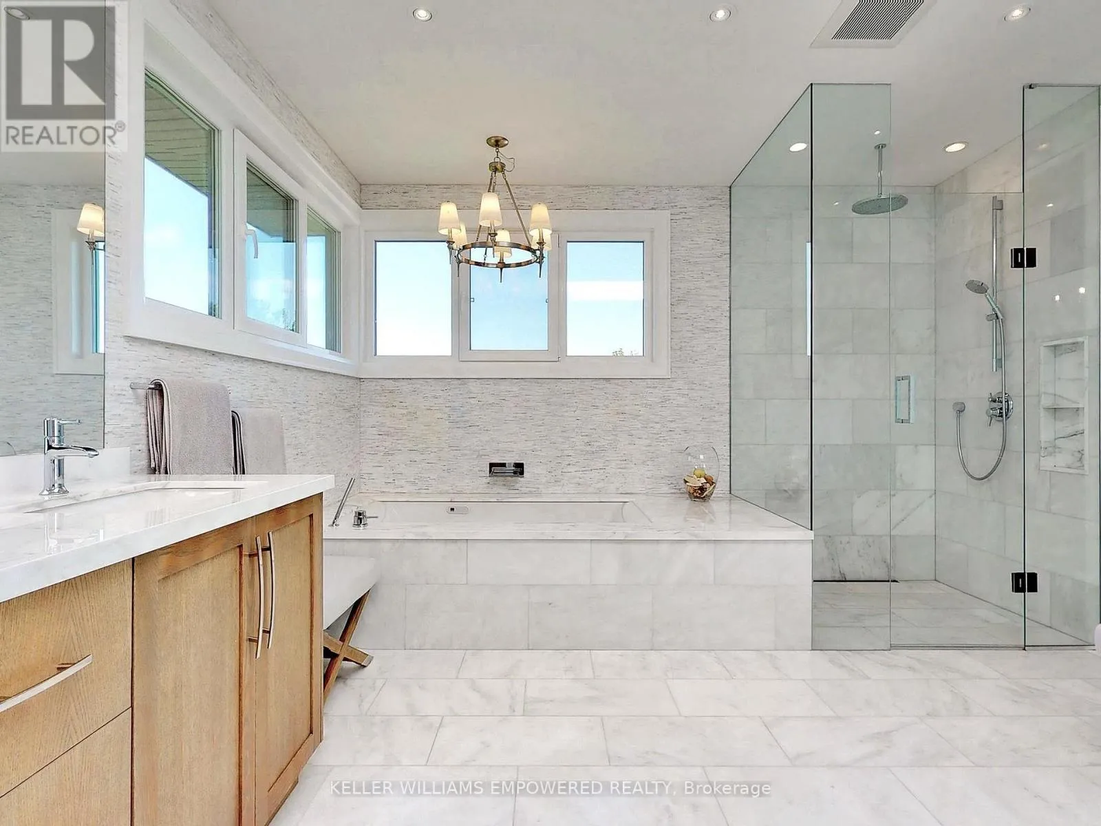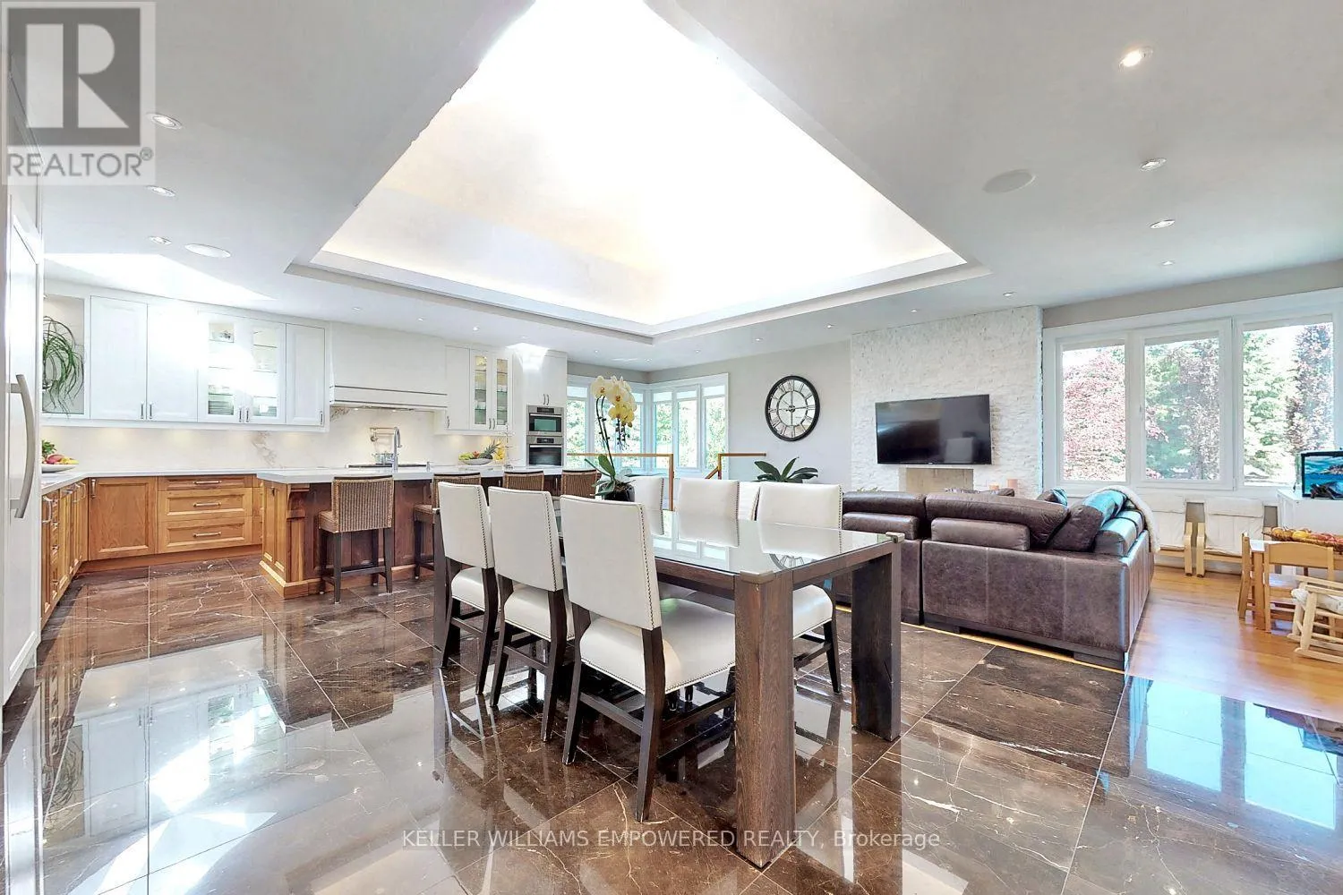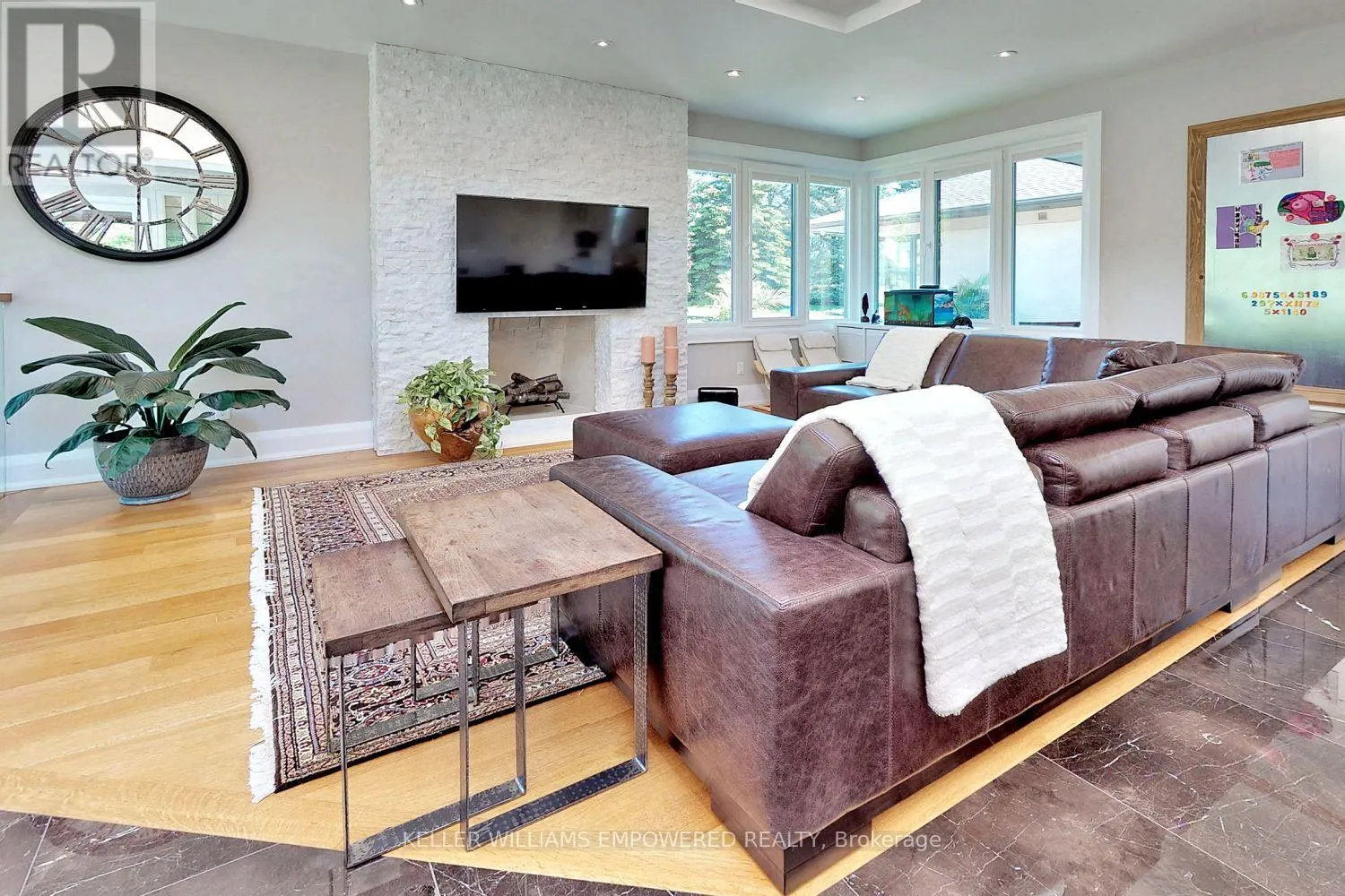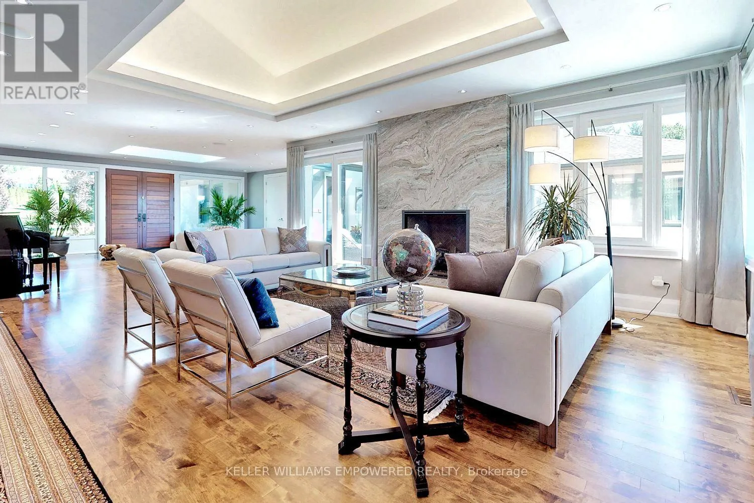 Cross Streets: Bathurst St & Elgin Mills Rd. ** Directions: West of Bathurst St & North of Elgin Mills Rd. A true resort-style estate that blends luxury living with year-round entertaining. Set on beautifully landscaped grounds with mature trees, granite walkways, and dramatic night lighting, this property offers complete privacy and sophistication from the moment you arrive. The outdoor oasis is a dream for both relaxation and entertaining, featuring an 18 x 38 foot saltwater pool with smart controls, waterfalls, a Baja ledge, and cabanas. A hot tub, outdoor shower, children's' play area, and multiple lounge spaces provide endless enjoyment. The cedar pavilion and fully equipped outdoor kitchen, complete with pizza oven, BBQ, refrigeration, freezer, and bar seating, make hosting effortless. Inside, cathedral ceilings, skylights, and expansive windows flood the home with natural light. The main living areas include a dramatic living and dining room with gas fireplace and custom built-ins, a chefs kitchen with heated floors, walnut cabinetry, marble countertops and Wolf/Miele appliances, opens to a comfortable family room with white rift cut oak floors. Five bedrooms on the upper level include a primary suite with spa bathroom, walk-in closet, and private balcony overlooking the pool. The walk-out lower level is designed for both leisure and extended living. It offers a recreation room, games room, second kitchen, full theatre with reclining seating, exercise or guest suite with salt sauna and spa area, plus ample storage. Additional highlights include a heated four-car garage with mezzanine, smart home systems, Sonos-integrated sound, triple-glazed windows, and extensive security features. This one-of-a-kind property offers the ultimate lifestyle, a private retreat that feels like a luxury resort yet provides all the comforts of home. (id:27476)