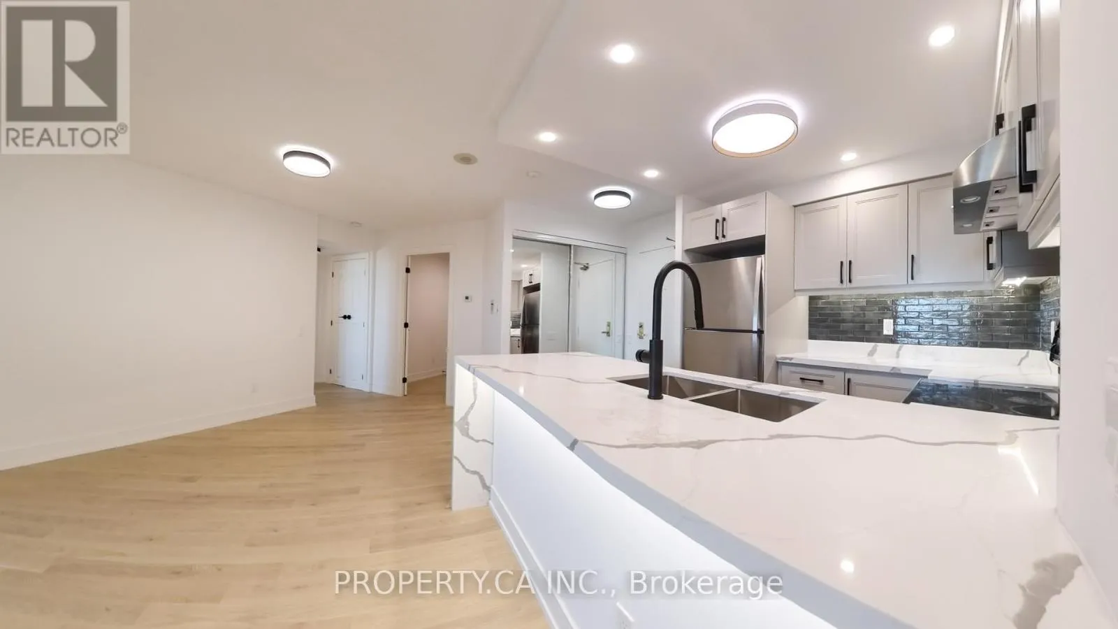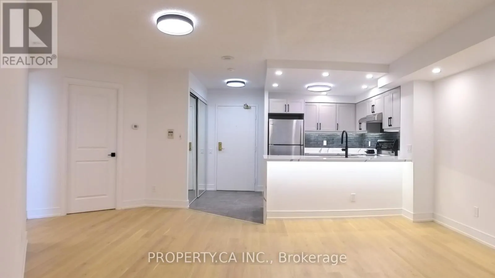 Bathurst & Steeles Newly renovated 1 bedroom + Den suite at the prestigious Eiffel Tower Condos by Menkes. Suite 714 at 5 Emerald Lane offers 755 sq. ft. of thoughtfully designed living space plus a large private balcony overlooking beautifully landscaped gardens. The enclosed den with a spacious closet functions perfectly as a second bedroom, home office, or nursery. Updates include a brand new bathroom, modern kitchen with stainless steel appliances, and hardwood flooring throughout. One underground parking space is included. This quiet gated community features 24-hour concierge and an array of amenities such as an outdoor pool, fitness centre, sauna, and party/multi-purpose room. Ideally located at Bathurst & Steeles, steps to TTC, close to Promenade Mall, Centrepoint Mall, grocery stores, restaurants, and with easy access to Highways 400, 401, and 407. Partially furnished - couch and dining table. (id:27476)