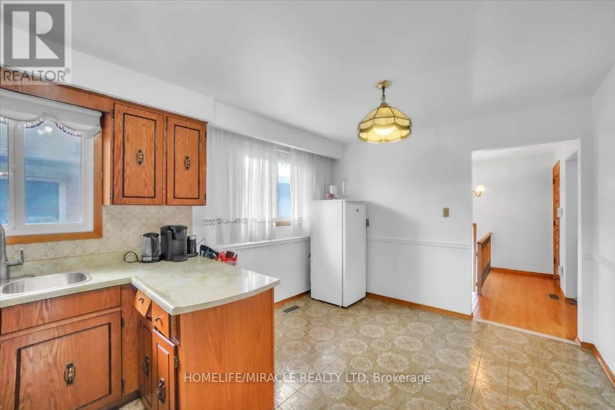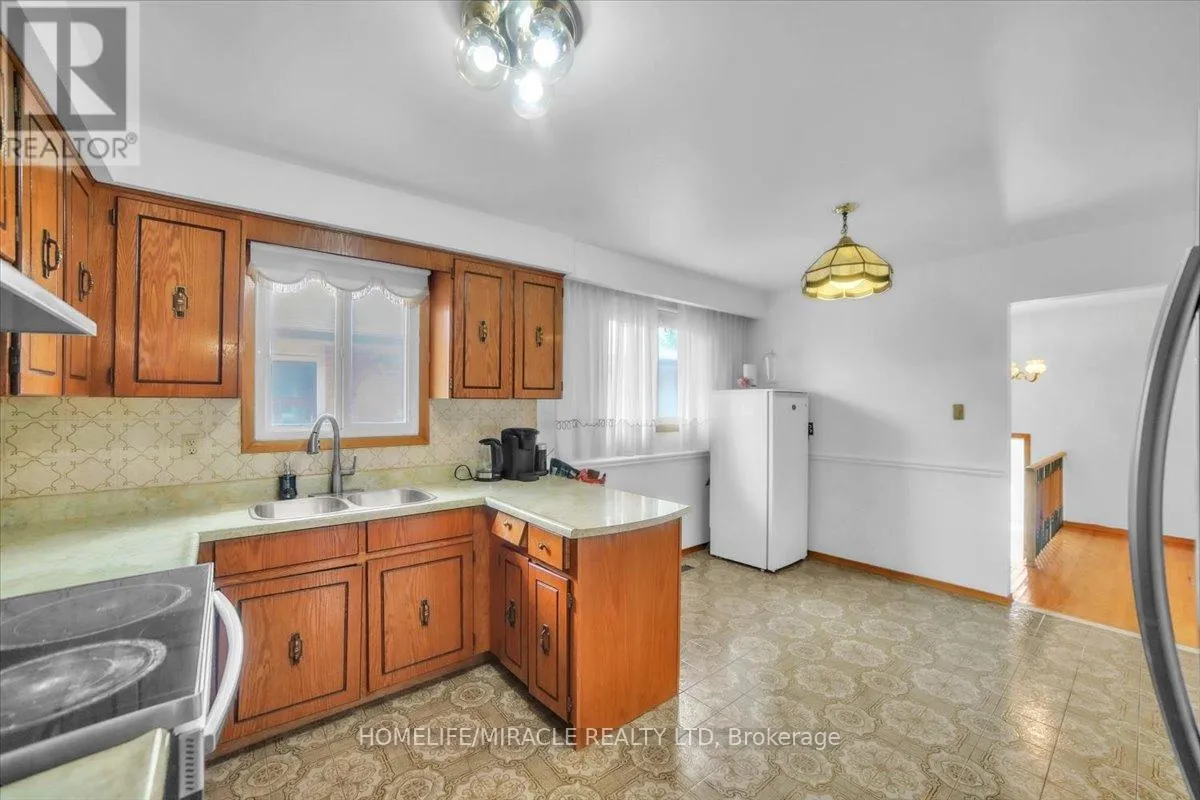 Martin Grove & Highway 7 Nestled on a quiet crescent in one of Vaughan's most sought-after neighborhoods, this spacious and sun-filled raised bungalow offers exceptional versatility for families, investors, or multigenerational living. The home features generous principal rooms, two full family-sized kitchens, and a functional open-concept layout with hardwood floors throughout. Enjoy walkouts from the living/dining room to a front balcony, and from the bright finished basement with above-grade windows to a covered sunroom and private backyard ideal for an in-law suite or rental potential. The wide lot boasts mature trees, a large driveway with no sidewalk, and a garage. Perfectly located close to top-rated schools, parks, shopping, transit, major highways, and the airport, this rare opportunity offers solid construction, abundant natural light, and incredible potential in a prime setting. (id:27476)