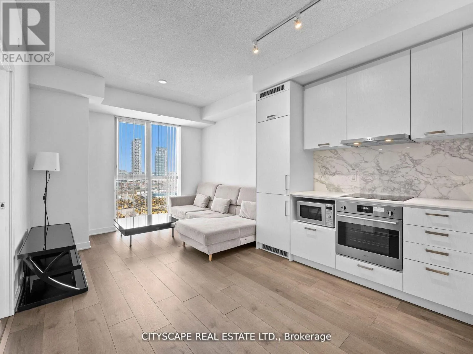 Hwy 7 & Jane St Stunning one-bedroom + den condo in the sought-after Mobilio Condos by Menkes, ideally situated near the Vaughan Metropolitan Centre (VMC) Transit Hub with easy access to the TTC Subway, Viva, and YRT. This bright North-facing unit boasts an open-concept layout with 9-ft ceilings, allowing natural light to fill the space. The versatile large den is perfect as a home office, guest room, or second bedroom. Enjoy a modern kitchen featuring built-in stainless steel appliances, quartz countertops, and sleek cabinetry, seamlessly blending style and functionality. Step out onto your private balcony and take in the stunning north views. Located in a new, high-end building, residents enjoy top-tier amenities, including a state-of-the-art gym, 24-hour concierge, guest suites, party room, TV & games lounge, theatre room, kids' playroom, outdoor space with BBQs, and bike storage. Prime Location: Minutes to VMC Subway Station, Hwy 400 & 407, and public transit Close to York University, Vaughan Mills Mall, IKEA, Canada's Wonderland & Vaughan Smart Hospital Surrounded by restaurants, retail stores, banks, and everyday conveniences Property is vacant and ready for the next family to move in! Don't miss this incredible opportunity to own a luxury condo in the heart of Vaughan! **EXTRAS** Built-in fridge, stove, dishwasher, and range hood Microwave, washer & dryer All existing light fixtures and blinds (id:27476)