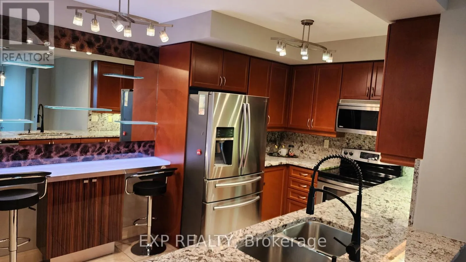Cross Streets: Bathurst/Centre. ** Directions: West of Promenade Mall. Welcome to The Luxury Residences of Promenade Park in the Heart of Thornhill! This Beautiful & Bright Two-Bedroom Plus Den, Two-Bathroom Suite Features a Fantastic Layout and One of the Largest Kitchens in the Building. $$$ Spent on Premium Upgrades Including Hardwood Flooring, Crown Moulding, Extended Gourmet Kitchen Cabinetry with Undercabinet Lighting, High-End Stainless Steel Appliances, Granite Countertops & Backsplash, Custom-Built Wet Bar, Frameless Glass Shower, Custom Closet Organizers, Motorized Blinds, and So Much More! Fall in Love with the Outstanding Amenities, Including an Indoor Pool, Sauna, Games Room, Party Room, Theatre, and Fully Equipped Gym! (id:27476)