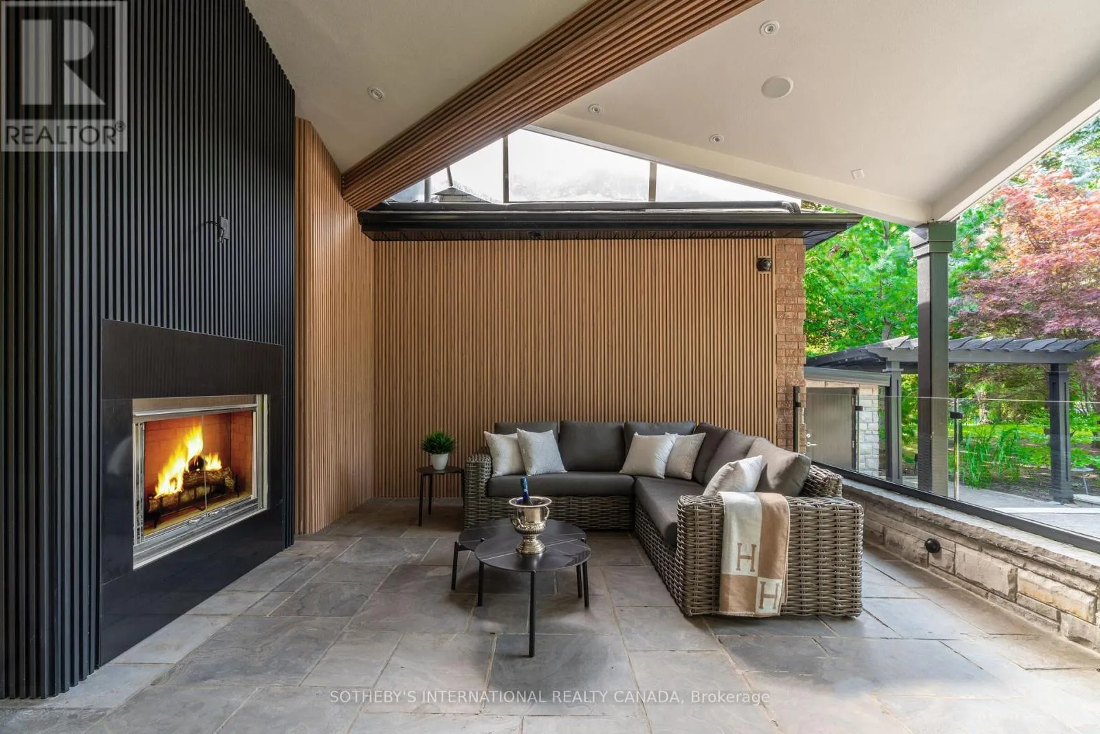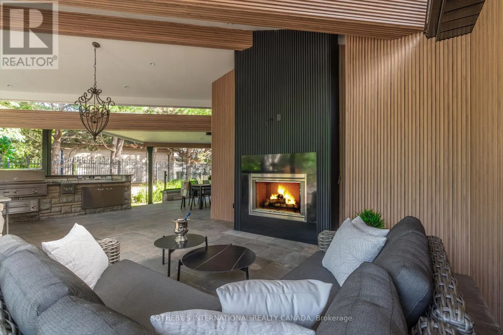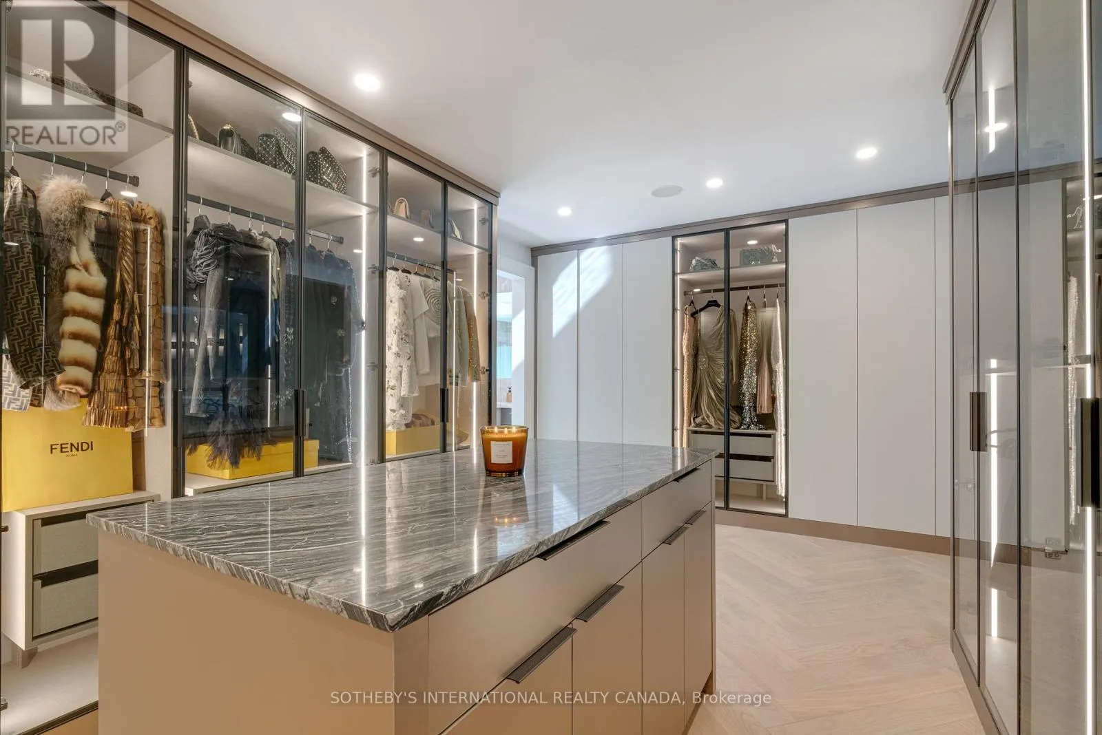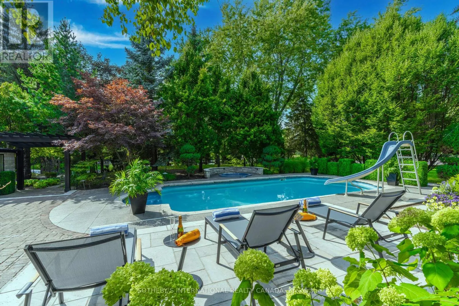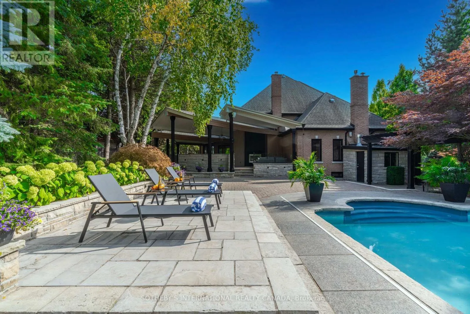 Cross Streets: Langstaff and Pine Valley. ** Directions: East of Pine Valley, north of Langstaff first turn west off Balding. Fully renovated, this 5+1-bedroom, 8-bathroom transitional estate backs onto holes 6 and 7 of the prestigious National Golf Course in Woodbridge. Set on a private 1+ acre lot with dual-gated entrances, intricate stonework, professional landscape lighting, mature trees, and striking black glass doors at both the entrance and garages, the property blends quiet elegance with secure living. Inside, refined craftsmanship is showcased through slab stone finishes, marble fireplaces, and a grand reception entrance with a 3-storey floating staircase. The residence offers: A primary suite with a Fendi Casa inspired walk-in closet and spa-like bath, ensuite baths and built-in closets in every upper-level bedroom; 3+1 kitchens and 2 laundry rooms for ultimate convenience; a wellness area with heated floors, change room, powder room and contemporary spa-shower plus direct pool access. Media and games rooms, sauna, home gym (or nanny's suite), and a dedicated space for a customized panic room. The resort-style backyard is designed for entertaining with an inground pool, covered loggia with outdoor kitchen and fireplace, dining and seating areas, and open, park-like grounds perfect for growing an organic vegetable garden or children's play. Parking for 15 vehicles includes a 3-car garage with lift-ready capacity. Move-in ready before Christmas, this estate combines contemporary luxury, privacy, and security - perfect for the discerning buyer. *Some pictures are virtually furnished. (id:27476)