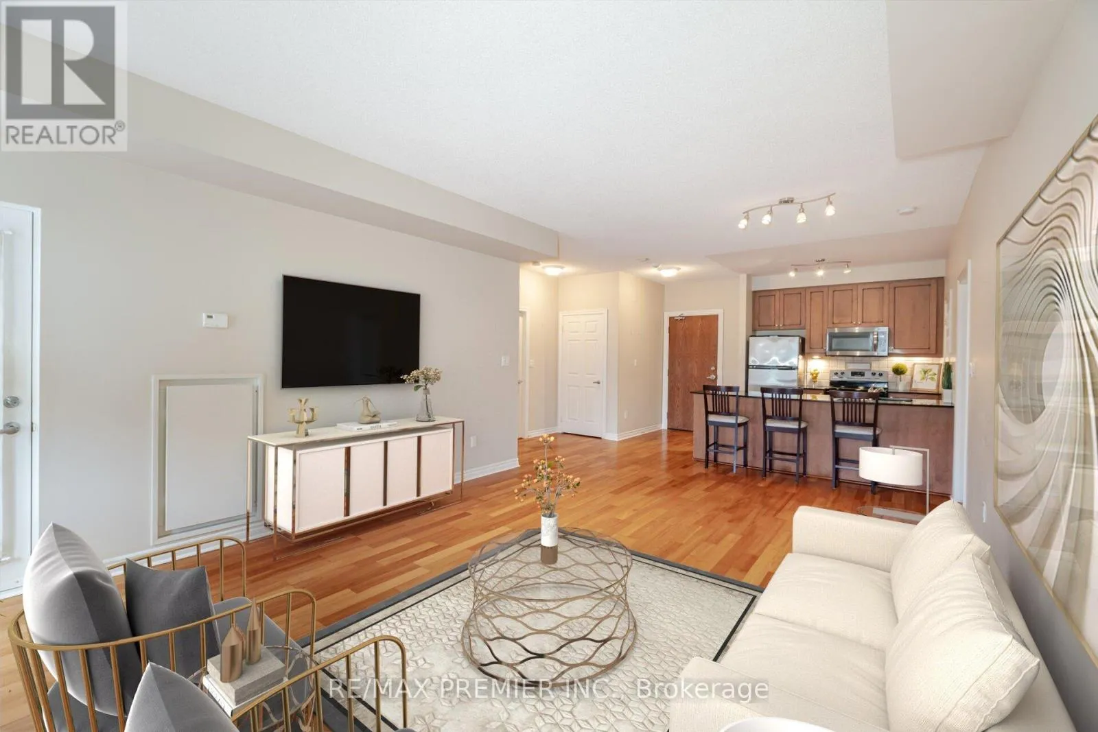 Cross Streets: Pinevalley & Hwy #7. ** Directions: West of Pinevalley, North of Hwy 7. Large 2 Bedroom + 2 Full Bathrooms in the Heart of Woodbridge! Boutique Style Condo. 1045 sq.ft. Open Concept Living Space Perfect for Entertaining. 9ft. Ceilings & Large Windows for Natural Lighting. Fully Equipped Kitchen with Granite Countertops, Breakfast Bar, Stainless Steele Appliances, and Plenty of Cupboards. Only 3 Units Down from Elevators. 1 Underground Parking Spot, Locker and Plenty of Visitation Parking. Building Amenities Include Gym, Party Room for Friends/Family Gatherings. Enjoy the Serene Environment of the Beautiful Landscaped Gardens with Private Courtyard Garden, Terrace & Pergola Seating Area! Just Steps to Medical Suites. Close to Restaurants, Shopping, Parks, Schools, Recreational Facilities. Mins. to Hwy 7/400/407 and Public Transit. (id:27476)