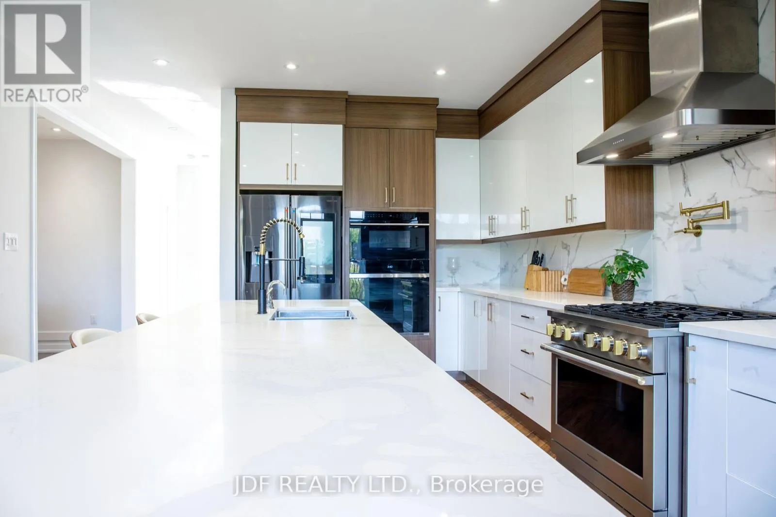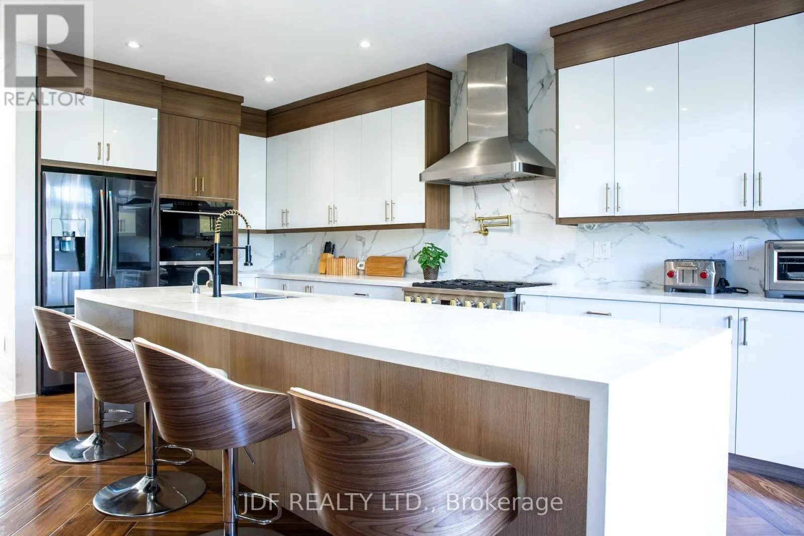 Cross Streets: Major Mackenzie Dr / Garnet Williams Way. ** Directions: Major Mackenzie / Garnet Williams Way. Beautiful fully upgraded 4 + 2 home in prestigious Kleinburg, has a touch of class, luxury & privacy that welcomes you home. This home has a beautifully finished in-law suite/walk-out from the basement with a living room and kitchen above grade, enjoying the quietness and privacy of the ravine. The chef's kitchen with a gas stove, double oven, and a 10-foot island on the main floor is perfect for family events. The open concept of the living/dining room features a gas fireplace overlooking the ravine, creating a cozy, quiet, private gathering. Beautiful hardwood floor, oak stairs, and pot lights display the quality of the upgrades that make this home unique. The primary master bedroom with his/her walk-in closet, a soaker tub, double sink, a glass-enclosed shower, windows facing the ravine, completely disconnects from the outside city rush!! Bedrooms 2 & 3 are connected with a shared 4-piece bathroom, and walk-in separately from each room. Bedroom 4 comes with a walk-in 3-piece bathroom. All bedrooms have built-in closets. This home location is walking distance to 3 elementary schools (public, catholic & Montessori), making this task easier for parents. Just minutes away from the new Longo's plaza for shopping and a 15-minute drive to Toronto Pearson, a strategic location to save time can not be better!!! (id:27476)