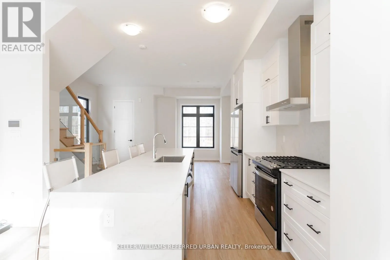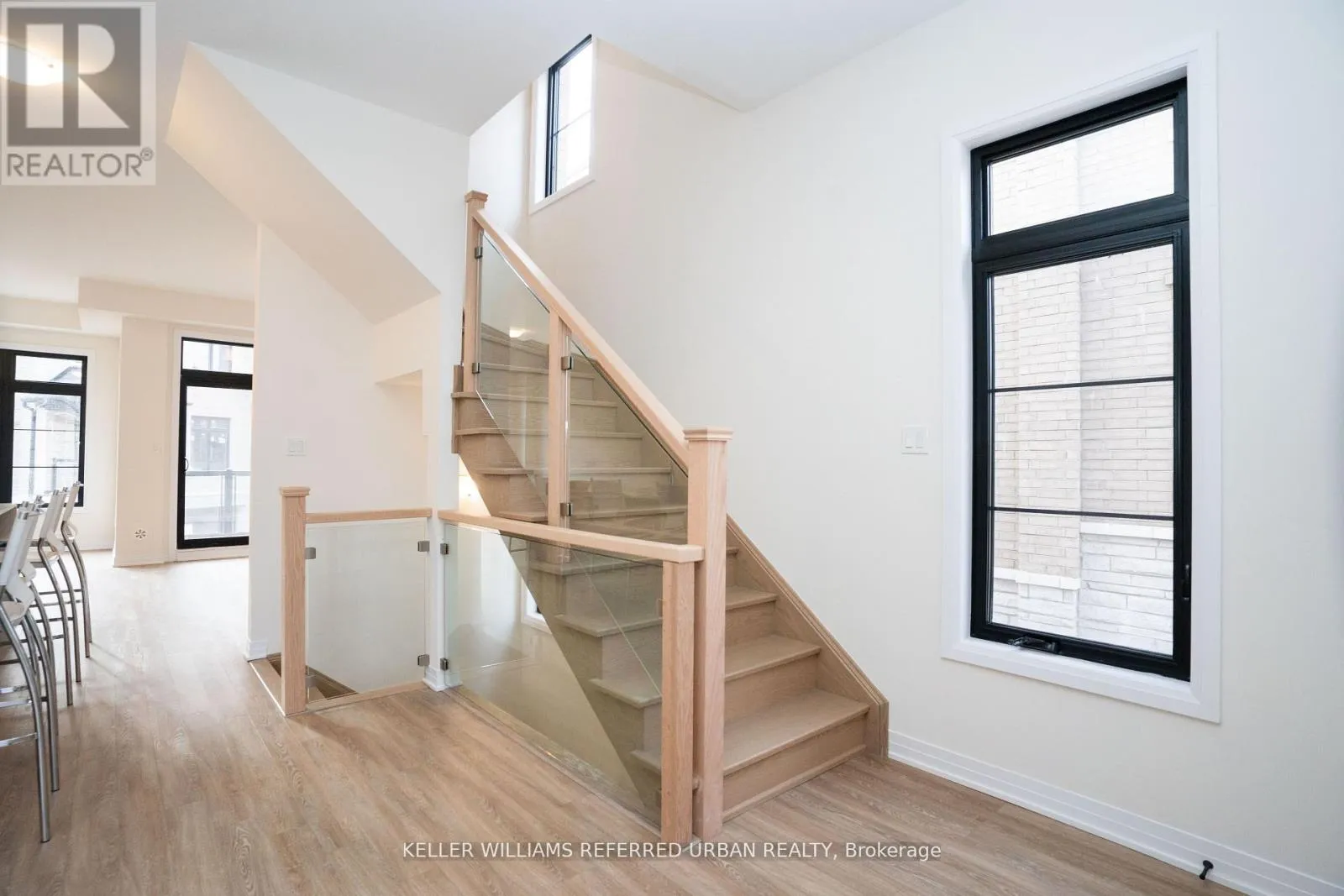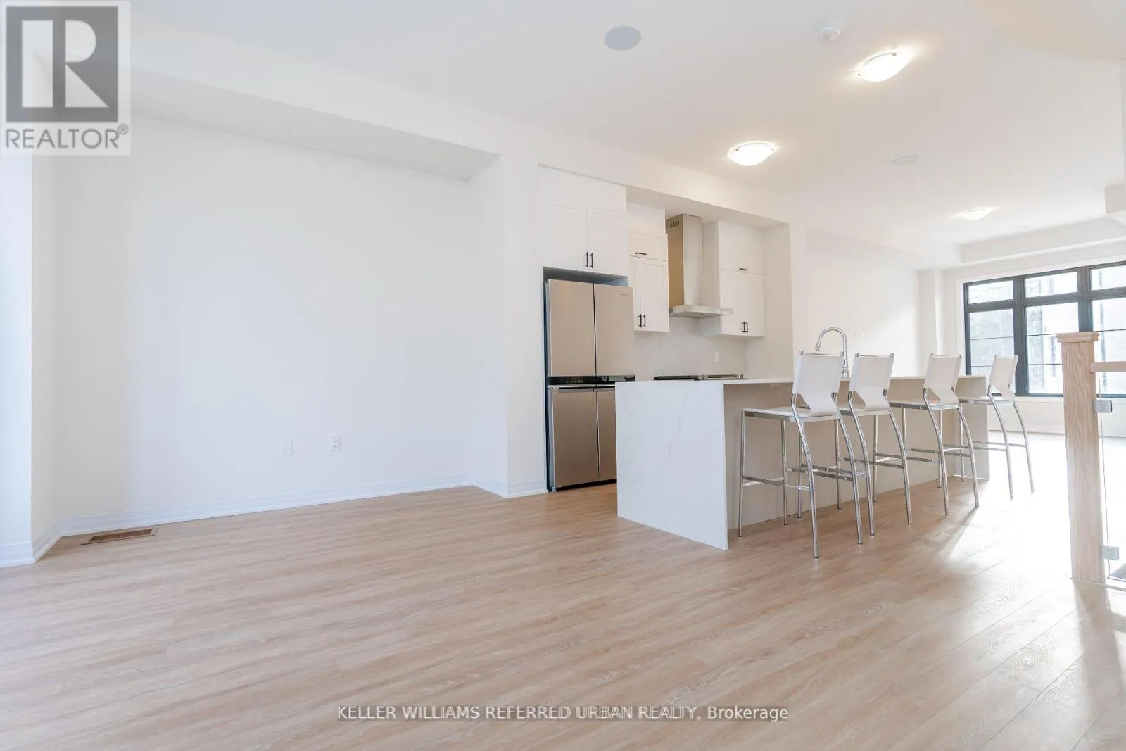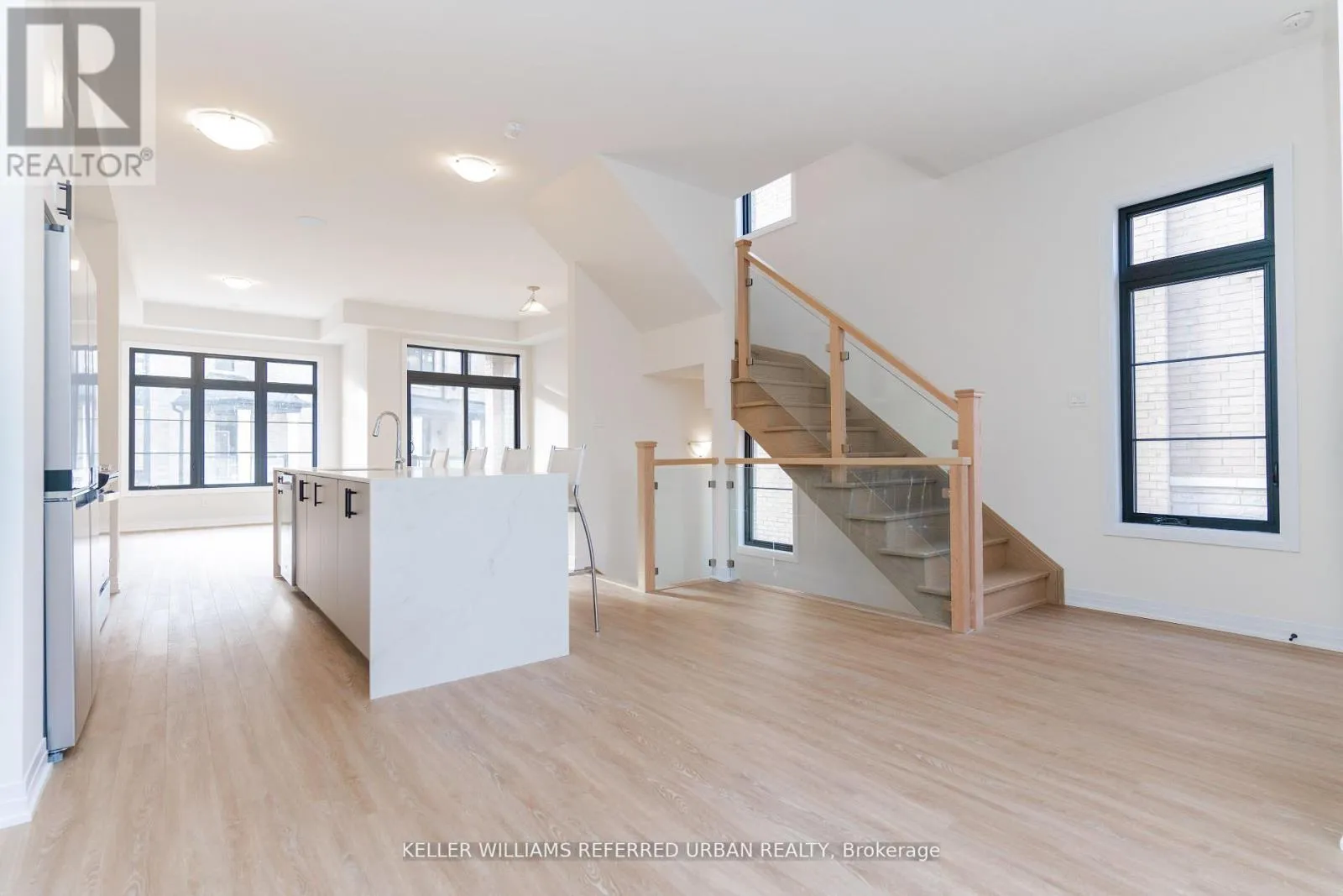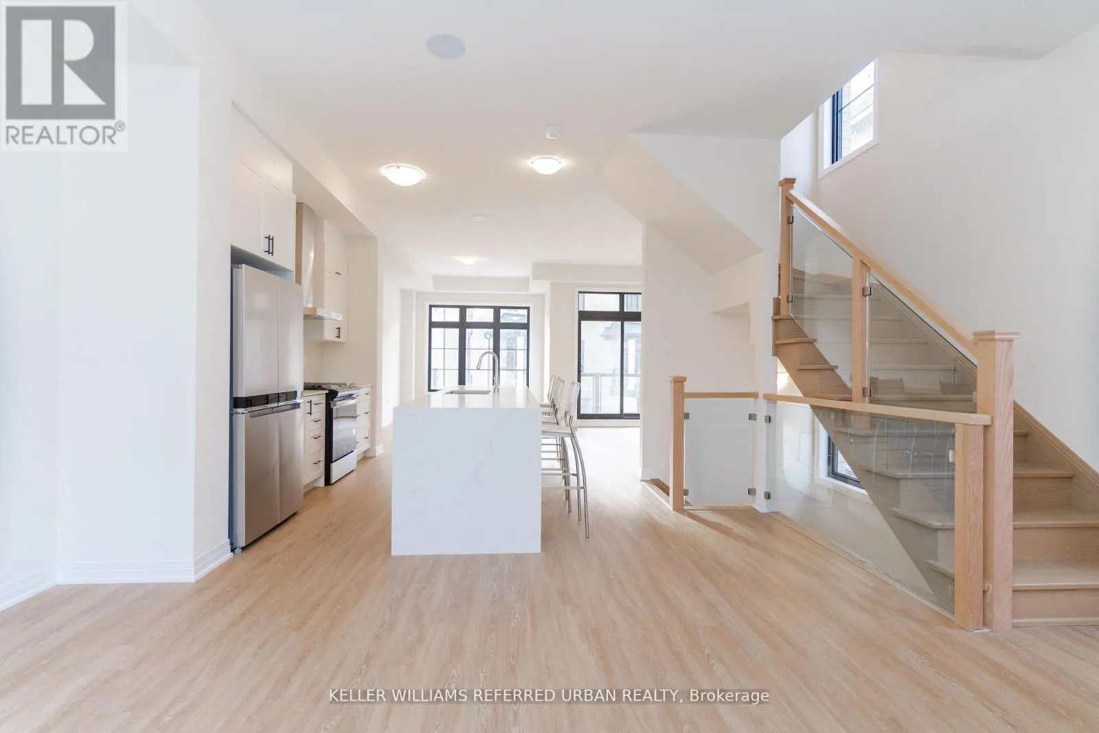 Major Mackenzie / Pine Valley Luxury Townhome in Prestigious Vellore Woods! This stunning 3+1 bedroom, 4-bathroom townhome offers approximately 2,000 sq. ft. of thoughtfully designed living space, perfect for modern family living and entertaining. Enjoy the convenience of a double car garage and the elegance of upgraded glass railings that enhance the homes contemporary appeal. The ground level features a bright and versatile den or home office with large windows, a private powder room, and a closet-ideal for guests or multigenerational living. You'll also find a full laundry room with a utility sink and double closet, plus direct garage access. Upstairs, the open-concept main floor impresses with a chef-inspired kitchen boasting an oversized island, breakfast bar, and stainless steel appliances. The spacious dining area flows seamlessly into the living room, which walks out to a private balcony perfect for outdoor relaxation. Retreat to the luxurious primary suite with a walk-in closet and a spa-like 5-piece ensuite. **EXTRAS** All utilities are included except cable/internet. (id:27476)