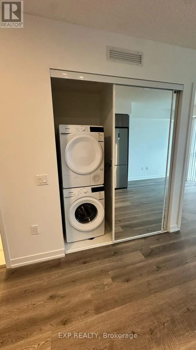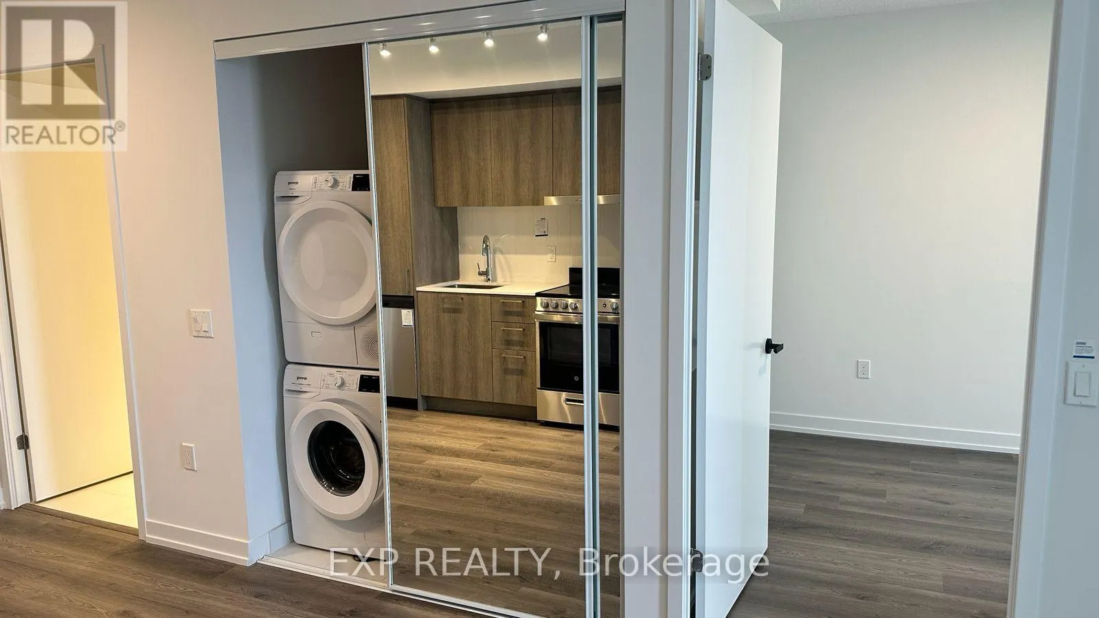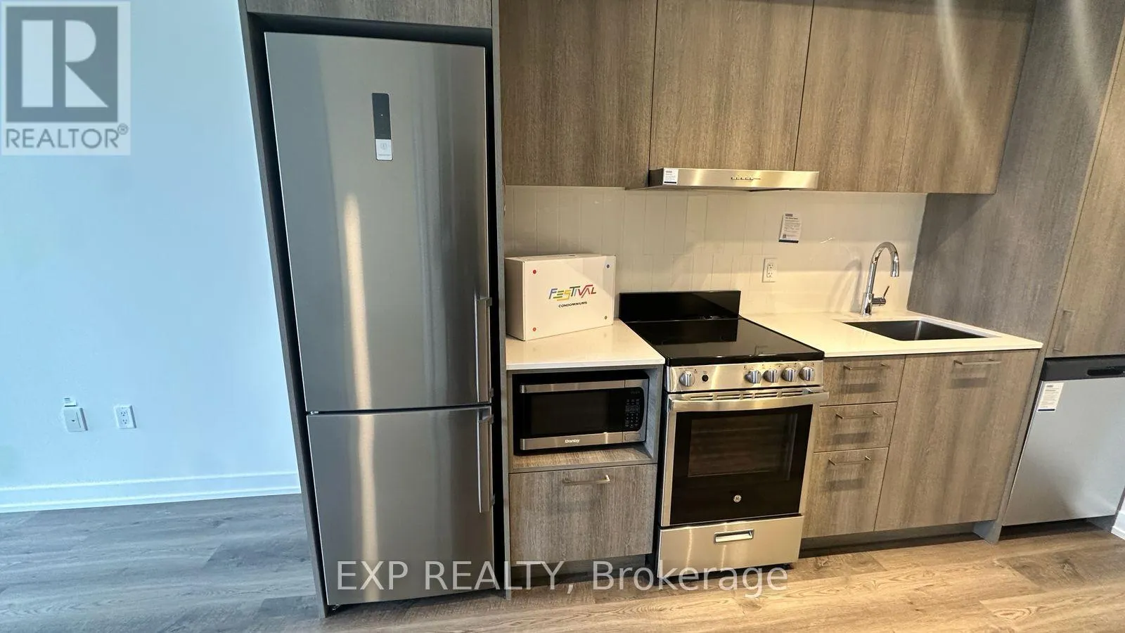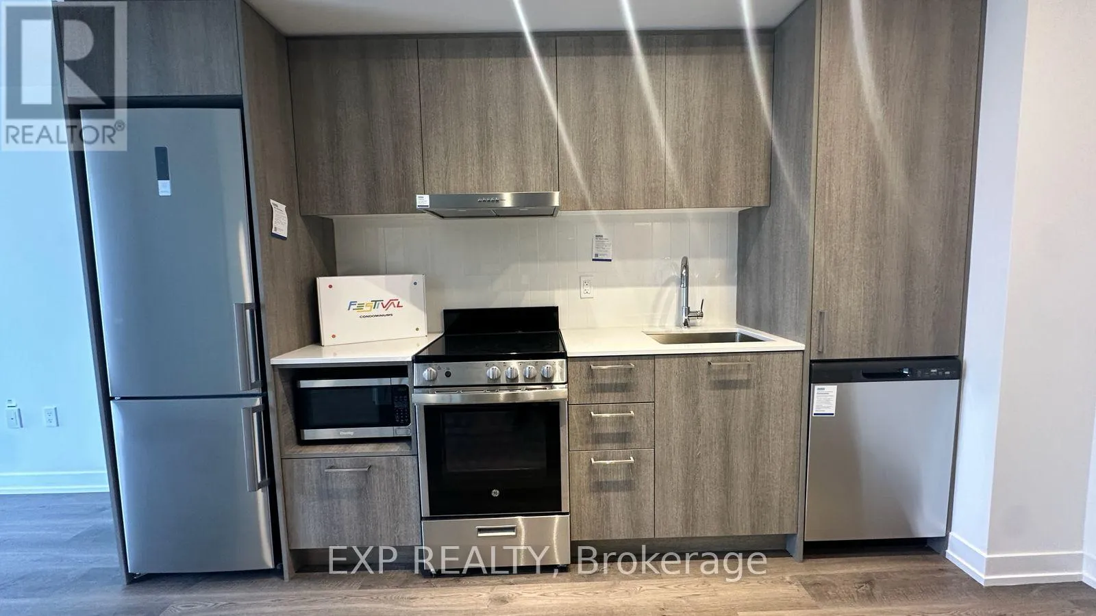 Highway 7 & Interchange Way Step into modern elegance at 195 Commerce St, part of the Festival Condos Signature Collection. This beautifully designed 1-bedroom, 1-bath residence features 9-ft ceilings, an expansive South-facing balcony with unobstructed city views, and contemporary finishes that bring sophistication to every detail. The open-concept living and dining area is finished with laminate wood flooring, solid-core entry doors, and coordinated baseboards, while the chef-inspired kitchen boasts custom cabinetry with pantry, quartz countertops, ceramic backsplash, stainless steel appliances, and sleek designer lighting. The spa-like bathroom offers a quartz vanity, soaker tub, frameless glass shower enclosure, and premium fixtures, complemented by in-suite laundry with an Energy Star washer and dryer for everyday convenience. Residents of Festival Condos enjoy 24-hour concierge service, a stylish two-storey lobby, fitness centre, library, party room, landscaped outdoor areas, and secure bicycle storage. Perfect for first-time buyers, young professionals, or savvy investors, this suite combines modern design, convenience, and long-term value in a prime Vaughan location. Just steps to the Vaughan Metropolitan Centre with direct subway access, and minutes to Highways 400 & 407, York University, Vaughan Mills, and Canadas Wonderland, this is a truly connected community offering the best of urban living. (id:27476)