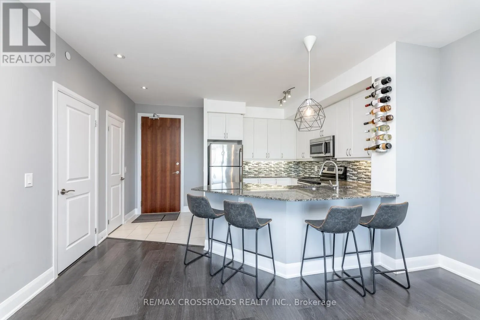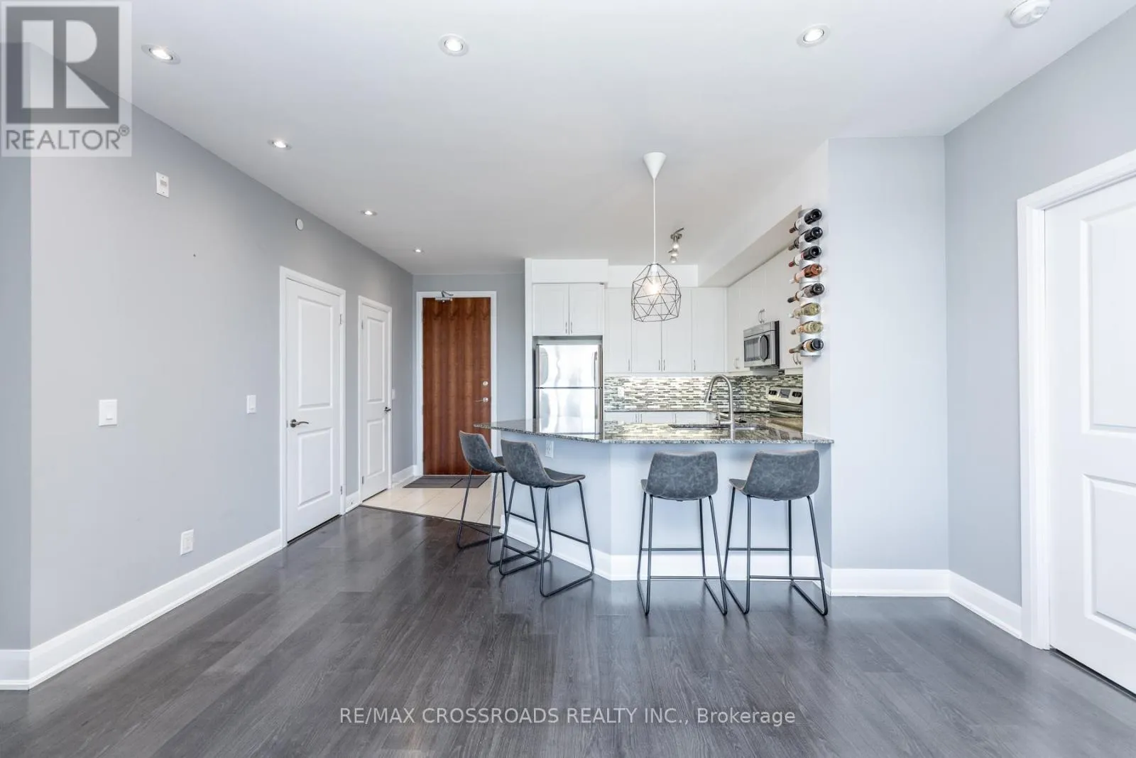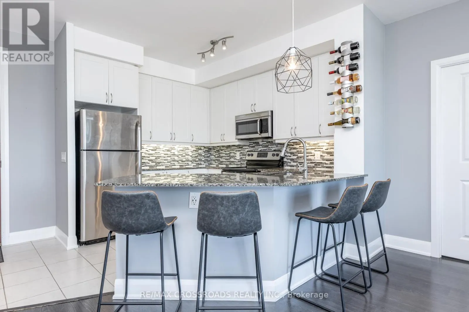 Highway 7/Pinevalley Experience modern elegance in this beautifully finished 2-bedroom, 2 bath unit with two owned side-by-side parking spaces and a locker. Featuring an open-concept layout with engineered hardwood flooring, a chef-inspired kitchen with stone countertops and under-mount lighting, and a bright living area that opens to a private patio overlooking the park and green space. The primary bedroom offers a 3-piece ensuite, walk-in closet, and private balcony. Enjoy resort-style amenities including party rooms, a fitness centre, BBQ area, guest suites, and visitor parking. Conveniently located near schools, transit, and everyday essentials, this residence blends sophistication, comfort, and exceptional value including income potential from an extra parking spot that can rent for $200+ monthly. Priced to sell! DO NOT MISS!! (id:27476)