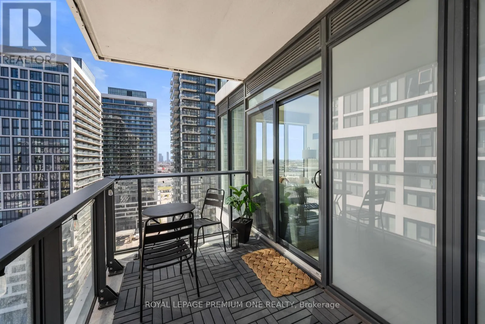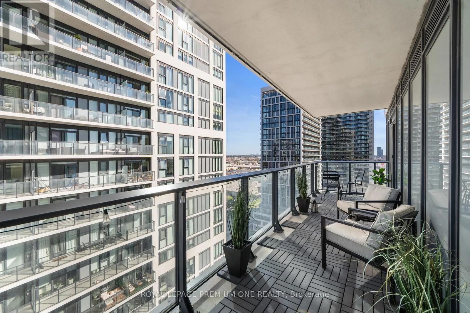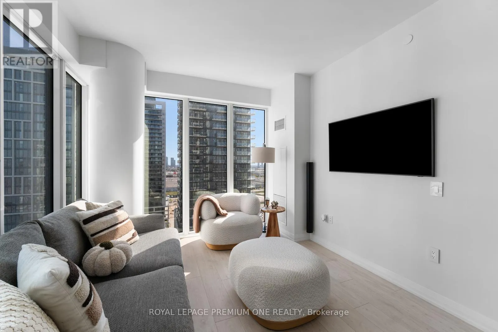 JANE & RUTHERFORD Welcome to Charisma West Tower! This stunning 2 bedroom, 2 bathroom corner suite with parking and locker offers 875 sq. ft. of interior living space plus a 200 sq. ft. wraparound balcony with bright south-east exposure. Featuring a highly sought-after split bedroom layout, soaring 9 ft. ceilings, premium flooring, and countless upgrades, this unit has it all. The sleek modern kitchen boasts a centre island, quartz countertops, designer backsplash, upgraded moulding, and full-size stainless steel appliances, while both bedrooms are outfitted with custom cabinetry closets. The spacious open-concept living and dining area is filled with natural light, creating a warm and inviting atmosphere. Residents enjoy access to exceptional building amenities including a 24-hour concierge, WiFi lounge, and 7th floor wellness centre. Perfectly located steps from Vaughan Mills, TTC subway, VMC Bus Terminal, Viva Rapid Transit, Hwy 400/407, Cortellucci Vaughan Hospital, and Canadas Wonderland, this bright and beautifully upgraded unit is a must-see in a high-demand community! (id:27476)