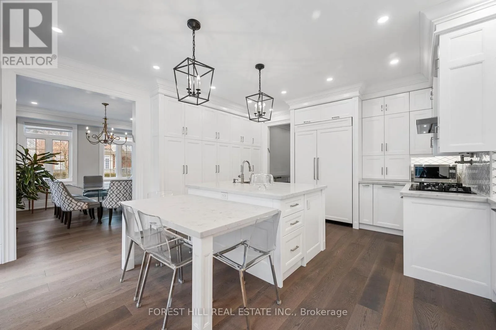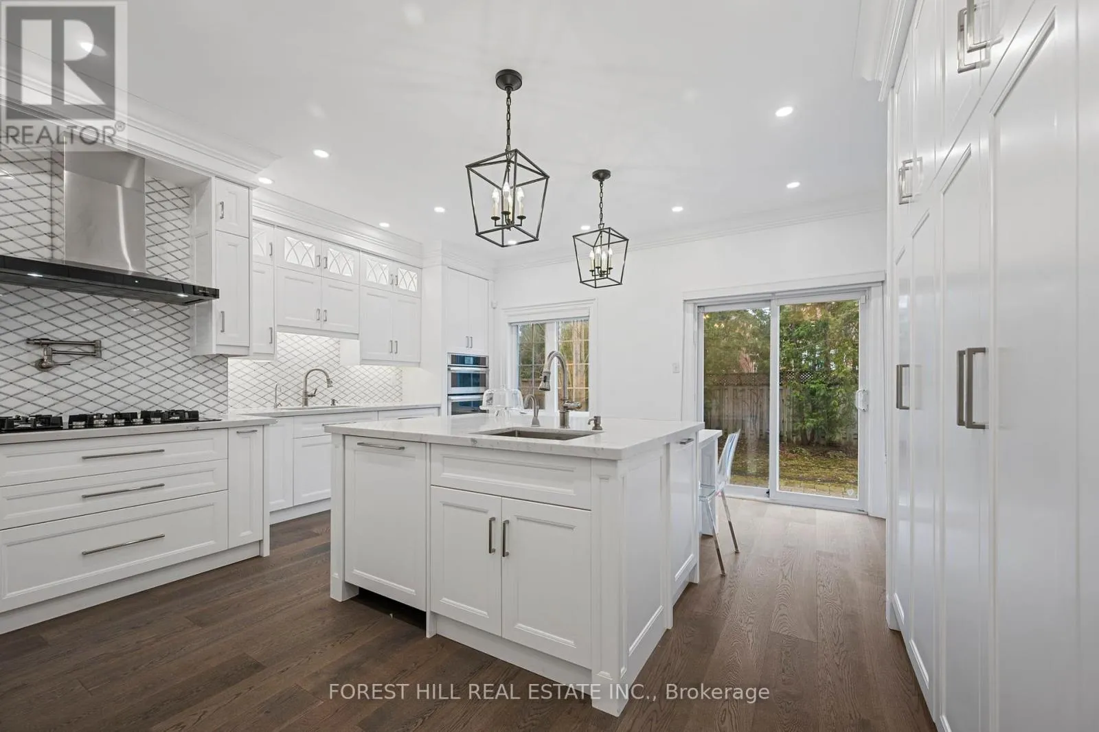 Bathurst & Hwy 7 Stunning Designer Home on Premium Corner Lot in Thornhill Woods! Welcome to this highly desirable, detached family home nestled on a rare, oversized corner lot in the sought-after Thornhill Woods school zone. Thoughtfully upgraded with luxurious finishes and designer details throughout, this spacious residence is ideal for modern family living and elegant entertaining. The main floor features a bright, open-concept layout with formal living and dining areas, custom millwork home office, and a show-stopping chefs kitchen. Enjoy high-end stainless steel appliances, an oversized centre island with built-in table, custom cabinetry with built-in pantry, and stunning finishes that elevate every detail. Upstairs, discover five generous bedrooms, including a serene primary suite complete with walk-in closet and spa-inspired ensuite bath your own private retreat. The fully finished basement offers incredible versatility with a separate entrance, full kitchen, open-concept recreation space, and two additional bedrooms perfect for in-laws, extended family, or potential rental income. Step outside to enjoy your own private oasis: a beautifully landscaped, fully fenced backyard featuring mature trees, lush gardens, a spacious patio, and ample room to relax or entertain. Just steps to synagogues, top-rated schools, public transit, parks, trails, and more - this exceptional home is a rare find in one of Vaughan's most prestigious neighbourhoods. Truly turnkey with exquisite custom upgrades a perfect family home in a prime location! (id:27476)