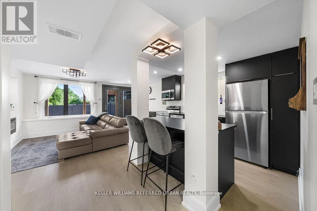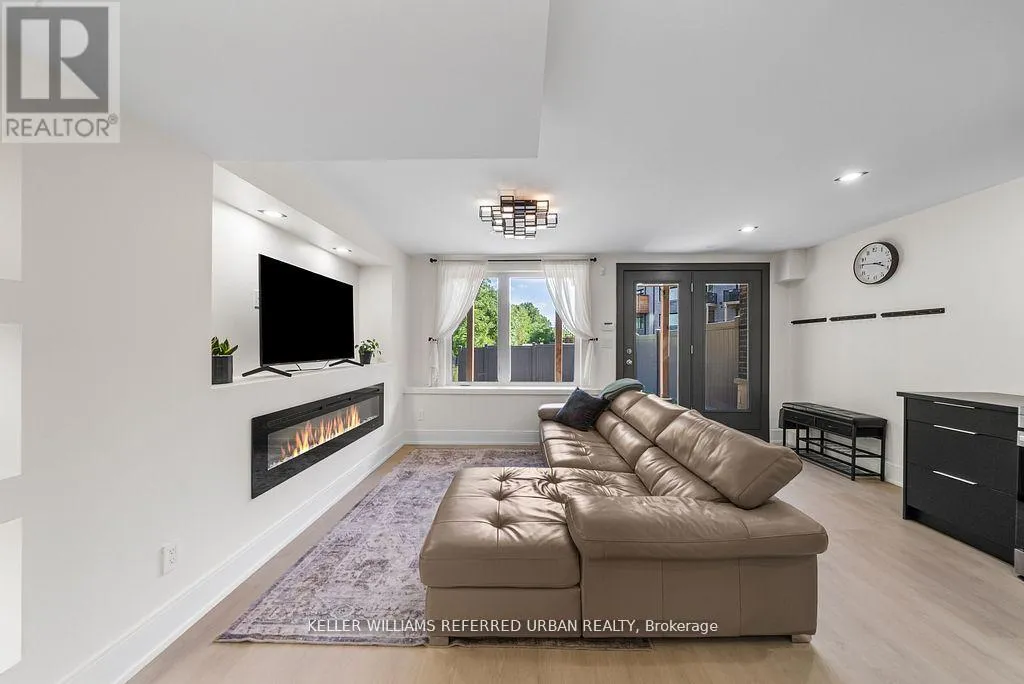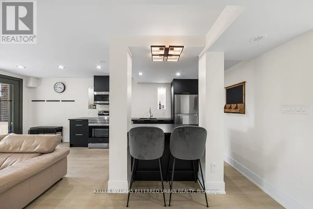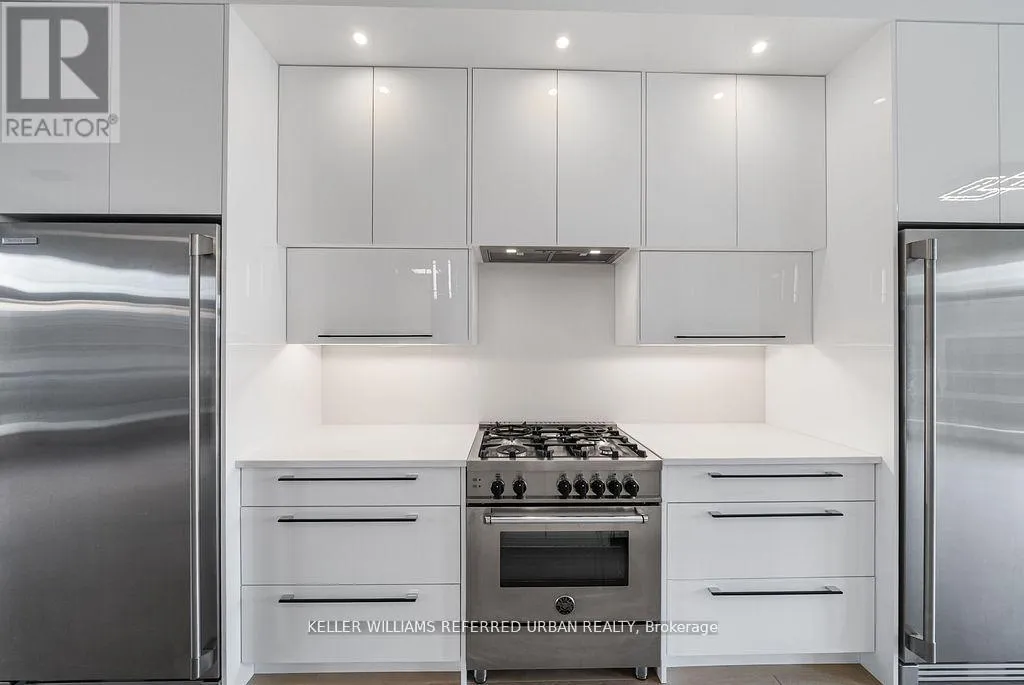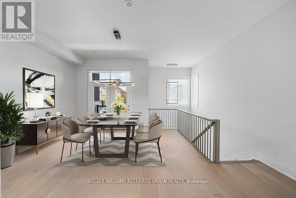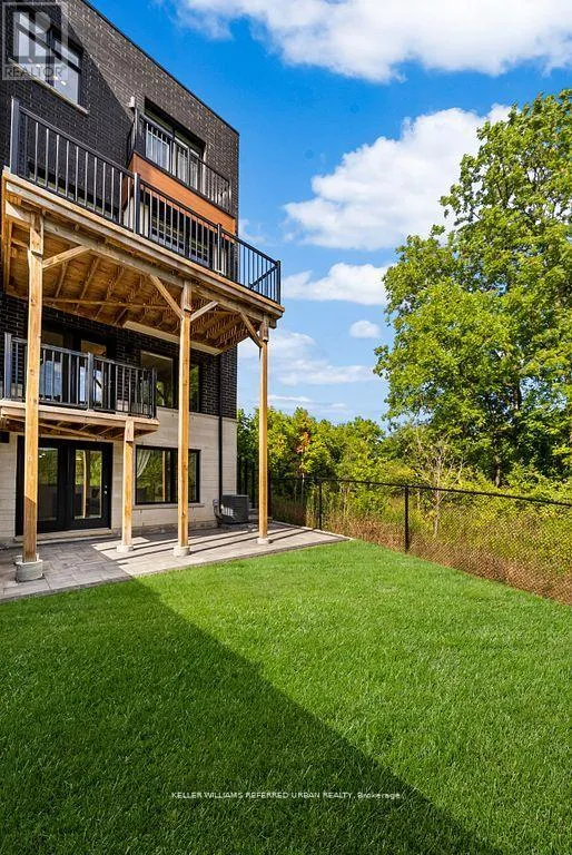 Bathurt/Rutherford **INCLUDES INCOME GENERATING TWO STOREY BASEMENT APARTMENT ** The Designers Own Dream Home in Patterson. Set on a rare 33' ravine lot with a walk-out basement and an extra-wide 21 interior, this end-unit townhome is unlike anything else in Patterson. The two-storey basement apartment, complete with laundry, offers versatility perfect for multi-generational living or as a rental suite generating approximately $2,700/month. Envisioned by a renowned interior designer, every detail has been thoughtfully curated to surpass model home standards. Step inside to soaring 10 ceilings on the main floor and 9 on the second, smooth ceilings throughout, and rich 5" hardwood paired with 7" modern baseboards and shaker doors. The kitchen is a true showpiece, anchored by a 10' island with dual waterfall edges, quartz counters, walk-in pantry, under-cabinet lighting, and a window seat that captures ravine views.The primary suite offers a retreat-like feel with a custom walk-in closet and spa ensuite featuring a standalone tub, quartz niches, sleek skirted one-piece toilets, and upgraded fixtures. Outdoors, professional landscaping, interlock walkways, private side patio with backyard access, extended deck, multiple patios, and vinyl fencing create a private oasis. Added conveniences include dual laundry rooms, CAT5 wiring, BBQ gas line, and extra parking.This is more than a home it's a statement of style, function, and luxury living. *Note photos are virtually staged. (id:27476)