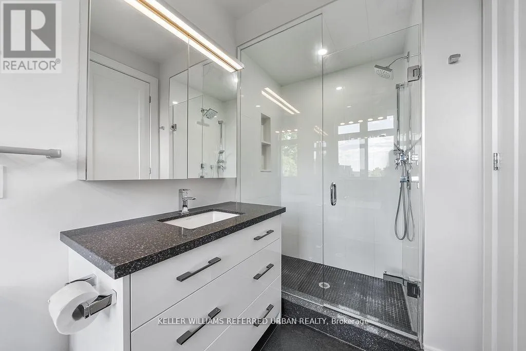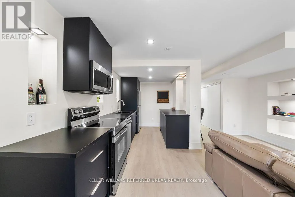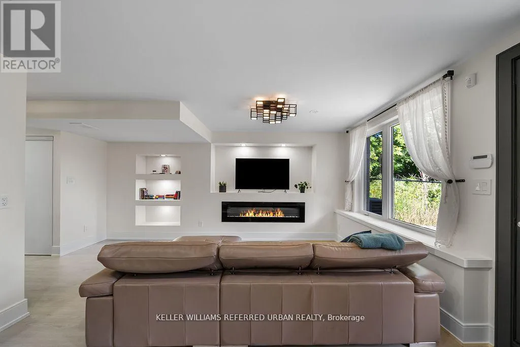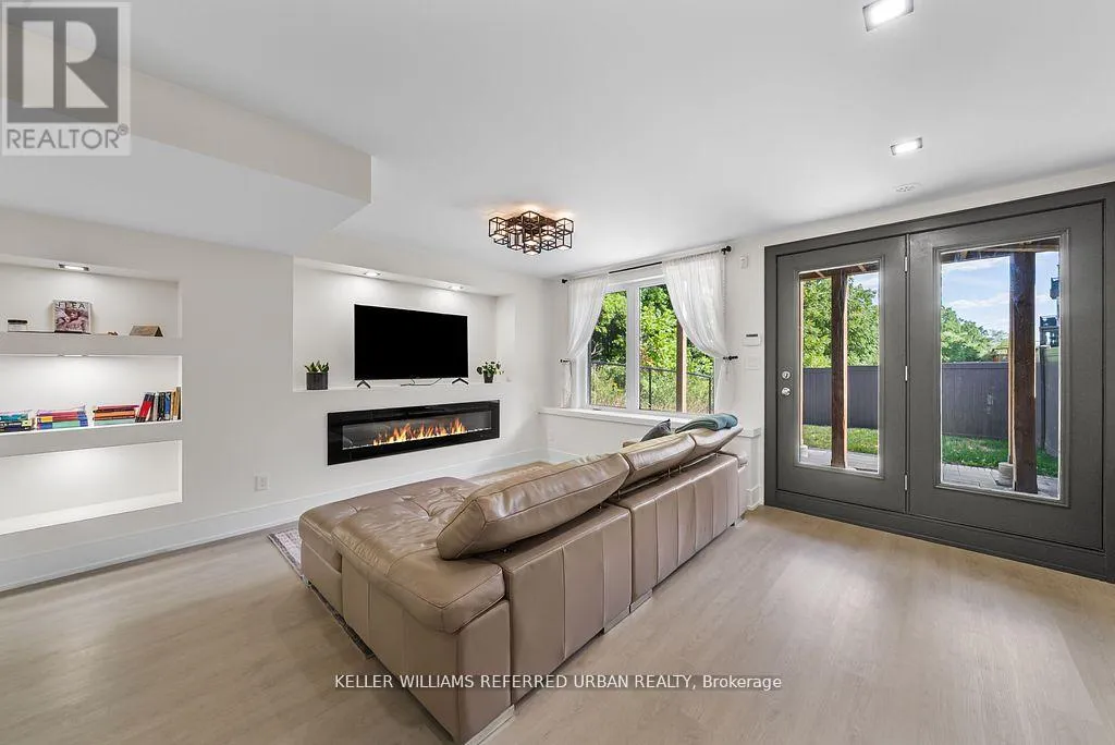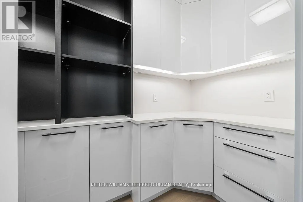 Bathurt/Rutherford **INCLUDES INCOME GENERATING TWO STOREY BASEMENT APARTMENT ** The Designers Own Dream Home in Patterson. Set on a rare 33' ravine lot with a walk-out basement and an extra-wide 21 interior, this end-unit townhome is unlike anything else in Patterson. The two-storey basement apartment, complete with laundry, offers versatility perfect for multi-generational living or as a rental suite generating approximately $2,700/month. Envisioned by a renowned interior designer, every detail has been thoughtfully curated to surpass model home standards. Step inside to soaring 10 ceilings on the main floor and 9 on the second, smooth ceilings throughout, and rich 5" hardwood paired with 7" modern baseboards and shaker doors. The kitchen is a true showpiece, anchored by a 10' island with dual waterfall edges, quartz counters, walk-in pantry, under-cabinet lighting, and a window seat that captures ravine views.The primary suite offers a retreat-like feel with a custom walk-in closet and spa ensuite featuring a standalone tub, quartz niches, sleek skirted one-piece toilets, and upgraded fixtures. Outdoors, professional landscaping, interlock walkways, private side patio with backyard access, extended deck, multiple patios, and vinyl fencing create a private oasis. Added conveniences include dual laundry rooms, CAT5 wiring, BBQ gas line, and extra parking.This is more than a home it's a statement of style, function, and luxury living. *Note photos are virtually staged. (id:27476)