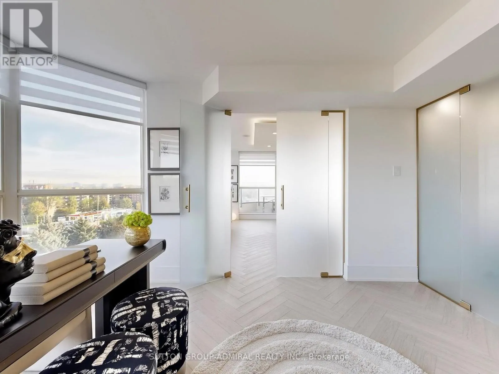 Cross Streets: Yonge/Clark. ** Directions: corner. Exceptional Corner Unit Fully Renovated with Premium Finishes Discover this rare opportunity to own a stunning 1,855 sq ft corner unit that combines luxury living with thoughtful design. Key Features Spacious Layout: 2+1 bedrooms, 2 full bathrooms. Prime Location, Corner unit with unobstructed views and abundant natural light. Premium Finishes, Elegant herringbone vinyl flooring, sophisticated wood paneling, and Italian porcelain tile in washrooms. Open-Concept Oversized living and dining area perfect for entertaining Gourmet Kitchen, Modern design featuring porcelain countertops, matching backsplash, and brand-new stainless steel appliances. Master Suite, Generously sized with custom walk-in closet and spa-inspired ensuite bathroom, Built-in closets and additional locker room for maximum organization. Design Elements Large windows with stylish zebra blinds maximize natural light Smooth illuminated floating ceilings with pot lighting create elegant ambiance, Private balcony for outdoor relaxation, Every detail carefully curated with top-quality materials and finishes, Building Amenities Concierge Services: 24-hour front desk support, Recreation, Indoor pool, spa facilities, and fully equipped fitness center, Dedicated party and game rooms for residents, Newly renovated lobby and elevator systems Convenience: 2 parking spaces included Why This Property Stands Out This meticulously renovated home represents a rare find in today's market combining premium location, luxury finishes, and exceptional building amenities. The thoughtful design maximizes both space and natural light, creating an inviting atmosphere perfect for modern living. Perfectly located with top-rated schools, parks, shopping, and community amenities nearby. Schedule your private viewing today to experience this exceptional property firsthand. (id:27476)