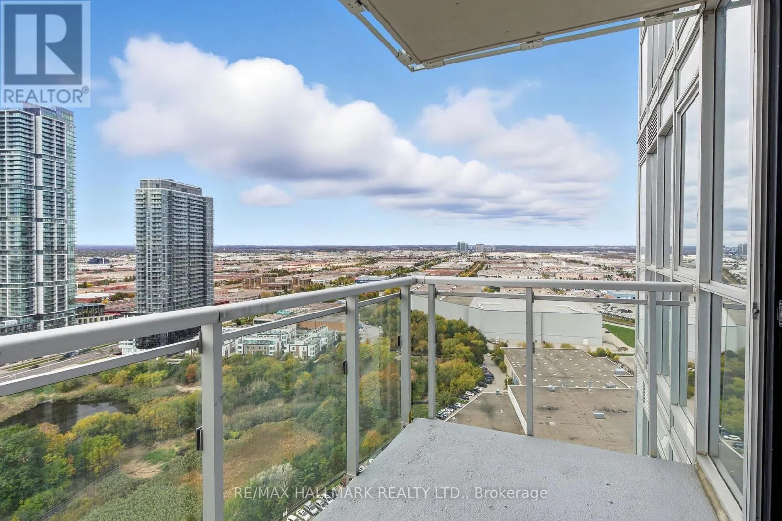 Jane/Hwy 7 This bright and modern 1+1 bedroom, 2 bathroom condo features stunning NorthWest views through floor-to-ceiling windows, filling the space with natural light. The open-concept layout includes a sleek kitchen with stainless steel appliances, a spacious primary bedroom with ensuite, and a versatile den with a door that can easily be used as a second bedroom, home office, or guest space. Enjoy the fresh air and views from your private balcony. This unit includes one underground parking spot and one locker. Residents enjoy access to fantastic building amenities and an unbeatable location just steps to the VMC Subway Station and York Regional Transit, with quick access to Highways 400, 407, and 401. Minutes from York University, Cineplex, IKEA, Costco, and a wide array of restaurants, shops, and services. Parks, walking trails, and community spaces are all nearby, making this a perfect home for professionals, students, or anyone looking to live in one of Vaughan's most connected and evolving neighbourhoods. Building features luxury world class amenities! (id:27476)