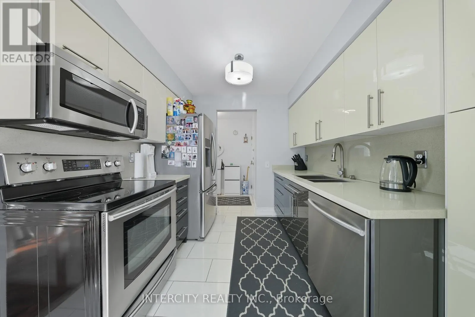 Bathurst/Steeles Experience luxury living in this stunning corner lower penthouse! Recently renovated, this spacious unit boasts beautiful hardwood floors throughout and a modern kitchen complete with a cozy breakfast area. Enjoy the convenience of two full bathrooms and bask in the abundant natural light from the south-west exposure. Step out onto the balcony off the kitchen, perfect for relaxing or entertaining. The expansive living and dining room offers ample space, making this one of the largest units in the building. Dont miss the chance to call this bright and inviting home your own! (id:27476)