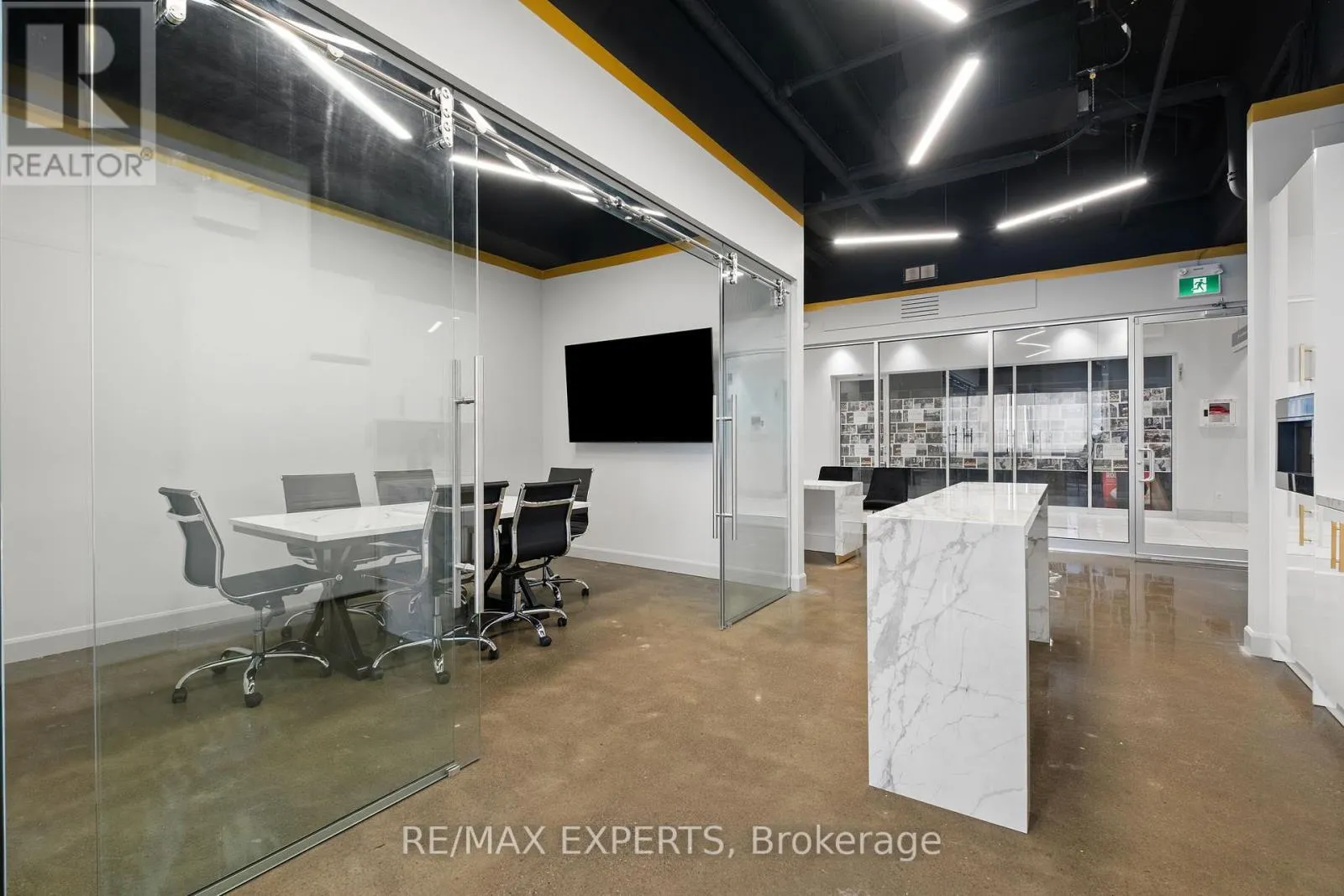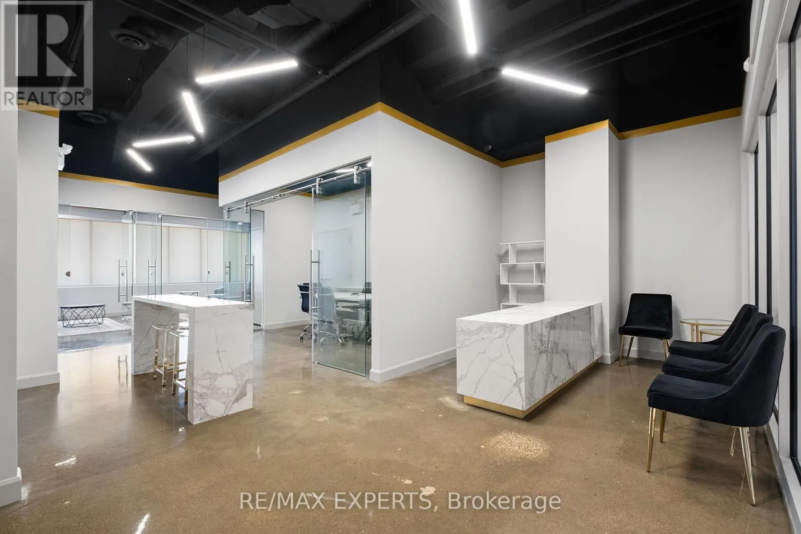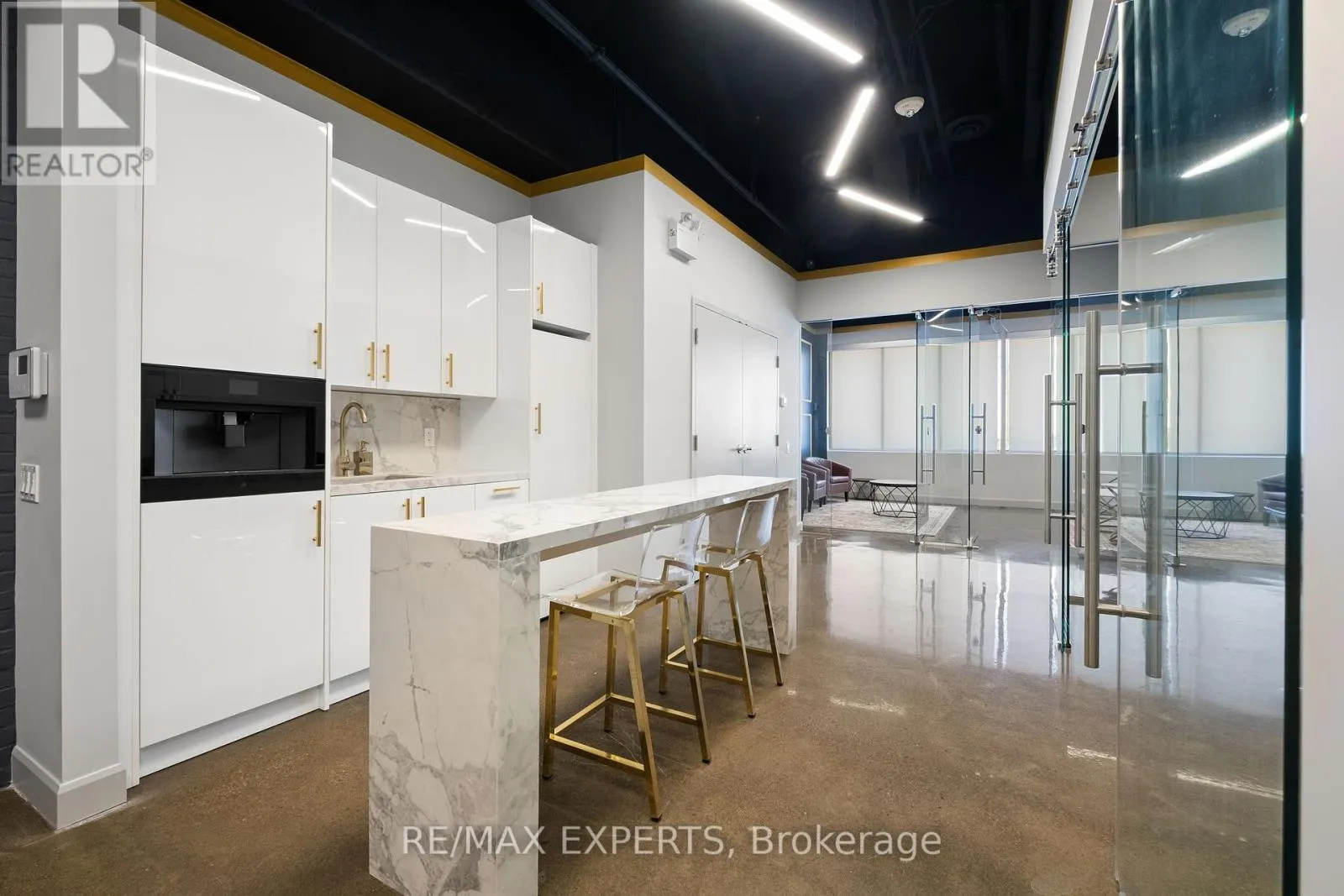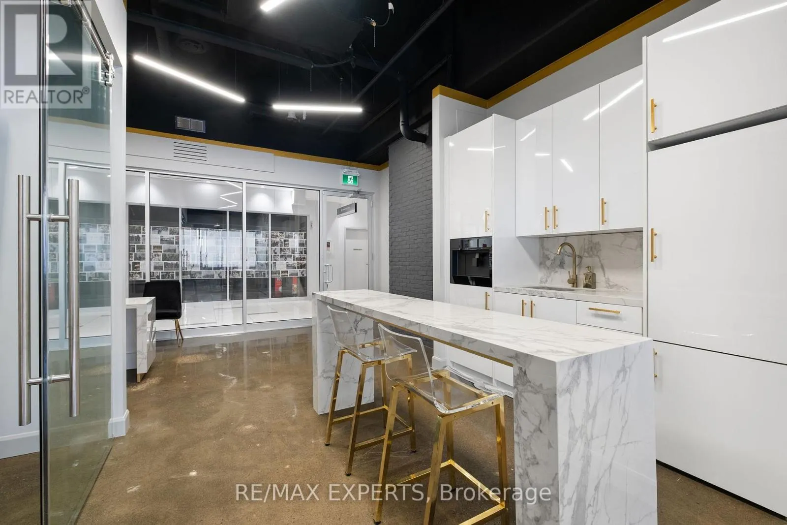 Weston Road & Highway 7 Welcome To 7777 Weston Road Unit 207 In The Heart Of Vaughan! Located At One Of The Busiest Major Intersections In The City, This Hot-Spot Is Sure To Bring Maximum Exposure To Your Local Business. This Chic And High-End Office Features Polished Concrete Floors, Exposed Ceiling With 14Ft. Height, Brick Wall, Well-Appointed Seating Area, Custom Porcelain Front Desk, Custom 8Ft. Kitchen With Built-In Fridge/Freezer And Professional Espresso/Coffee Machine, Waterfall Kitchen Island, Board Room W/ 70 Inch Smart TV, Printer And Storage Room, Large Walk-In Storage Area And A Large Open Work/Lounge Area! The Building Comes Equipped With Unlimited Parking For You, Your Staff And Your Clients, 24 Hour Concierge, Public Washrooms, Food Court, Shipping And Receiving Area, Waste Disposal Area And Many Different Services And Shops. Suitable For Most Service Based Businesses Such As Accounting, Real Estate, Mortgages, Finance, Insurance, Lawyer, etc. No Restaurant/Spa Uses. Perfect For Podcasts, Private Meetings And Quiet Work Environments. This Unit Has Weston Road And Highway 7 Exposure W/ Large Windows. Dont Miss This Opportunity To Operate Your Business And Wow Your Clients In This Beautiful Space! (id:27476)
