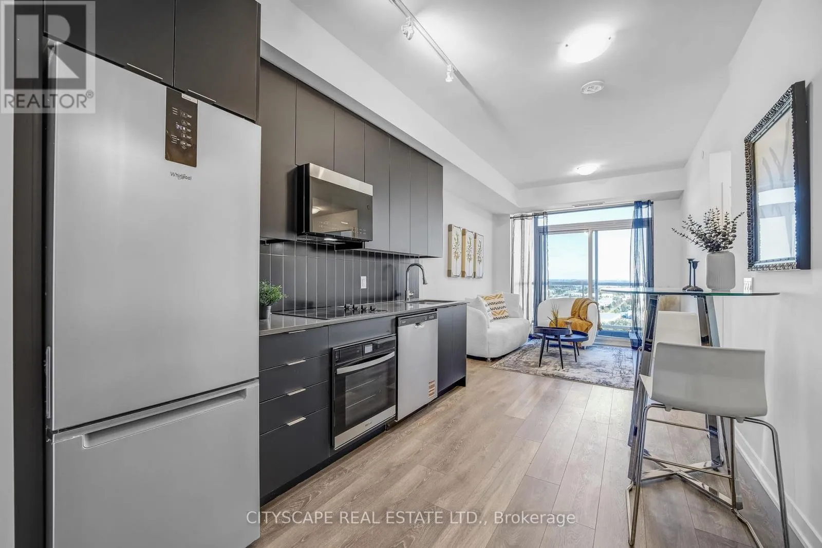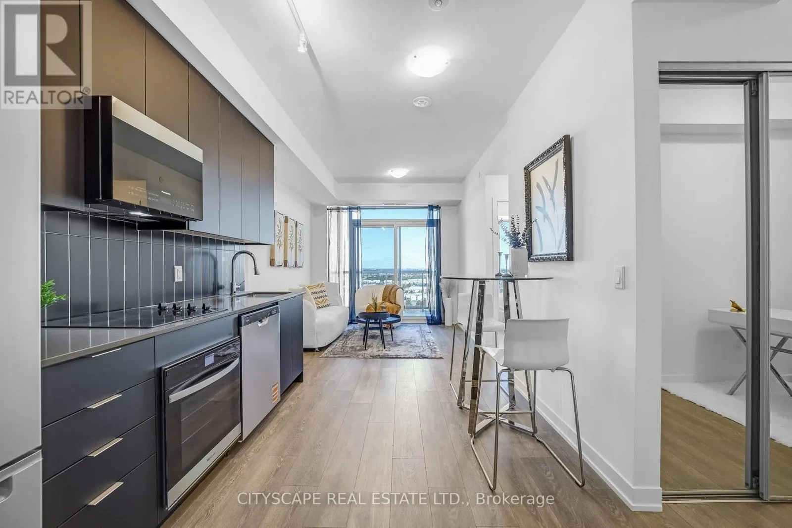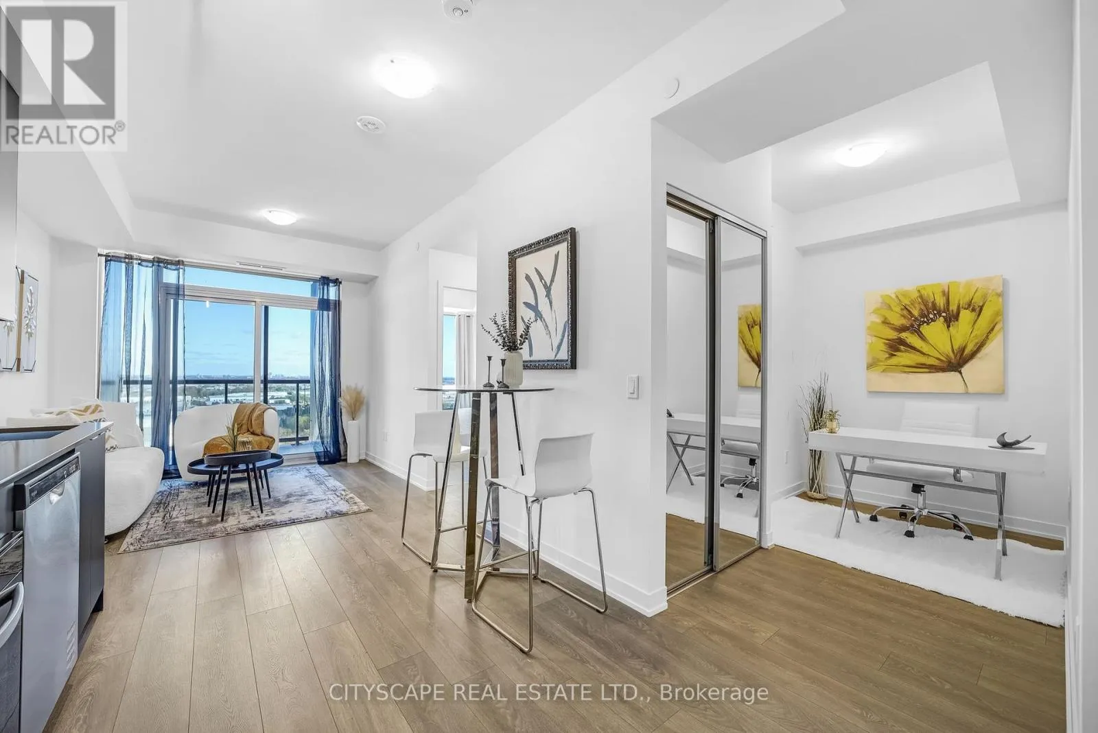 Jane St/Rutherford Rd Welcome to this bright and spacious 1-bedroom plus den, 1-bathroom condo offering the perfect blend of style and functionality. The open-concept layout is filled with natural light from large windows, creating a warm and inviting atmosphere. The primary bedroom features generous closet space and beautiful views, while the versatile den is ideal for a home office, guest room, or reading nook. Enjoy a contemporary kitchen with sleek cabinetry, stainless steel appliances, and a convenient breakfast bar that flows into the living and dining area - perfect for entertaining or relaxing. Step out onto your private balcony to enjoy morning coffee or unwind after a long day.This well-maintained building offers great amenities including a fitness centre, party room, visitor parking, and secure access. Ideally located near major highways, public transit, Vaughan Mills Shopping Centre, Cortellucci Vaughan Hospital, and a wide range of restaurants and grocery stores. Whether you're a first-time buyer, downsizer, or investor, this unit offers modern living, unbeatable convenience, and exceptional value in one of Vaughan's most sought-after communities. Rogers highest speed internet package also included in maintenance fees. (id:27476)