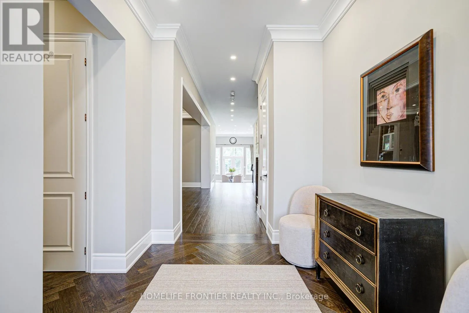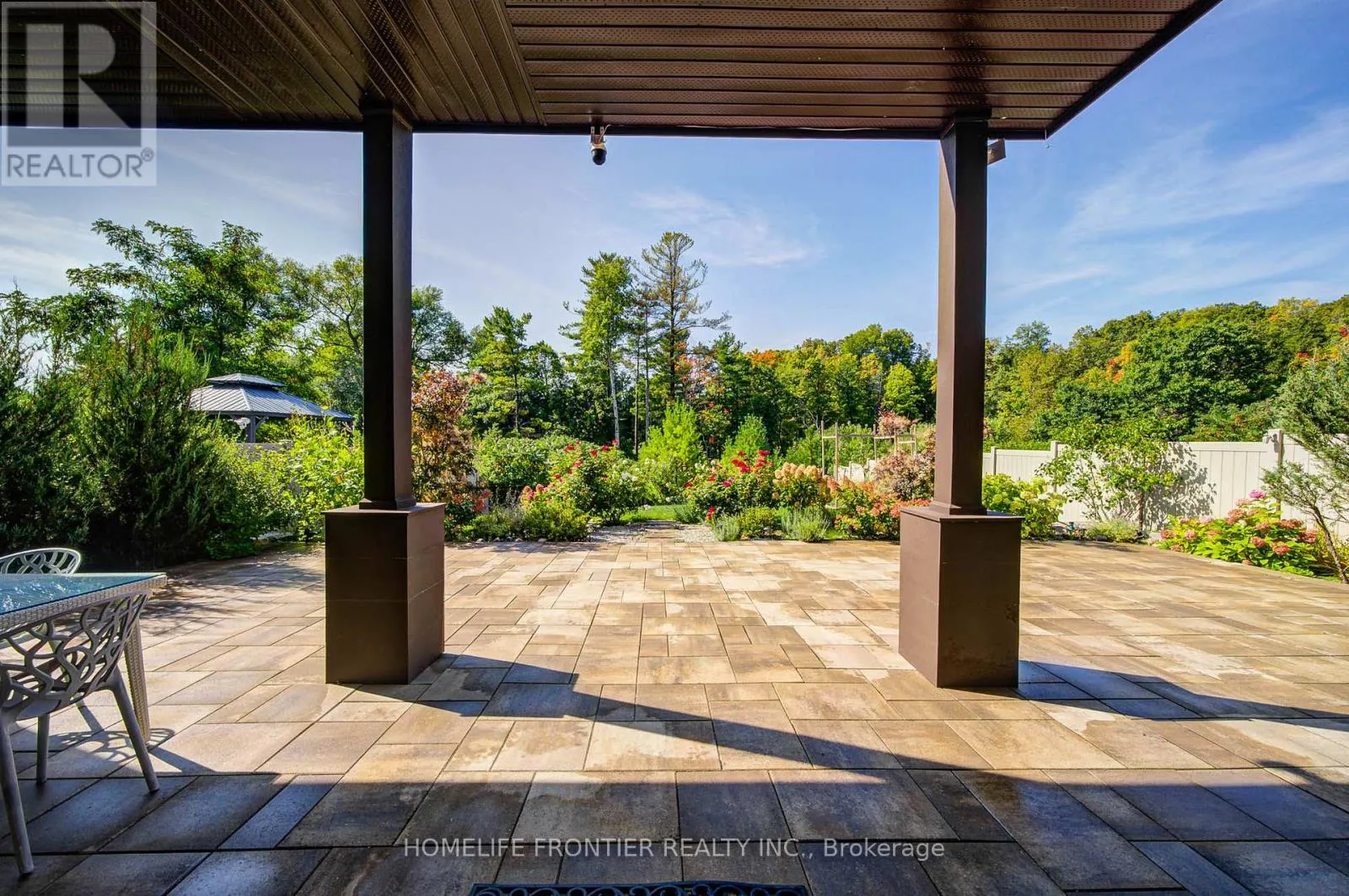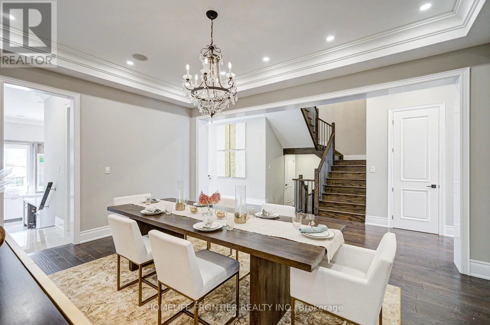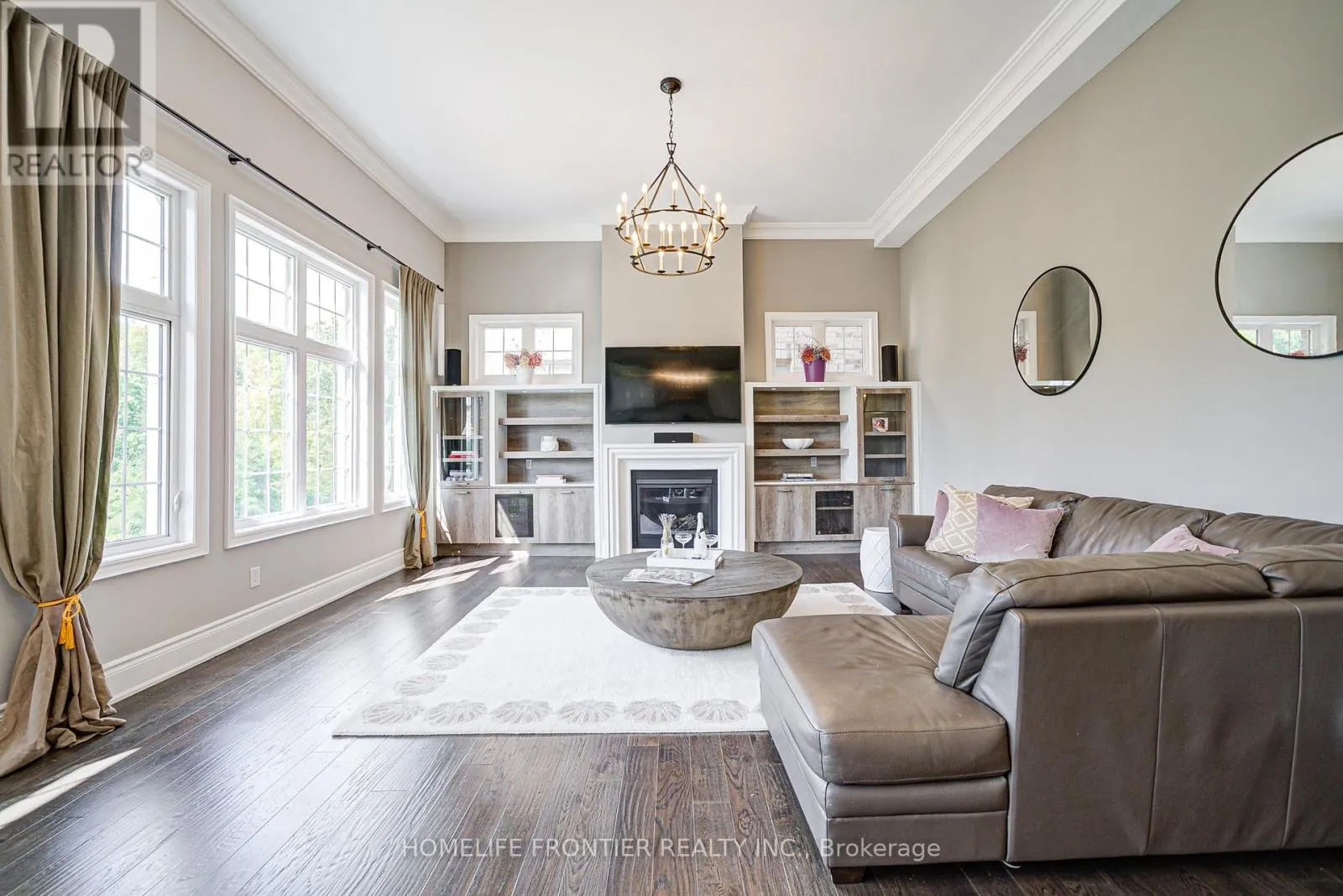 Bathurst Street & Major Mackenzie **R-A-V-I-N-E** Welcome to this exceptional residence in Upper West Side, a prestigious community in Upper Thornhill. Set on a premium pool-sized lot backing onto a picturesque ravine! - the perfect blend of luxury and nature! This home offers over 5600 sq ft of elegant living space included basement. 4+1 bedrooms and 6 bathrooms. The main floor features soaring 13-foot ceilings in the kitchen & family room, 10-foot throughout; 9-foot on the 2nd floor and basement. The heart of the home is a gourmet kitchen with premium appliances, additional servery and spacious pantry. Custom cabinetry, quartz countertops, oversized waterfall island. Breakfast area walks out to new composite deck. Family room fireplace framed with custom cabinetry. Solid 8ft doors, crown moldings, pot lights. Large formal dining room. Upstairs the home boasts 4 generous bedrooms, each with their own ensuite for privacy and comfort for family and guests. The primary suite is a private retreat with fitness room; spa-inspired 6-piece ensuite with dual vanities, a soaker tub, a glass-enclosed shower with steam, and generous size walk-in closet. Second floor laundry for everyday comfort. The lower level enhances the home with large recreational space, wet bar, 2-piece bathroom, bedroom, shop room with storage. Built-in speakers. A massive interlock patio leads to a beautiful perennial garden, creating a private oasis for outdoor living and relaxation. Sprinkler system, composite fencing. Landscaped/interlocked front. Exterior pot lights. A spacious three-car tandem garage and parking for up to 8 vehicles. Here, you'll be part of a vibrant community, with scenic trails at your doorstep and an excellent school right on the street **Viola Desmond Public School** shopping, dining, access to major routes and transit. (id:27476)