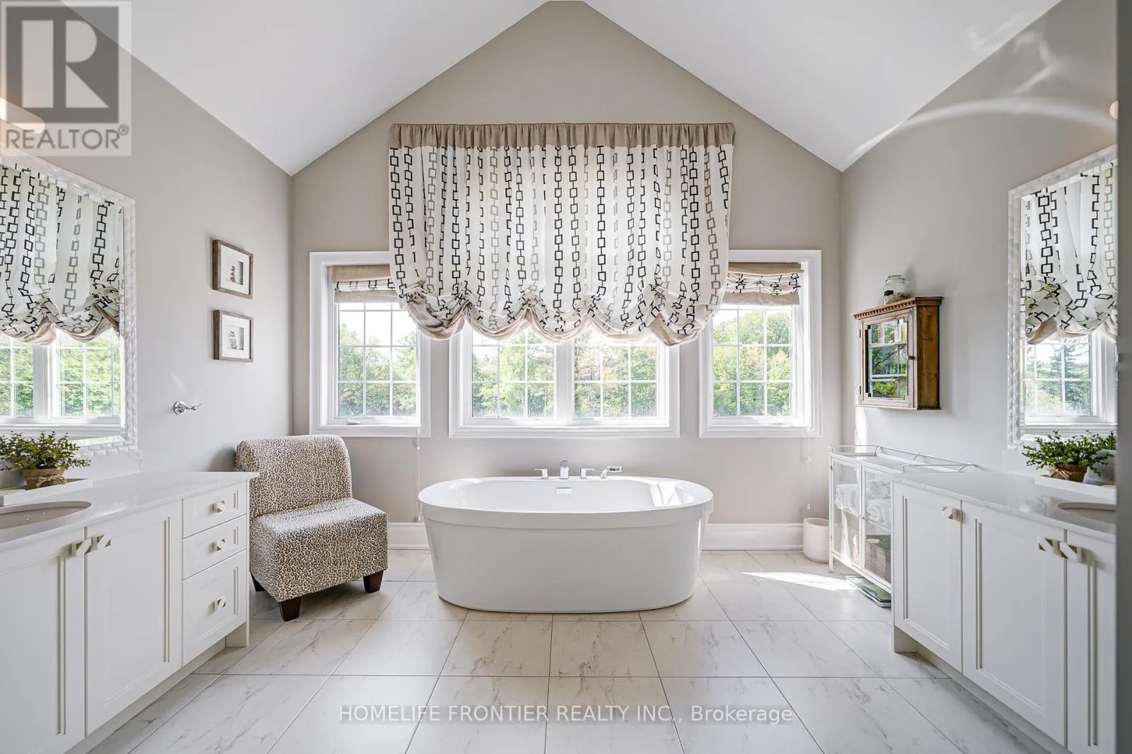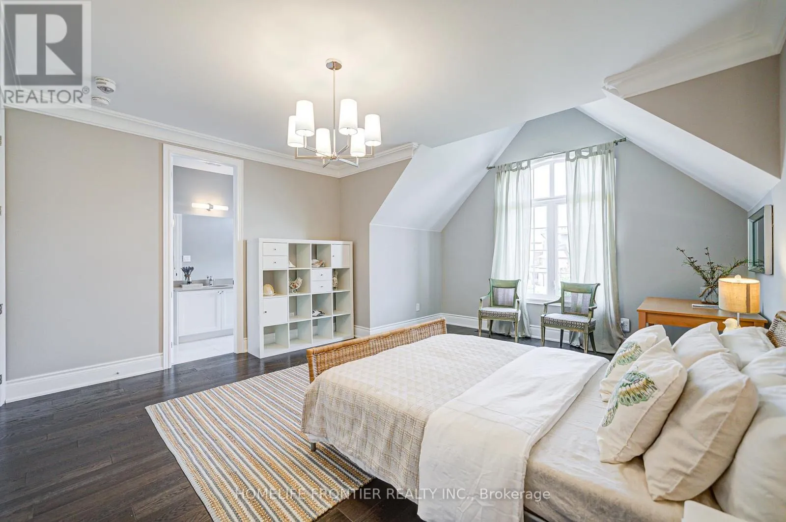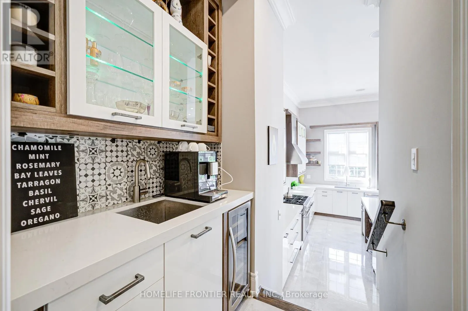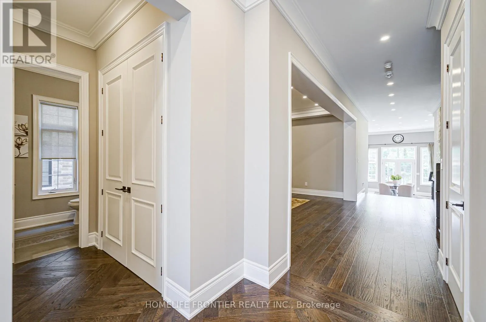 Bathurst Street & Major Mackenzie **R-A-V-I-N-E** Welcome to this exceptional residence in Upper West Side, a prestigious community in Upper Thornhill. Set on a premium pool-sized lot backing onto a picturesque ravine! - the perfect blend of luxury and nature! This home offers over 5600 sq ft of elegant living space included basement. 4+1 bedrooms and 6 bathrooms. The main floor features soaring 13-foot ceilings in the kitchen & family room, 10-foot throughout; 9-foot on the 2nd floor and basement. The heart of the home is a gourmet kitchen with premium appliances, additional servery and spacious pantry. Custom cabinetry, quartz countertops, oversized waterfall island. Breakfast area walks out to new composite deck. Family room fireplace framed with custom cabinetry. Solid 8ft doors, crown moldings, pot lights. Large formal dining room. Upstairs the home boasts 4 generous bedrooms, each with their own ensuite for privacy and comfort for family and guests. The primary suite is a private retreat with fitness room; spa-inspired 6-piece ensuite with dual vanities, a soaker tub, a glass-enclosed shower with steam, and generous size walk-in closet. Second floor laundry for everyday comfort. The lower level enhances the home with large recreational space, wet bar, 2-piece bathroom, bedroom, shop room with storage. Built-in speakers. A massive interlock patio leads to a beautiful perennial garden, creating a private oasis for outdoor living and relaxation. Sprinkler system, composite fencing. Landscaped/interlocked front. Exterior pot lights. A spacious three-car tandem garage and parking for up to 8 vehicles. Here, you'll be part of a vibrant community, with scenic trails at your doorstep and an excellent school right on the street **Viola Desmond Public School** shopping, dining, access to major routes and transit. (id:27476)