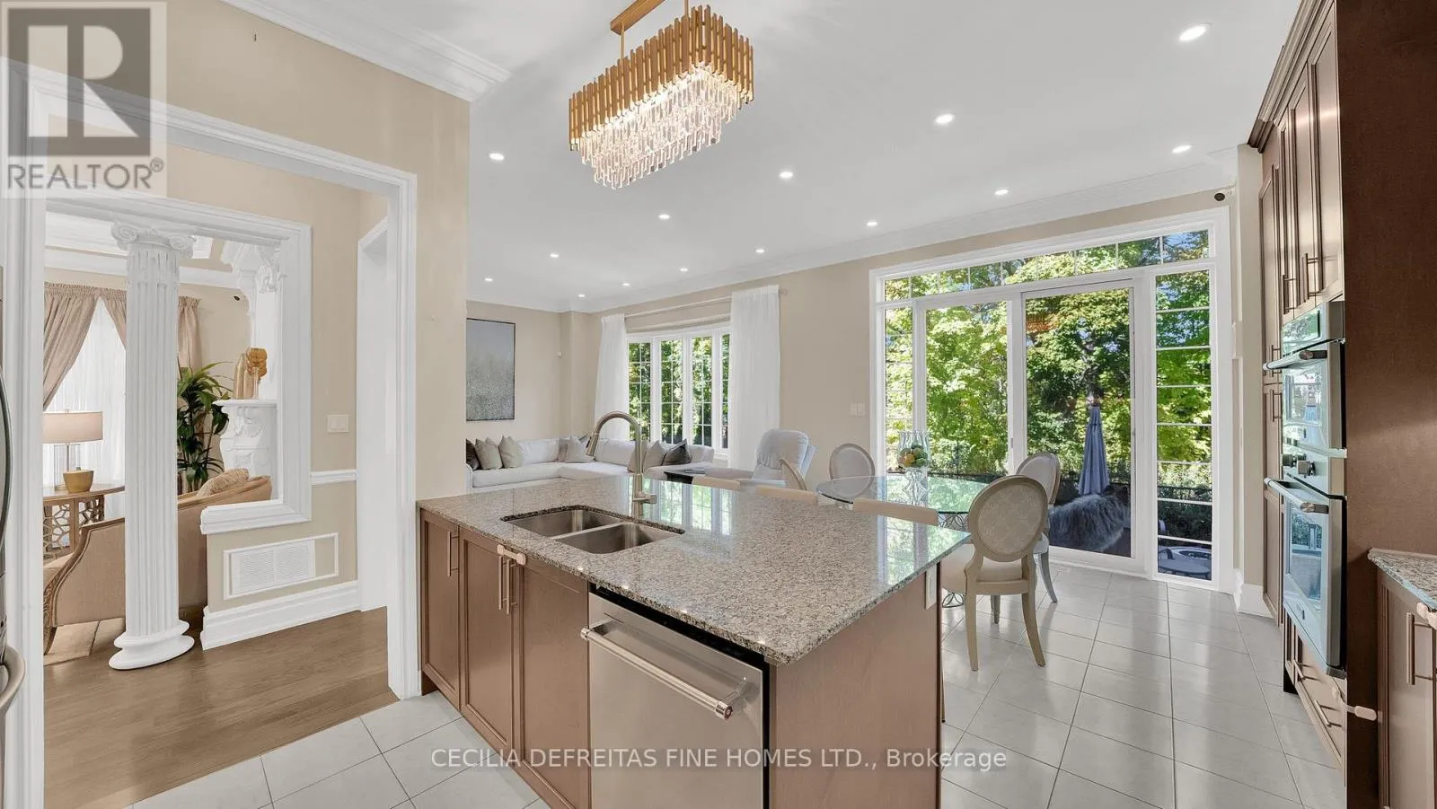 Cross Streets: Poetry & ajor Mackenzie. ** Directions: Poetry Dr North of Major Mackenzie. RAVIINE LOT | PRIVATE BACKYARD | LUXURY UPGRADES I SOUGHT-AFTER VELLORE VILLAGE. Nestled in one of Vaughan's most desirable neighbourhoods, this elegant homes offers a rare combination of ravine privacy and family comfort. Featuring 10 ft smooth ceilings on main and 9 ft on the second and custom millwork throughout, this residence exudes modern sophistication and thoughtful design. An open concept living and family room is united by a custom double sided stone fireplace, creating a warm and inviting focal point that enhances the homes's transitional style. Family room with built in cabinetry overlooks the lush ravine. Chef inspired kitchen boasts built in appliances including a wall oven, floor to ceiling pantry and a highly functional layout ideal for everyday living and entertaining. You'll love the second-floor laundry room simplifying daily routines, while the custom-designed primary walk-in closet is every woman's dream. With 5 generous bedrooms, this home easily accommodates a growing family. Located close to top-rated schools, parks, shopping, Canada's Wonderland, Vaughan Mills shopping, Cortellucci Vaughan Hospital, offering the perfect balance of luxury, privacy and family living. (id:27476)