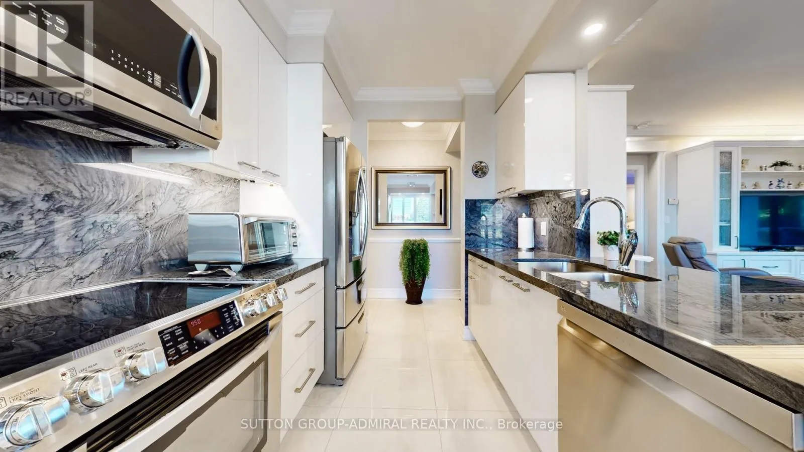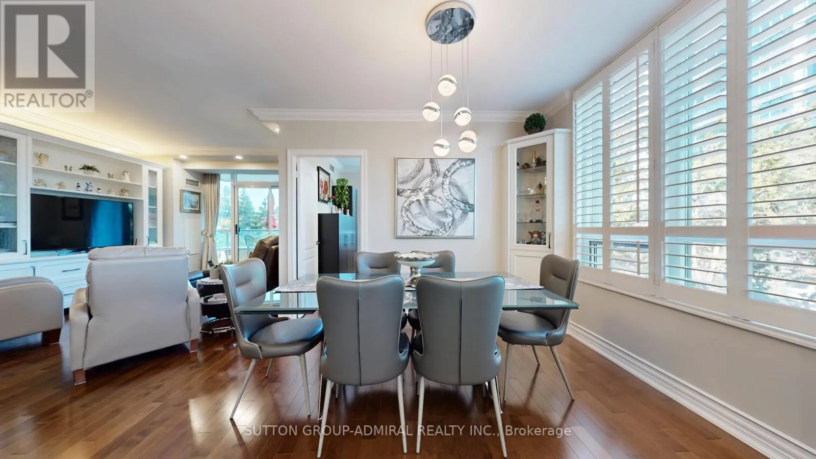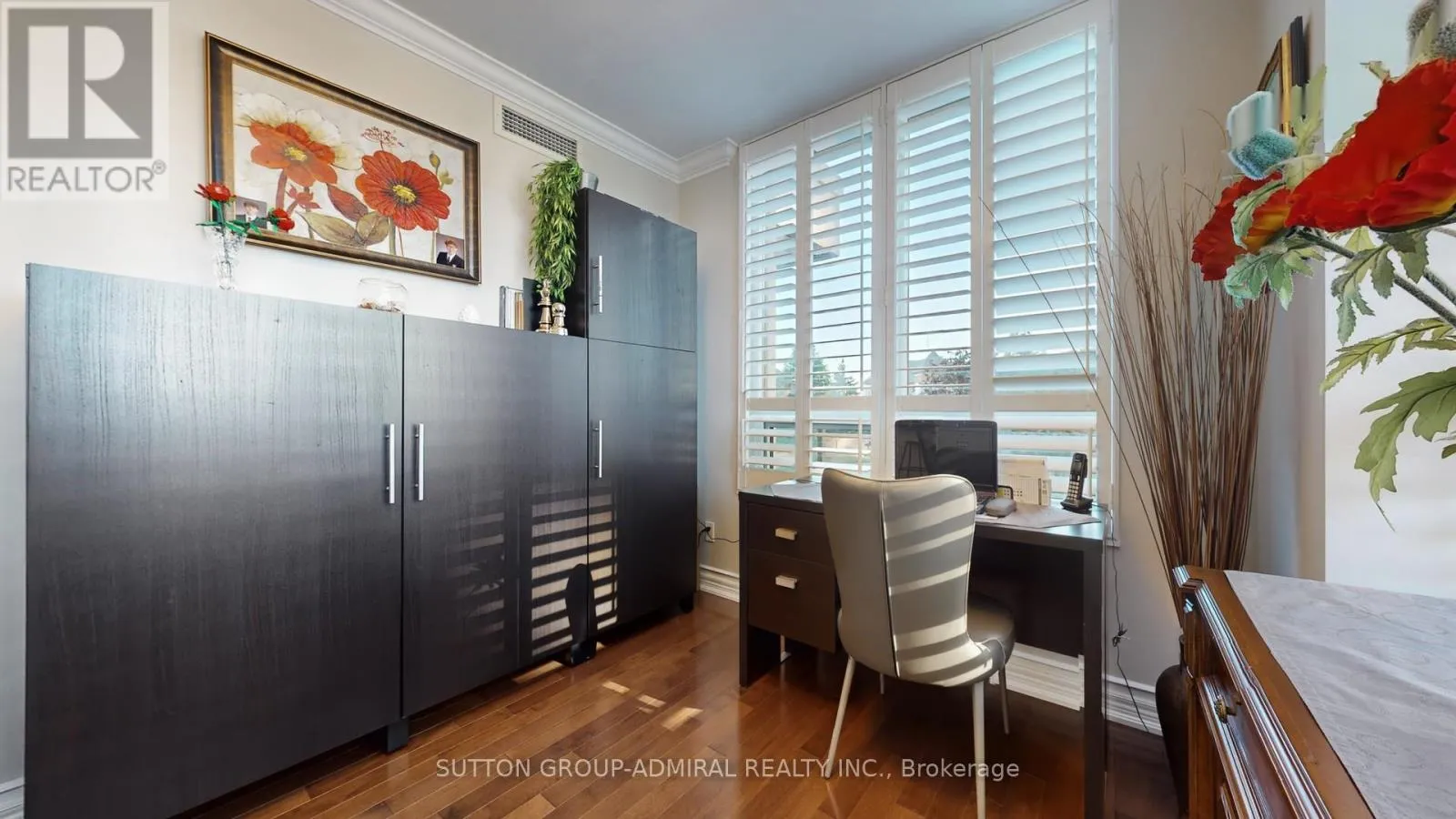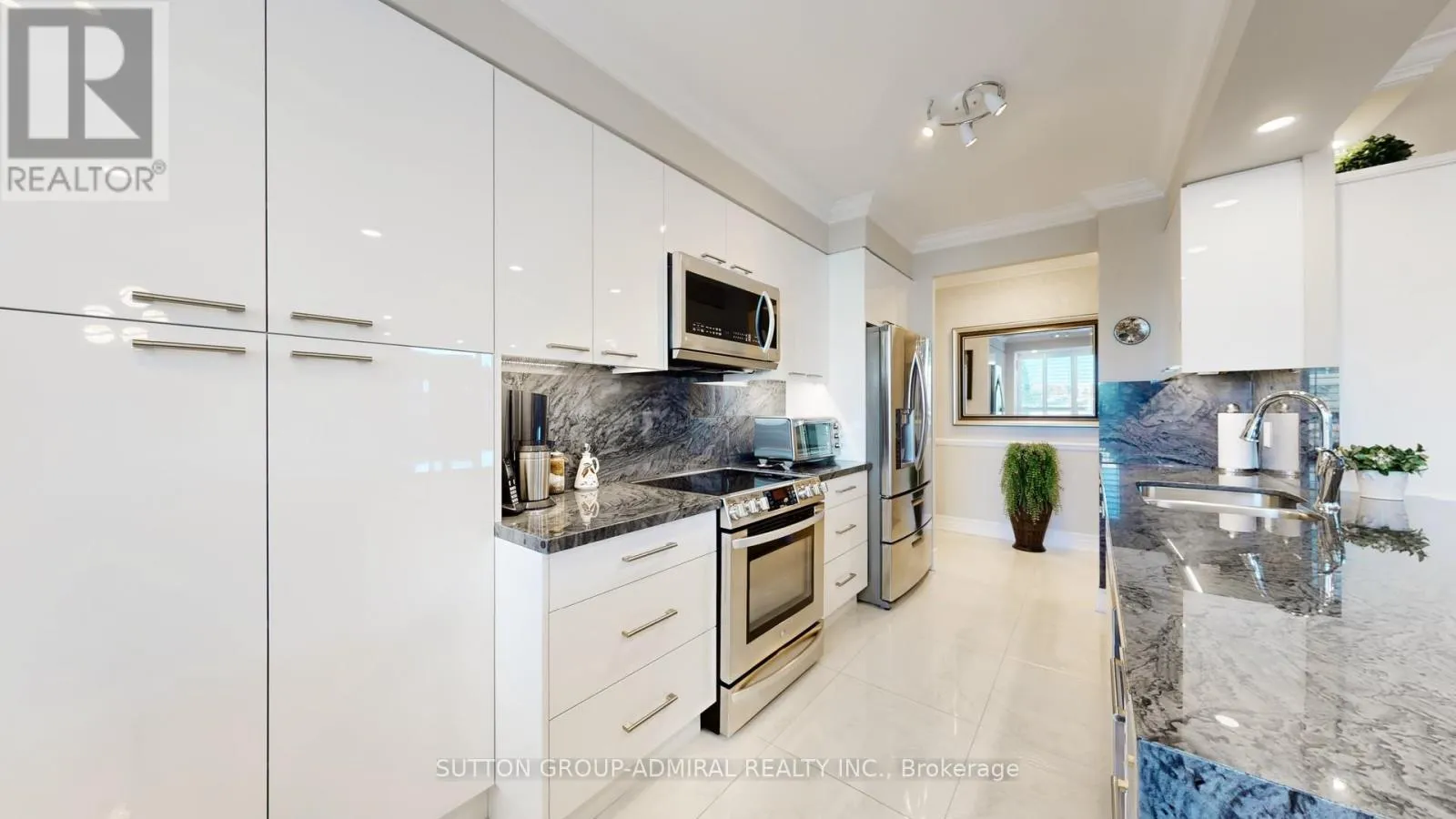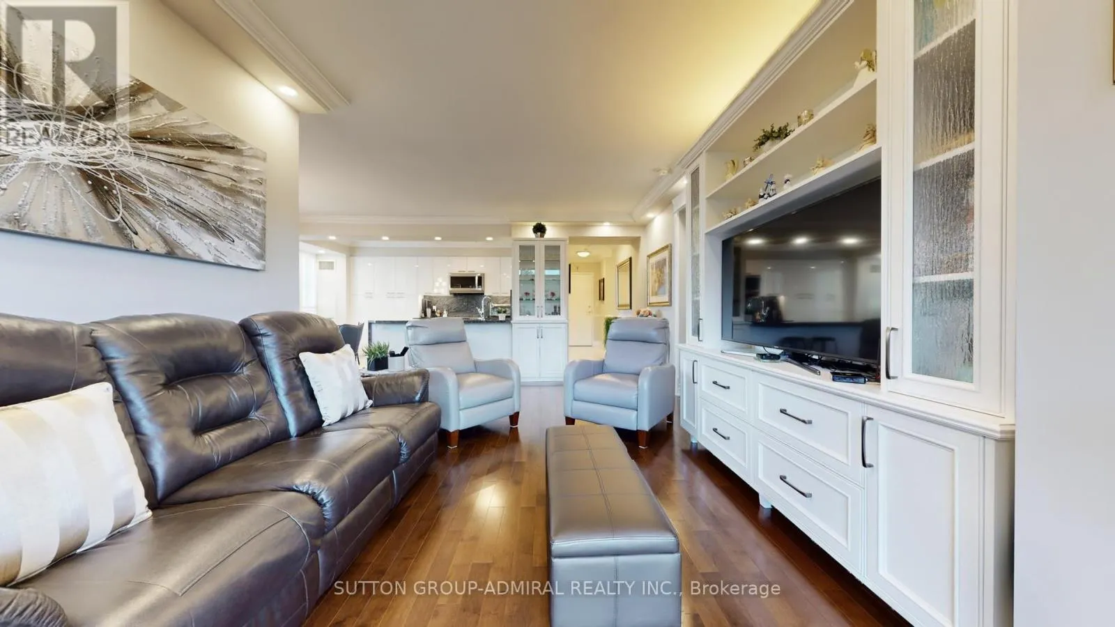 Cross Streets: Bathurst St & Centre St. ** Directions: Bathurst & Centre (East of New Westminster). Rarely Available! Discover this Stunning 2+1 Bedroom Corner Unit in the highly coveted Promenade Circle community! This beautifully redesigned and meticulously renovated 2nd-floor suite offers an exceptional blend of luxury, space and functionality- boasting 1,300 sqft of thoughtfully planned living space. Perfect for downsizers, professionals, or anyone seeking sophisticated comfort in a prime location. From the moment you step inside, you'll be impressed by the engineered Maple hardwood flooring, Porcelain tiles, modern LED potlights, smooth ceilings, Crown Moldings, Hi Baseboards and custom cabinetry throughout. Every detail has been considered, including upgraded hardware, designer window coverings and the rare addition of a central vacuum system w/attachments for effortless cleaning. Flooded with natural light through expansive panoramic windows, each room feels open and airy. Step out onto the large west-facing balcony, where you'll enjoy peaceful views and breathtaking sunsets-your own outdoor oasis! The custom open-concept kitchen is a chef's dream, featuring quartz countertops, upgraded cabinets, and an added pantry for ample storage - ideal for both entertaining. The spacious primary bedroom features a large walk-in closet with custom built-ins, an extra double closet, and a spa-inspired ensuite with a frameless glass shower, elegant double vanity, and bidet toilet for added comfort. The second bedroom includes a full wall unit with 2 Murphy beds, perfect for guests or flexible use. A generously sized den serves easily as a third bedroom, office, or media room. There's also a separate laundry room with a utility sink. Enjoy resort-style amenities: indoor pool, gym, squash court, game and party rooms, guest suites, 24/7 security, pet-friendly areas, and more! Steps to Promenade Mall, T&T Supermarket, community centre, transit, and top-rated schools. This is truly turnkey living just move in and enjoy a life of style, comfort and convenience! (id:27476)