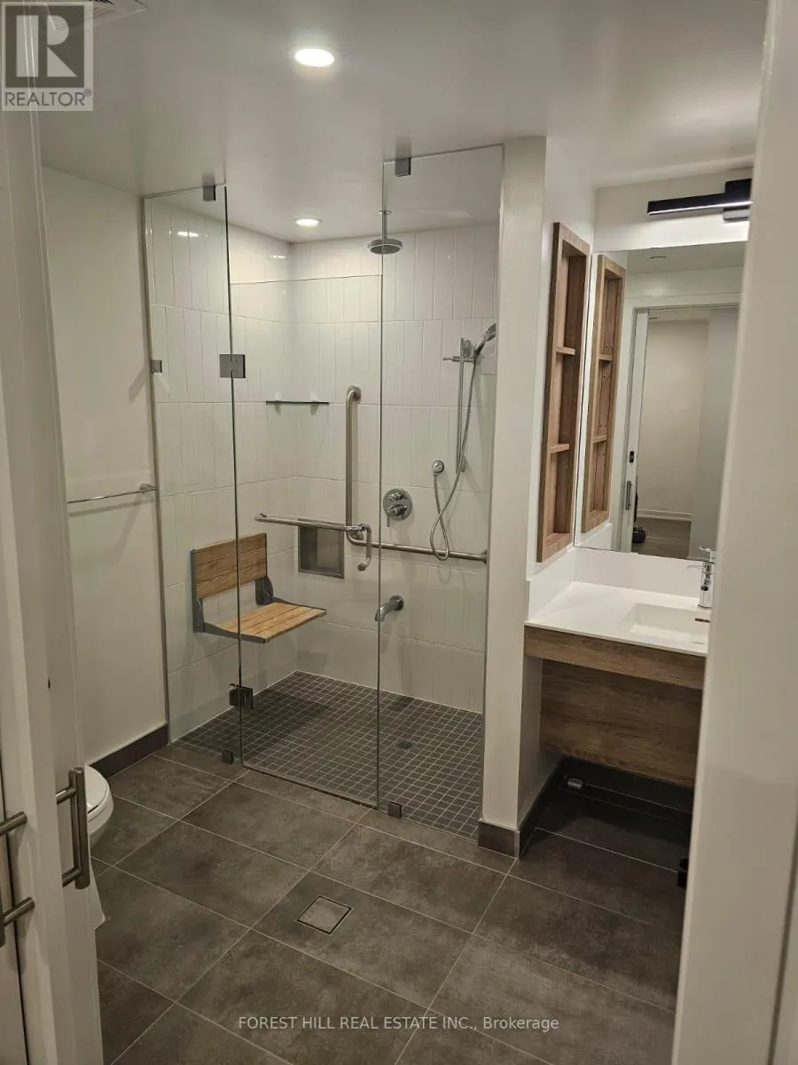 Bathurst/Beverly Glen Thornhill Condo by Daniel's, Generously sized 1+1 unit boasting luxury finishes. Enjoy 9 ft ceilings, seamless laminate flooring, modern kitchen w/sleek quartz countertops and center island, zebra blinds and privet balcony, as well as underground parking and a locker.in-suite laundry. With a 24-hour concierge. You'll feel secure and well-cared for. Live steps from Promenade Mall and Walmart, cafes, parks, Thornhill Golf Course, and Highways 7 & 407.The building offers an array of amenities including a gym, fitness and yoga studio on the second floor, a basketball court, a rooftop terrace, a kids' zone, a party room, and a free Wi-Fi business/client lounge for board meeting accommodations. (id:27476)