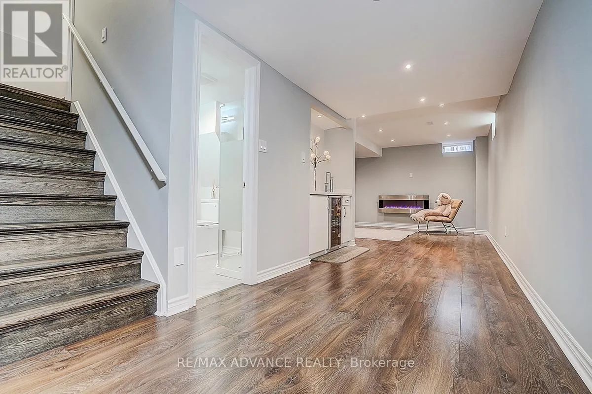 Lebovic Campus Dr/Ilan Ramon Beautiful 4 Bedrooms, 5 Washrooms Executive End-Unit Townhouse by Madison Homes, Located in the Prestigious Patterson Community of Vaughan! 2548 Sqft Of Luxury Living Space Plus a Finished Basement. Every Floor Includes a Washroom for Ultimate Convenience. The Ground Floor Features a Bright Living Room and a Spacious Bedroom with a Full Washroom - Ideal for Seniors or Multi-Generational Living. The Main Floor Boasts 10 Ft Ceilings, Large Windows Bringing in Abundant Natural Light, an Elegant Electric Fireplace, and a Modern Open-Concept Kitchen with Quartz Countertops, Extended-Height Cabinets, and Premium Built-In Appliances. The Dining Area Offers a Walk-Out to a Private Patio. The Second Floor, 9 Ft Ceilings, Offers Three Generous Bedrooms, including a Primary Suite with Walk-In Closet and a Luxurious 5-Pc Ensuite Featuring a Freestanding Soaker Tub and Custom Glass Shower. The Fully Finished Basement Features a Cozy Family/Entertainment Room Complete with Fireplace, Built-In Bar, and a 3-Pc Bath - Ideal for Relaxation and Hosting Guests. Loaded with Upgrades: Custom TV Wall, Designer Bathrooms with Glass Showers and Quartz Counters, Engineered Flooring Throughout, Fireplace Feature Designs, Custom Closets in All Bedrooms, Beautiful Front Yard Landscaping with Extra Parking (Total 3 Cars), and Fully Interlocked Backyard with BBQ Area, Perfect for Summer Gatherings. Walking Distance to JCC Community Centre, Carville Community Centre, Close to Top-Ranked Schools, Parks, Restaurants, and Shopping. Easy Access to Hwy 400/404/407, Vaughan Mills, Wonderland, Vaughan Hospital, York University, Maple & Rutherford GO Stations. Please Do Not Miss This Opportunity ! (id:27476)