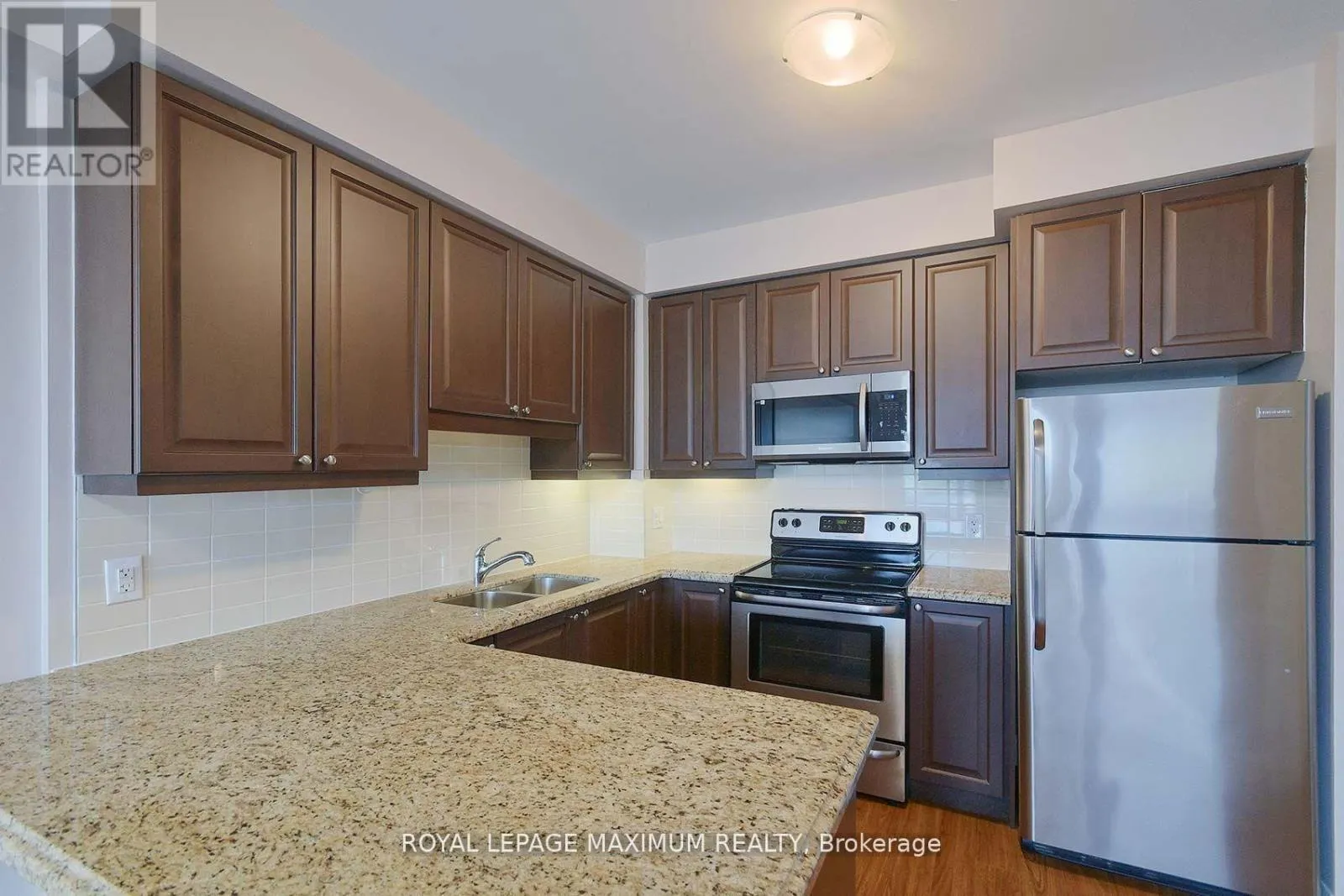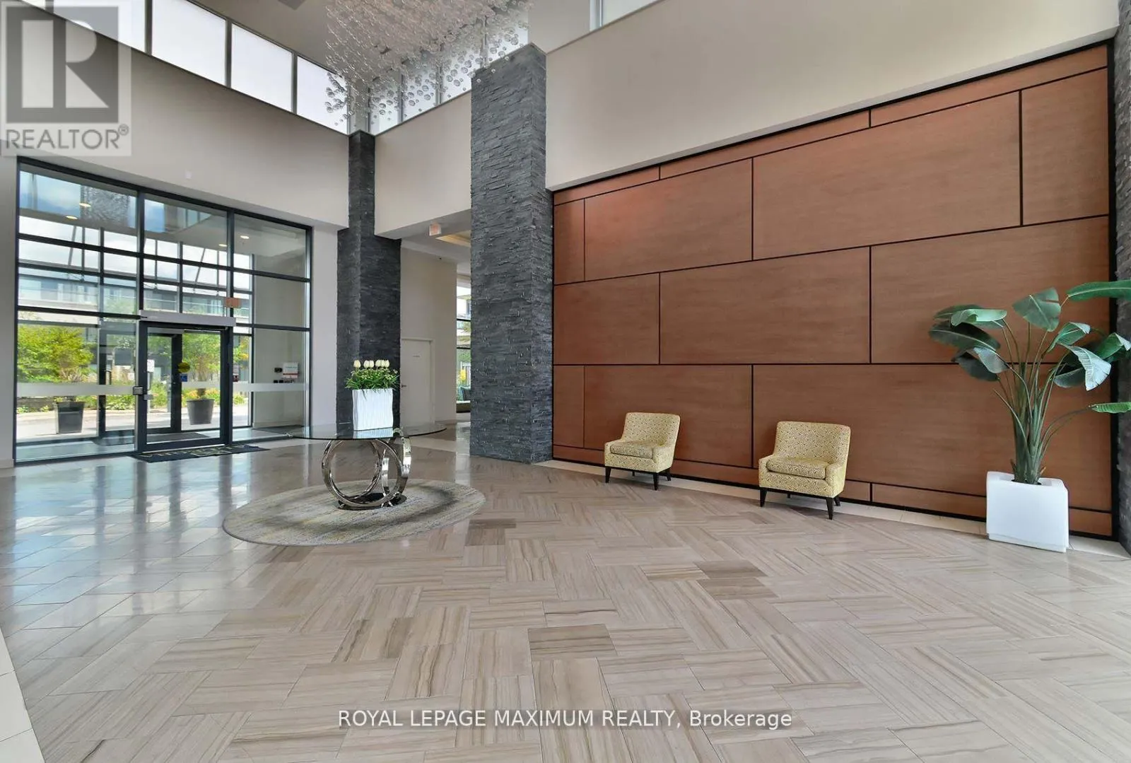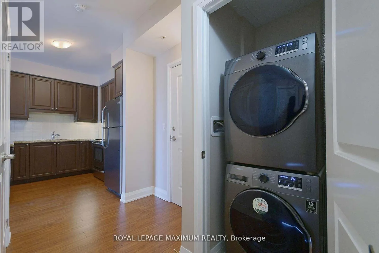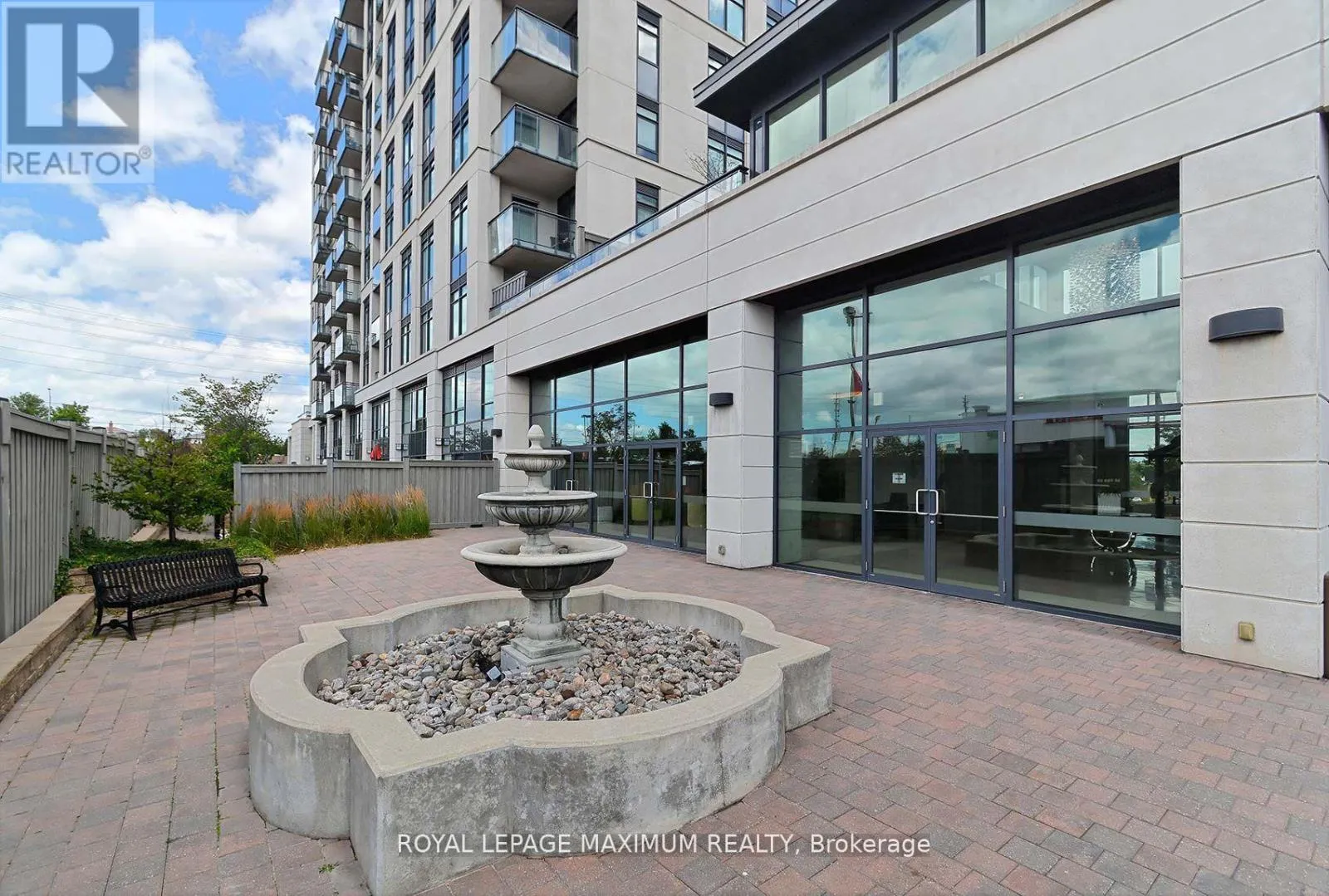 Highway 7 & Martingrove Welcome to this beautifully maintained 1-bedroom condo offering the perfect blend of comfort, style and convenience. Featuring laminate floors throughout and an abundance of natural light, this bright and airy unit boasts unobstructed views of a private, landscaped courtyard-a peaceful retreat with manicured gardens that provide a quiet, calming atmosphere. The open-concept kitchen is both functional and elegant, complete with a breakfast bar, stainless steel appliances, upgraded granite countertops, and timeless cabinetry that complements any decor. Enjoy the convenience of Ensuite laundry, one parking space and a storage locker. Situated in the heart of West Woodbridge, you're just steps from local shops, restaurants and amenities, with easy access to schools, parks and Highway 427-perfect for commuters and urban explorers alike. Residents enjoy access to world-class building amenities, including a stunning lobby, fully-equipped gym, 24-hour concierge and stylish party room-offering luxury, security and convenience all in one. Don't miss your opportunity to own this sun-filled gem in a prime location.! (id:27476)